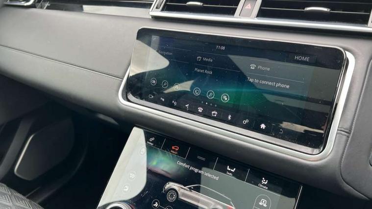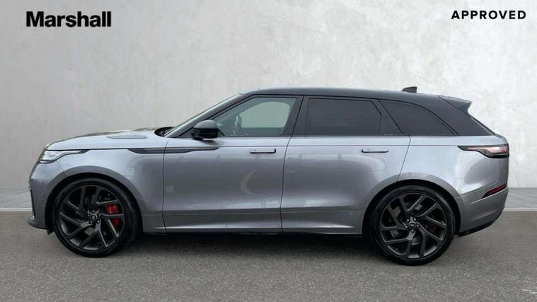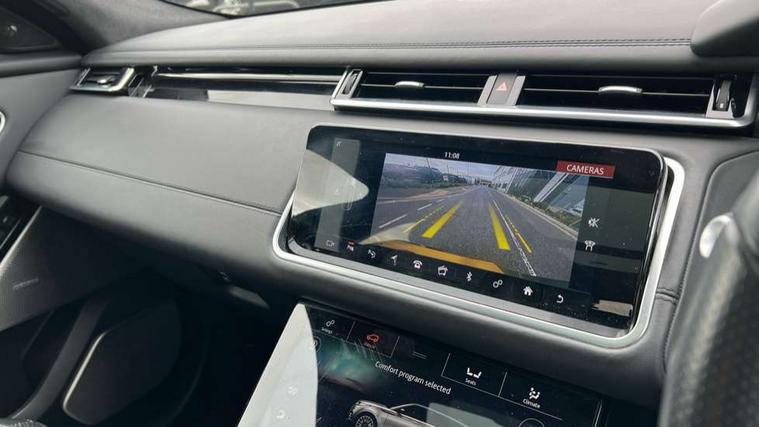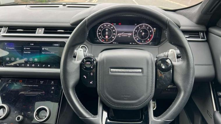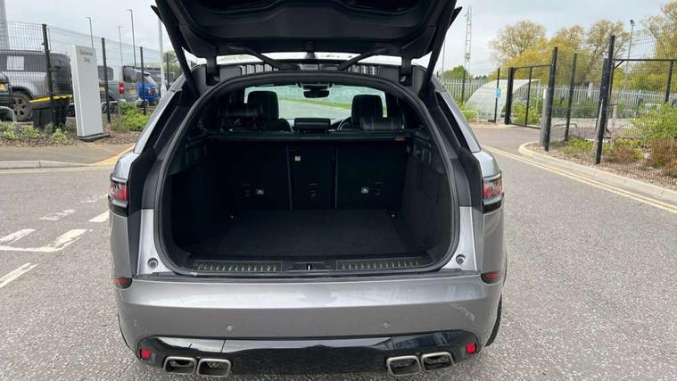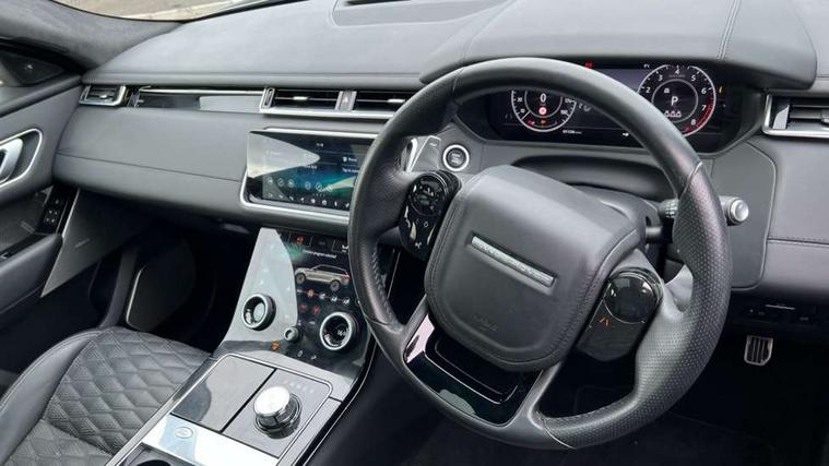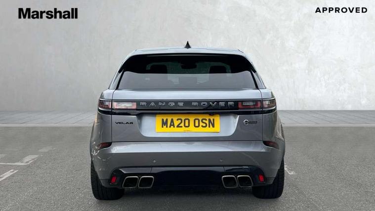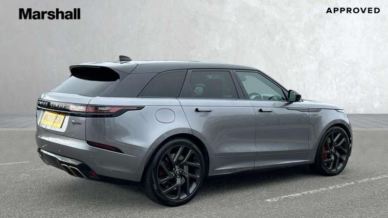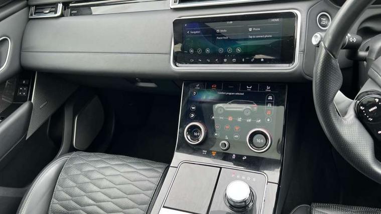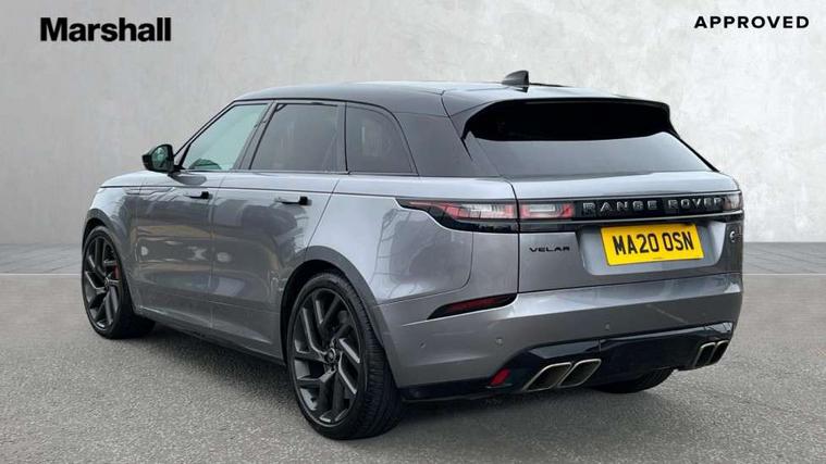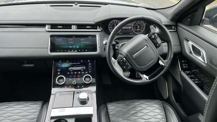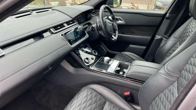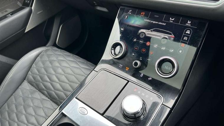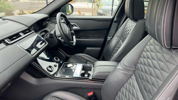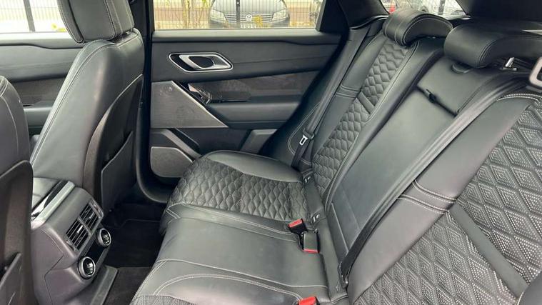 360 Parking aid sensors, Android Auto, Apple car play, Blind spot assist, Bluetooth connectivity, Brake pad wear indicator warning light, Driver condition monitor, InControl remote, InControl Touch navigation pro, Interactive Driver display instrument cluster, Land Rover InControl apps, Lane keep assist, Park Assist - Parallel Park/Parking Exit/Perpendicular park, Powered tailgate/boot lid, Pro services and wifi hotspot, Rear traffic monitor, Service indicator, Speed proportional electronic power assisted steering (EPAS), Traffic sign recognition with adaptive speed limiter, Trip computer, Voice control system, 8 speed automatic transmission, Adaptive dynamics, Configurable dynamics, Electronic active differential with torque vectoring by braking, Single speed transfer box, Sports suspension, Digital Audio Broadcast radio-DAB, Steering wheel mounted controls, Acoustic laminated windscreen, Active sports exhaust, Adaptive front lighting system, Auto dimming interior rear view mirror, Automatic headlamp levelling, Automatic headlights, Body coloured bumpers, Boot protection plate, Electric windows with one touch open/close and anti trap, Flush deployable exterior door handles, Follow me home headlights, Front fog lights, Headlamp power wash, Heated rear window with timer, Heated windscreen + heated windscreen washer jets, Illuminated front and rear metal tread plates, Power fold, auto-dimming, heated door mirrors with approach lights, Rain sensor windscreen wipers, Rear fog lights, Rear wash/wipe, Sliding panoramic sunroof with sunblind, SV full extended leather upgrade, SVAD exterior styling, Tailgate/boot lid spoiler, Trailer stability assist, 40:20:40 split folding rear seats, Adjustable front armrest, Aluminium gear shift paddles, Bright metal pedals, Driver and passenger illuminated vanity mirror, Electric adjustable steering column, Four zone climate control, Heated steering wheel, Isofix system on outer rear seats, Loadspace cover, Lockable cooled glovebox, Passive front headrests, Perforated Windsor leather upholstery with diamond quilted, Rear centre headrest, Soft grain leather sport steering wheel, SV premium carpet mats, SV exterior pack - Velar, 395mm front and rear brakes, 3x3 point rear seatbelts, Anti-lock braking system (ABS), Cornering brake control, Curtain airbags, Door side intrusion beams, Driver airbag, DSC - Dynamic Stability Control, Electronic brake force distribution, Electronic parking brake, Electronic traction control, Emergency brake assist, Front and rear seatbelt reminder, High speed emergency braking, Hill descent control, Hill launch assist, Low traction launch, Passenger airbag, Power operated child locks, Rear airbags, Roll stability control, Side airbags, Tyre pressure monitoring system, Global lock and unlock switch on driver door, Immobiliser, Intrusion sensor, Keyless entry, Lock only switch on front passenger door, Perimetric alarm, Remote central locking, Chrome IP end caps, All season tyres,