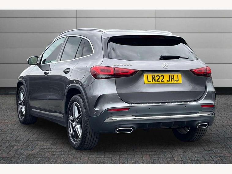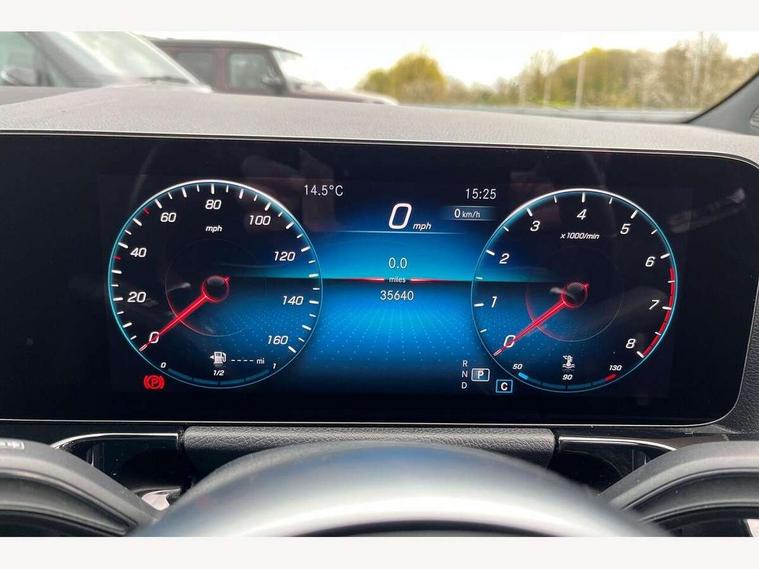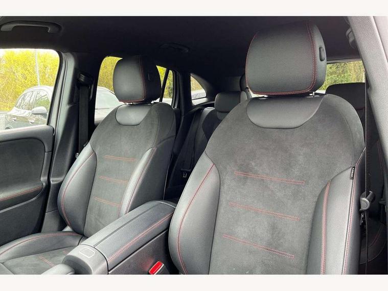 10.25 inch touchscreen central media display, 10.25" Digital instrument cluster display screen, Active lane keeping assist, Attention assist, Cruise control + speed limiter, Direct steering, DYNAMIC SELECT with a choice of driving modes (ECO, Comfort, Sport and Individual), ECO start/stop function, Fluid level warning indicator for fuel, oil, coolant and washer fluid, Hard-disk navigation, Hey Mercedes Voice activation, Lamp failure indicator, Mercedes me connect including emergency call system, accident recovery, breakdown and maintenance management, Mercedes me remote services, Multi function trip computer, Outside temperature gauge, Owners manual and service booklet in English, Pre-installation of private car share, Radio aerial integrated into front and rear windshields, Service indicator (ASSYST), Smartphone integration with Apple CarPlay and Android auto, Speed limit assist, Status display for rear seat belts in instrument cluster, Lowered comfort suspension, Rear axle multi-link, 2 USB ports (type C) in rear stowage compartment and one in front of center console, Bluetooth connectivity including audio streaming, DAB Digital radio, MBUX multimedia system, Media interface, Mercedes-Benz sound system - 100W, Adaptive brake lights, Aerial for GPS, Aluminium roof rails, AMG front and rear apron, AMG specific/dual flow exhaust pipes in chrome (non-functional), Automatic headlamp activation, Beltline strips and weather strip in chrome, Black grained claddings with chrome parts, Body colour bumpers, Body colour door handles, Body colour door mirrors, Car wash function, Dark privacy glass from B-pillar backwards, Electric front windows, Electric rear windows, Electrically adjustable and heated door mirrors with integrated LED indicators, Front bumper with underride guard in high gloss chrome, Heated glass rear windscreen + timer control, Heated windscreen wash system, Interior mirror with black reading lamps and frameless, LED high performance headlamps with integrated LED daytime running lights, LED tail lights in two piece design, LED third brake light, Matt titanium grey front and rear apron trim, Rain sensor windscreen wipers, Rear fog lights, Rear side wing doors, Rear wiper, Roof spoiler, Single lamella raditor grille with chrome dotted diamond grille and inlay, 12V power socket in centre console, 3 seat bench in 2nd row, 3 spoke multifunction sports steering wheel in nappa leather with flattened bottom and perforated grip area, 40:20:40 split folding rear seat backrests, Adjustable head restraints, Air conditioning - Two zone thermotronic luxury automatic climate control with display, Ambient lighting in front headrests, AMG floor mats in black with AMG lettering in front, Artico man-made leather/Microfibre Dinamica upholstery with red contrast stitching, Auto Mercedes-Benz child seat recognition sensor, Black roof lining, Brushed door pulls in silver chrome, Courtesy light in boot, Front centre armrest with stowage, Galvanished gear shift paddles on steering wheel, Heated front seats, illuminated door sills with changeable cover, Illuminated glovebox, Interior lighting - 64 colour Ambient lighting, Leather trimmed gearknob, Luggage net on driver/front passenger seat backrest, Manually height and reach adjustable steering column, Multi-gesture touchpad control on center console, Single front passenger seat, Sports pedals in brushed stainless steel with black rubber studs, Sports seats, Stowage compartment in centre console, Stowage compartment with retractable cover, Sunvisors with illuminated vanity mirrors, Twin front cup holders, Two outer rear seat isofix and top tether child seat fixing points, AMG body styling pack - GLA, Comfort seat pack - GLA Class, Interior lighting with light and sight pack - GLA, Load compartment pack - GLA, Mirror pack - GLA Class, Parking pack - GLA, 3 rear 3 point seatbelts, ABS with Brake Assist, Active bonnet pedestrain safety measure which detects an impact and raises bonnet by 65mm, Active brake assist includes forward collision warning system with autonomous braking, Adaptive brake assist with hold function and hill start assist, Bonnet with power domes, Brake pad wear warning indicator, Childproof locks manually operated for rear doors and electrically operated for rear power windows, Crash responsive emergency lighting, Driver and passenger head and side airbags, Drivers knee airbag, Dual stage driver/passenger airbags, Electronic parking brake, ESP curve dynamic assist, ESP with ASR, Front and rear seatbelt reminder, Front brake callipers with Mercedes Benz logo lettering on front, Front brake discs internally ventilated and perforated, Front passenger seat occupancy sensor, Sports braking system, Tyre pressure monitoring system, Warning triangle and first aid kit, Window airbags, Alarm system with immobiliser and interior protection -Thatcham category 1, Keyless Go starting function, Remote central locking and crash sensor with emergency opening function, Urban guard vehicle protection, Vehicle key with decorative surround in chrome, Carbon structure trim, Chrome air vent surrounds, 19" AMG 5 twin spoke light alloy wheels painted in high gloss black with high sheen finish, Summer tyres, Tirefit tyre sealant kit,