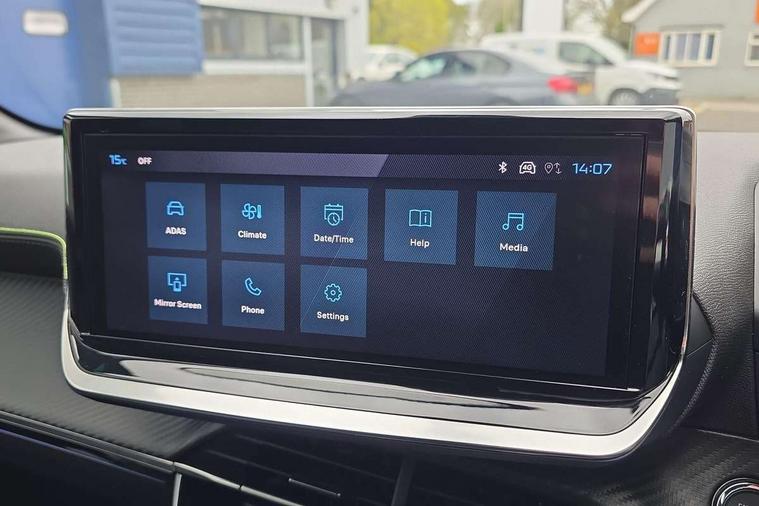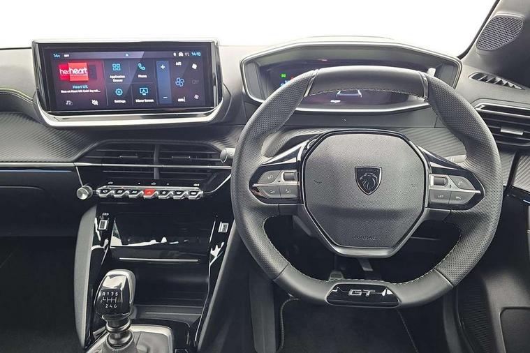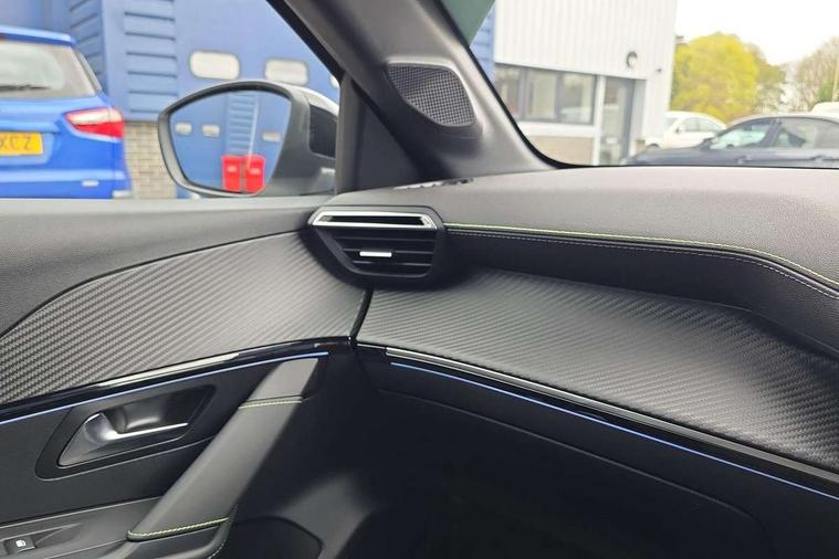 Bluetooth telephone facility, Drive mode select (Eco/Normal/Sport), Driver attention warning, Emergency call service, Exterior temperature indicator with ice warning, Front and rear parking sensors, Multi function trip computer, PEUGEOT i-Cockpit with 10" configurable 3D colour head up instrument panel, PEUGEOT i-Cockpit with 10" HD capacitive colour touchscreen, PEUGEOT i-Cockpit with compact steering wheel, PEUGEOT SOS and assistance, Push button start, Smart phone docking station, Smartphone 15W wireless charging plate, Speed limit recognition and recommendation, Start/stop system, Wireless mirror screen with apple carplay and android auto, 6 Speakers - 2 tweeters and 4 door speakers, DAB Digital radio, Peugeot i-connect infotainment system - 10in HD touchscreen, AM/FM/DAB digital radio, Wifi Mirroring, Bluetooth & 2 USB connection, USB-A socket (x1) and USB-C socket (x1) - rear, USB-C data and charge socket and USB-C charge socket in front, Voice recognition for radio, navigation and telephony features, 2 X Rear number plate lights, Acoustic windscreen, Antenna - Gloss Black 'fin' design, Automatic hazard light activation upon heavy brake application, Body coloured exterior door handles, Dark tinted rear side and tailgate windows, Diamond black rear spoiler (roof), Door sills protection with PEUGEOT signature lettering, Electric heated and power folding door mirrors with courtesy floor lighting, Frameless electrochrome interior rear view mirror, Full LED headlights with automatic height adjustment and PEUGEOT smartbeam assist, Gloss black B pillar, Gloss black door mirror shells, Gloss black front bumper grille with body colour accents, Gloss black rear cluster connecting strip, Gloss black wheel arch extensions, Gloss black window weatherstrips, GT model designation badging on C pillar, GT model designation badging on tailgate, Headlights left on audible warning, LED 3 claw horizontal rear lighting signature (with daylight function) and LED brake lights, indicators and reversing lights, LED daytime running lights with distinctive 3 claw signature, LED front indicators, LED third brake light, Model designation badges front and rear in basalt grey, One touch electric front/rear windows with pinch protection, Rear bumper with gloss black finish, Rear reversing lights, Rear side wing doors, Rear windscreen wiper triggered automatically in reverse gear, Roof spoiler, Tailgate with heated rear windscreen and wiper blade, Variable front intermittent wipers, 1/3 to 2/3 split folding rear seats, 12V socket, 3 seat bench in 2nd row, 8 Colour personalisable ambient lighting, Adamite green contrast stitching to front and rear armrest, front centre console, dashboard facia, Aluminium pedals, Automatic mono zone climate control air condition, Boot lighting, Driver and front passenger dynamic seats, Driver and front passenger seat manual adjustment in longitudinal and back rest angle, Driver and front passenger seat mechanical height adjustment, Driver and passenger sun visors, front footwells and central storage with LED lighting, Electric power steering with reach and rake adjustable steering column, Front centre armrest with storage compartment, Front LED interior light, front LED reading spotlights(x2), rear LED reading spotlight(x2), Gear shift indicator, High centre console with 2 cup holders, Luxury carpet mats, Map pockets on the backs of the front seats, Multi function full grain perforated leather steering wheel with adamite green stitch detail and 'GT' emblem, Passenger seat height adjuster, Piano keys gloss black plated toggle switches to access main functions of the vehicle, Rear centre headrest, Roof lining - Mistral black, Seatbelt unfastened on the move audible and visual alert for front and rear seats, Single front passenger seat, Visibility pack - 208, 2x Isofix child seat fitting on outer rear seats, 3 rear 3 point seatbelts, ABS (Anti-lock Braking System) with EBD (Electronic Brakeforce Distribution) and EBA (Emergency Braking Assistance), Active safety brake with night function/cyclists/pedestrians, Child locking functionality on rear doors, Driver and front passenger airbag with passenger airbag deactivation, Driver/front passenger side airbags, Electric parking brake, ESP with Hill Assist, Front and rear curtain airbags, Front and rear disc brakes, Front optimised safety headrests and 3 x rear retractable headrests with height adjustable, Front three point retractable seatbelts with force limiters, Remote plip(x2) for locking, unlocking, includes emergency key blade, Tyre pressure monitoring system, Acoustic vehicle alert system (AVAS), Alarm - Connected, volumetric , perimetric, anti lift sensor, Automatic door locking when moving off, Deadlock, Electronic code immobiliser, Peugeot Open and Go System, Remote central locking, Carbon effect Dashboard, front and rear door panel finish, 17" Yanaka two tone diamond cut alloy wheels wheels includes gloss black inserts, Space saver spare wheel,