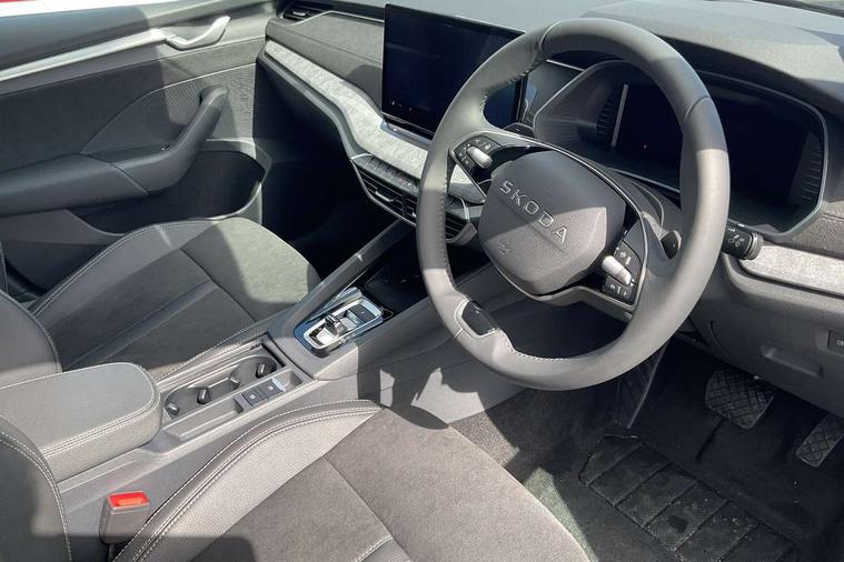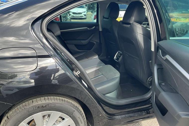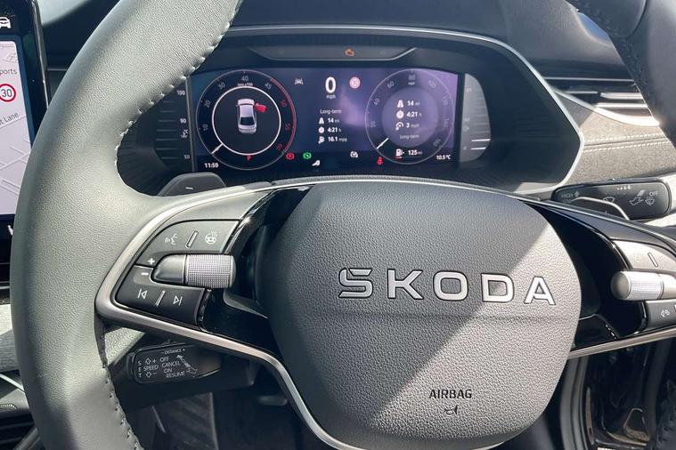 1x USB Typc C port in rear view mirror, 4x USB Type C ports - 2x in front centre console and 2x in rear (45W), Drive mode selection, Driver fatigue sensor, eCall emergency system, Electro-mechanical power steering, Front assist system, Traffic sign recognition, Turn Assist, Virtual Cockpit - 10.25" digital display, Voice control system, Wireless charging (15W) with cooling function, Wireless SmartLink for Apple CarPlay and Android Auto, 13" touchscreen display with navigation, DAB Digital radio, Aero front windscreen wipers with intermittent function, Auto dimming rear view mirror, Body colour bumpers, Body colour door mirrors and handles, Chrome grille surround, Chrome strip in lower front bumper, Chrome window surrounds, Electric front and rear windows, Electrically adjustable, heated, folding and driver side auto-dimming door mirrors, Heated rear windscreen, High level third brake light, Ice scraper in fuel cap, LED daytime running lights, LED Headlights, Logo projection in front doors, Rain and light sensors, Rear fog light on one side and reversing lights on both sides, Rear privacy glass, Rear side wing doors, 12 volt socket in boot, 3 rear headrests, 3 seat bench in 2nd row, 4 foldable roof handles, Boot net programme, Electric auxiliary air heater, Front head restraints, Heated front seats, Illuminated glovebox, Interior door handles in dark chrome, Jumbo Box storage, Luggage compartment lighting x2 lights, Mechanical rear seat release from boot, Parcel shelf - folding, Single front passenger seat, Steering wheel in black leather with black stitching, Storage compartment under passenger seat, Storage compartments in left and right of boot, Sun visors with mirrors, Sunglasses storage, Ticket holder, Two-spoke leather multi function steering wheel with paddles, Umbrella in door panel, Unsplit rear bench seat, split folding backrest with centre armrest with cupholder, Comfort package - Octavia, 3x3 point rear seat belts, Alarm with interior monitoring, tilt sensor and back up horn, Curtain airbags and front side airbags, Driver and front passenger airbags, Drivers knee airbag, Electronic parking brake, ESC including ABS, EBV, MSR, ASR, EDS, HBA, DSR, Front central airbag, Hill hold assist, ISOFIX on front passenger seat and outer rear seats, Passenger airbag deactivate switch, Three point seat belts in front and rear, Two tone horn, Tyre pressure monitor, Visual and acoustic seat belt reminder, Warning reflectors in front door, Anti-theft wheel bolts, Keyless entry and start/stop, Remote central locking, Chrome air vent surrounds,