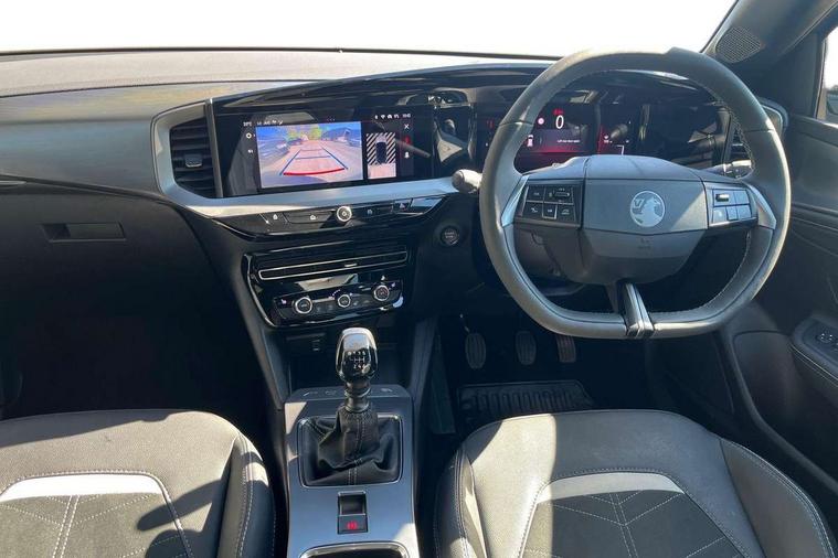 10" digital instrument cluster, Active drive assist, Adaptive cruise control, Digital instrumentation with digital speedometer, rev counter, fuel and water temperature gauge, Driver attention alert, Driver drowsiness alert system, Driver information display with multi function trip computer, audio info, digital clock and outside air temperature with ice warning function, Front and rear parking distance sensors, Lane keep assist system (LAS) with Lane departure warning system (LDWS), Lights on audible warning, Panoramic rear view camera, Power assisted speed sensitive steering, RDS with traffic programme, Side blind spot alert and flank guard, Speech recognition, Start/stop system, Vauxhall connect with e-Call, WiFi connectivity, Wireless phone projection with Apple CarPlay and Android Auto, Sports chassis, 2 rear USB connection, 6 speakers, AM/FM stereo radio with 36 station presets, DAB Digital radio, Front USB connection, Mobile phone portal - bluetooth connect, vehicle microphone, handsfree calls, SMS read out and reply, phone book access, Multimedia pure panel navigation system with 10" colour touchscreen and 15W wireless charger, Steering wheel mounted controls, Adaptive brake lights, Automatic headlamp levelling, Automatic lighting control with tunnel detection, Black DLO, Black door mirror housings, Black Griffin logo and vizor frame, Black lettering and emblems, Black upper window moulding, Body colour door handles, Body colour front and rear bumpers, Body colour skid plates, Dark tinted rear side windows, Electrically adjustable and heated door mirrors, Electrically foldable door mirrors, Electrically operated front and rear windows with safety auto reverse and one touch up/down facility, Electrochromatic frameless auto dimming rear view mirror, Hazard warning lights, Heated rear window+rear wash/wipe, High gloss black front and rear bumper inserts, High gloss black painted claddings, lower grille and front lateral inserts, High gloss black painted lateral moulding, Integrated black tailgate spoiler, IntelliLux matrix headlights with advanced forward lightning and anti glare beam, LED 3rd brake light, LED daytime running lights, LED side repeat indicators, Rain sensitive windscreen wipers, Rear side wing doors, Reversing light, Shark fin antenna, Solar heat absorbing windscreen and windows, Windscreen and side window demist vents, 12V Accessory socket, 3 seat bench in 2nd row, 4 speed fan with illuminated controls, 4 way electrical driver lumbar adjustment, 6 way adjustable front passenger seat including height adjustment, 60/40 split folding rear seat, Air recirculation system, Ambient lighting, Black headliner, Cabin particulate filter - removes dust, airborne particles and pollen, Chrome effect interior door handles, Door pockets with two litre capacity, Driver and passenger heated seats, Driver and passenger sun visors with vanity mirror, Driver seat massage function, Electronic climate control (ECC), Four adjustable facia vents, Four load restraint lashing eyes, Front centre armrest with storage, Front driver and co-driver side articulated grab handles, Front head restraints, Front map reading lights, Front seat back storage pockets, Fully carpeted load area, Heated steering wheel, Interior courtesy light, Interior tailgate handle, Luggage compartment cover, Luggage compartment lighting, Moveable boot floor, Reach + rake adjustable steering column, Rear Reading Lamps, ReNewKnit fabric/leather upholstery, Single front passenger seat, Three height adjustable rear seat head restraints, Twin gas assisted tailgate struts, 2x Isofix child seat fitting on outer rear seats, 3x3 point rear seat belts, Anti-lock braking system (ABS), Child proof locks on rear doors, Cornering brake control, Deactivation switch for front passenger front and side impact airbags, Drag torque control, Driver and front passenger airbags, front seat side impact airbags, full size curtain airbags, Electronic brake force distribution, Electronic Stability Programme (ESP), Emergency brake assist, Enhanced automatic emergency braking with pedestrian and bicycle detection, Forward brake assist, Forward collision alert at all speed, Hill start assist, Inertia reel lap and diagonal seatbelts for all seats, Manual parking brake, Seatbelt unfastened audible warning and warning light, Straight line stability control, Traction control, Tyre pressure monitoring system, Electronically protected audio equipment, Engine deadlock immobiliser, Freewheeling door locks, Key left in ignition audible warning, Keyless entry and start, Locking wheel nuts, Remote control central locking, Remote control ultrasonic security alarm system, Visible vehicle identification number, Black facia with silver trim insert, Light grey trim inserts on front doors, Vegan door inserts, 18" Black diamond cut alloy wheels,