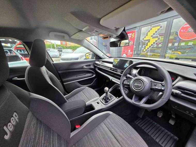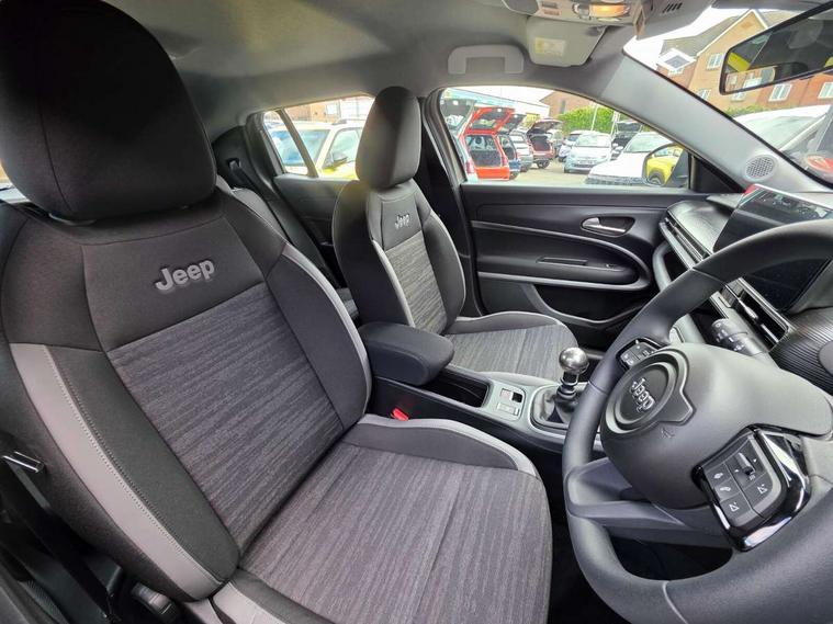 All-Terrain Mode Selector, Apple Carplay/Android Auto with wireless mirroring, BSRF connectivity box, Connectivity services, Driver attention alert system with camera, Drowsy driver detection system, eCall emergency call system, Keyless Start/Engine On Button, Lane keep assist, Odometer, PAS, Quick Guide English, Rear parking sensors, Telematic box and connected services, Traffic sign recognition, Warranty Booklet - UK, Battery default, High efficiency alternator, Audio system with 6 speakers, 3rd brake light, All power windows express Up/Down, Automatic headlights, Black mirror caps, Body colour exterior door handles, Day time running light, Grey skid plates, Halogen rear lights, Heated and electrically folding outside mirrors, LED reflector headlamps, Manual control rear view mirror, Rain sensor, Rear side wing doors, Rear wiper, Wiring preperation for towing group by Mopar, 3 rear headrests, 3 seat bench in 2nd row, 4 way manually adjustable passenger seat, 6 way manually adjustable drivers seat, Central console dividers x2, Cloth upholstery, Driver and front passenger sunvisor with vanity mirror, Foldable second row seats 40/60 - Fix and Fold, Front central armrest with storage, Front head restraints, Front passenger grab handle, Front passenger isofix child seat attachment, Front seat backrest pocket, Full black upper interior and headlining, I am Jeep label, Manual air conditioning, Partial body cover for shipment, Single front passenger seat, Anti-lock braking system (ABS), Child locks on rear doors, Electric parking brake, ESC - Electronic Stability Control + traction control, Hill descent control, Kit fix and go predisposition/housing only, Rear seat ISOFIX, Three 3 point rear seatbelts, Vulnerable road user recognition - Pedestrian/Cyclist incl. AEB, Volumetric anti theft alarm, 16" alloy wheels painted in medium glossy grey with summer chainable, Fix and go tyre repair kit,