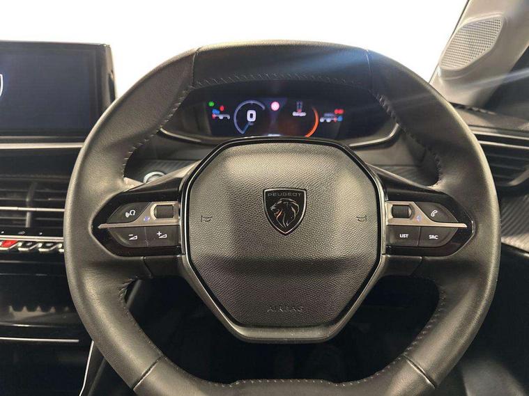 Bluetooth telephone facility, Drive mode selection(Eco/Normal), Driver attention warning, Emergency call service, Exterior temperature indicator with ice warning, Front and rear parking sensors, Multi function trip computer, PEUGEOT i-Cockpit with 10" configurable colour head up instrument panel, PEUGEOT i-Cockpit with 10" HD capacitive colour touchscreen, PEUGEOT i-Cockpit with compact steering wheel, PEUGEOT SOS and assistance, Push button start, Smart phone docking station, Speed limit recognition and recommendation, Start/stop system, Wireless mirror screen with apple carplay and android auto, 6 Speakers - 2 tweeters and 4 door speakers, DAB Digital radio, Peugeot i-connect infotainment system - 10in HD touchscreen, AM/FM/DAB digital radio, Wifi Mirroring, Bluetooth & 2 USB connection, USB-A socket (x1) and USB-C socket (x1) - rear, USB-C data and charge socket and USB-C charge socket in front, Voice recognition for radio, navigation and telephony features, 2 X Rear number plate lights, Acoustic windscreen, Antenna - Gloss Black 'fin' design, Automatic hazard light activation upon heavy brake application, Body coloured exterior door handles, Dark tinted rear side and tailgate windows, Diamond black rear spoiler (roof), Eco LED headlights with electric height adjustment, Electric heated and power folding door mirrors with courtesy floor lighting, Electrochrome rear view mirror, Gloss black B pillar, Gloss black door mirror shells, Gloss black front bumper grille with body colour accents, Gloss black rear cluster connecting strip, Headlights left on audible warning, LED 3 claw horizontal rear lighting signature with daylight function and LED brake lights, LED daytime running lights with distinctive 3 claw signature, LED Rear lighting with distinctive 3 claw horizontal signature with daylight function, LED third brake light, Model designation badges front and rear in basalt grey, One touch electric front/rear windows with pinch protection, Rear bumper with gloss black finish, Rear reversing lights, Rear side wing doors, Rear windscreen wiper triggered automatically in reverse gear, Roof spoiler, Tailgate with heated rear windscreen and wiper blade, Variable front intermittent wipers, 1/3 to 2/3 split folding rear seats, 12V socket, 3 seat bench in 2nd row, Automatic mono zone climate control air condition, Boot lighting, Driver and front passenger comfort seats, Driver and front passenger seat manual adjustment in longitudinal and back rest angle, Driver seat mechanical height adjustment, Electric power steering with reach and rake adjustable steering column, Front centre armrest with storage compartment, Front interior light with 2 reading spotlights, Gear shift indicator, High centre console with 2 cup holders, Map pockets on the backs of the front seats, Multifunction leather steering wheel, Piano keys gloss black plated toggle switches to access main functions of the vehicle, Quartz contrast stitching to front and rear door armrest, Rear centre headrest, Roof lining - light grey, Seatbelt unfastened on the move audible and visual alert for front and rear seats, Single front passenger seat, Tri material cloth/leather upholstery, Visibility pack - 208, 2x Isofix child seat fitting on outer rear seats, 3 rear 3 point seatbelts, ABS (Anti-lock Braking System) with EBD (Electronic Brakeforce Distribution) and EBA (Emergency Braking Assistance), Child locking functionality on rear doors, Driver and front passenger airbag with passenger airbag deactivation, Driver/front passenger side airbags, Electric parking brake, ESP with Hill Assist, Front and rear curtain airbags, Front and rear disc brakes, Front optimised safety headrests and 3 x rear retractable headrests with height adjustable, Front three point retractable seatbelts with force limiters, Remote plip(x2) for locking, unlocking, includes emergency key blade, Tyre pressure monitoring system, Acoustic vehicle alert system (AVAS), Alarm - Connected, volumetric , perimetric, anti lift sensor, Automatic door locking when moving off, Deadlock, Electronic code immobiliser, Remote central locking, Carbon effect Dashboard, front and rear door panel finish, 16" Noma two tone diamond cut alloy wheels, Tyre puncture repair kit,