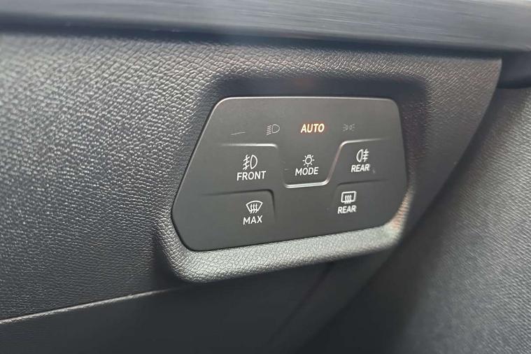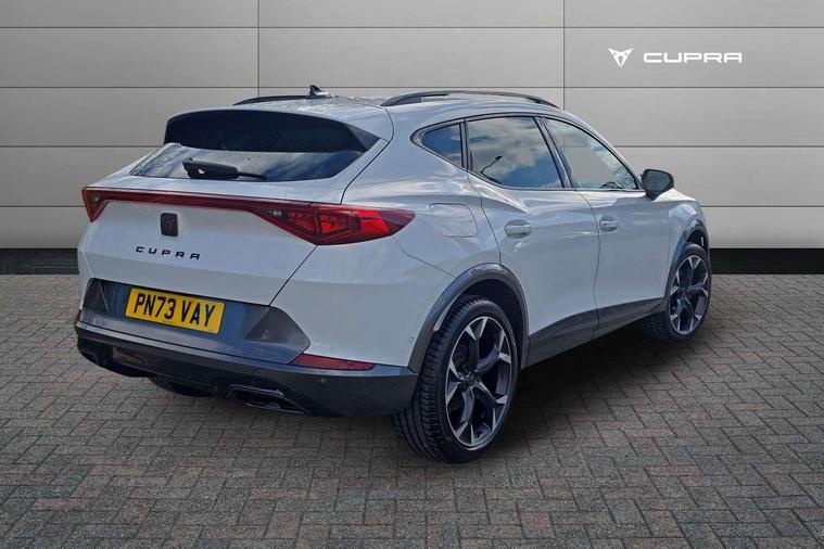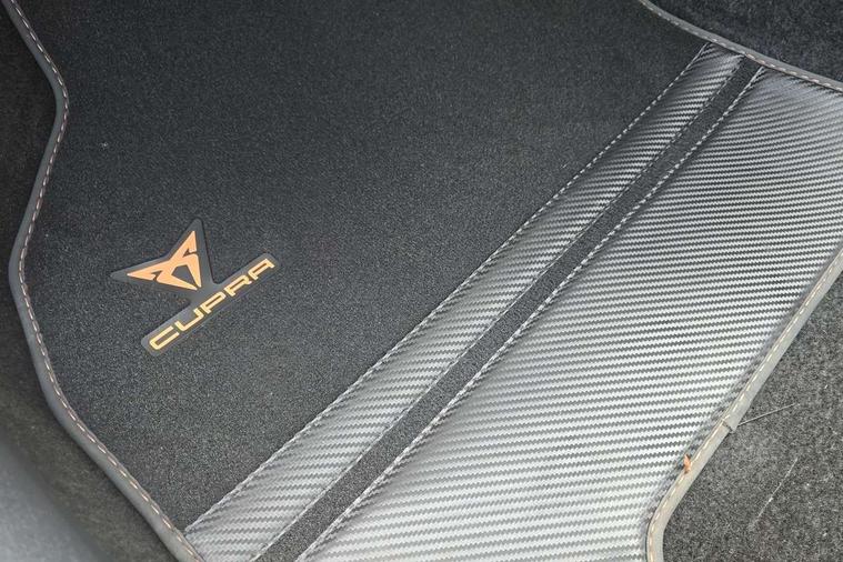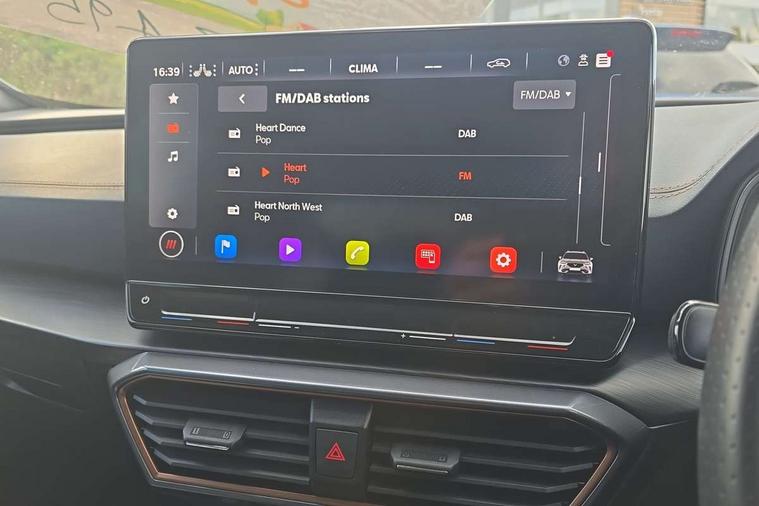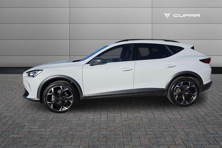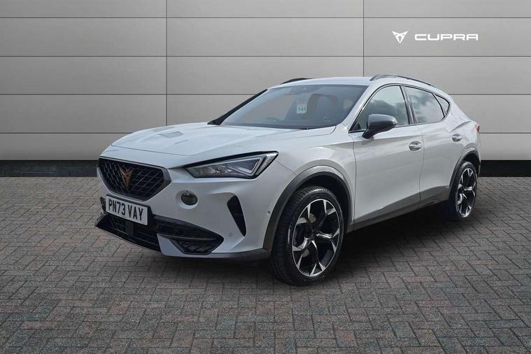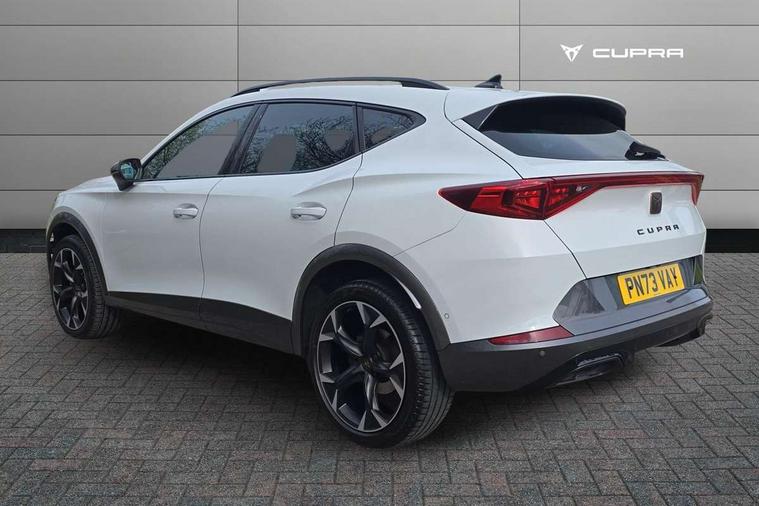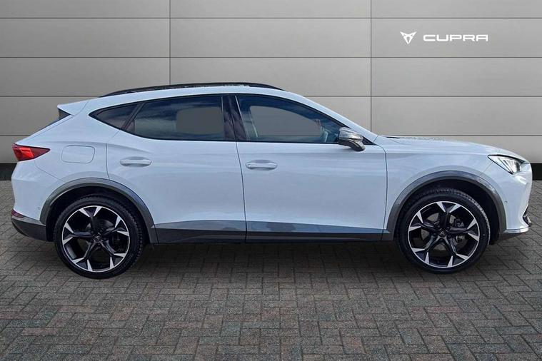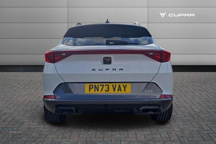 Digital cockpit and configurable dashboard, Driver alert system, Driving profile selection, Forward collision warning with automatic braking, Lane assist, Navigation system with 12'' Touchscreen Display, Park assist (inc front/rear parking sensors), PAS, Predictive adaptive cruise control with speed limiter, Rear view camera, RPM, trip computer, outside temp gauge, instrument light brightness, low fuel warning light, lights on reminder, gearshift indicator, Service interval indicator, Start/stop system with regenerative braking, Voice control system, Wired Android Auto, Wireless apple carplay, Wireless phone charger, Electronic locking differential and dynamic traction support, Standard suspension, 2 front and 2 rear USB type C sockets, Auxiliary input socket, DAB radio, Auto dimming rear view mirror, Body colour door handles, Body coloured bumpers, Dark grey wing mirror, Daytime running light with automatic headlight control and coming home feature, Dynamic headlight range control, Electric front/rear windows, Electrically adjustable heated and folding door mirrors with memory function, Front fog lamps with cornering function, Gloss black roof rails and window surrounds, LED Headlights, LED Taillights with dynamic indicator, Rain sensing wipers, Rear diffuser with black simulated exhaust pipes, Rear side wing doors, Rear wash/wipe, Third brake light, Tinted rear windows, Welcome lights, 12v power supply in centre console, 12V socket, 12v socket in loadspace, 2 front and 2 rear reading lights, 230V socket, 3 seat bench in 2nd row, 60/40 split rear bench seat with armrest and mechanical seat release, Black headlining, Dust/pollen filter, Front and rear head restraints, Front centre armrest, Height/reach adjust steering wheel, Illuminated interior front door sills, Illuminated sunvisor with mirror, Isofix, Leather multi function heated steering wheel with gear shift paddles, Luggage tie-down hooks, Single front passenger seat, Three zone climate control with control panel in rear, Variable luggage/load compartment floor, Wraparound lighting, Genuine Nappa leather Pack - Cupra, 3 point seatbelts on all rear seats, ABS, Brake control system - ESC and brake booster, Child proof door locks, Driver and front passenger airbags with front passenger airbag de-activation, Electronic parking brake, Front and rear disc brakes, Front side curtain airbags, Hill hold control, Public e-call, Seat belt reminder for front and rear seats, Tyre pressure monitoring system, Anti theft alarm system, Keyless entry and start system (KESSY), Locking wheel bolts, Copper and aluminium interior detailing, 19" 'Exclusive' machined sport matte black and silver alloy wheels,