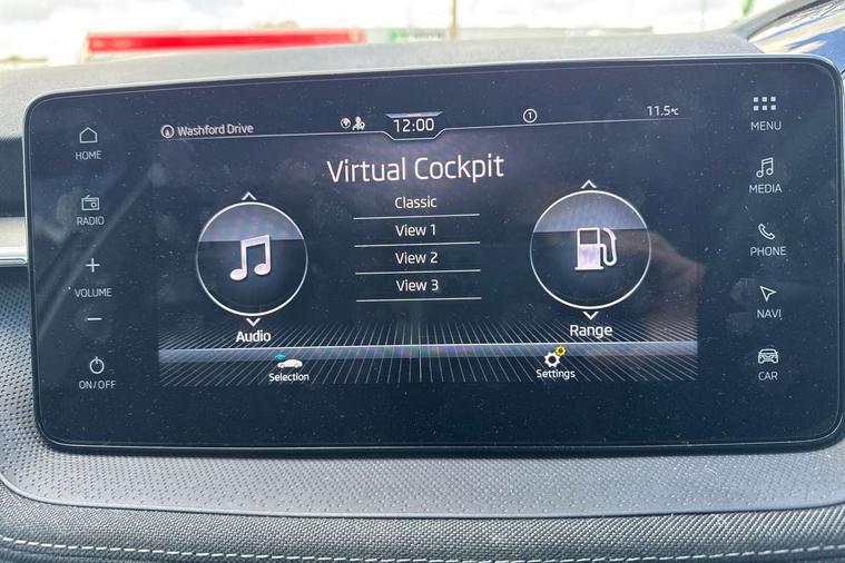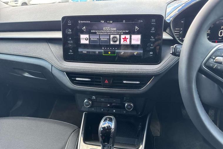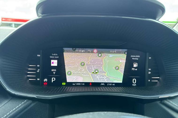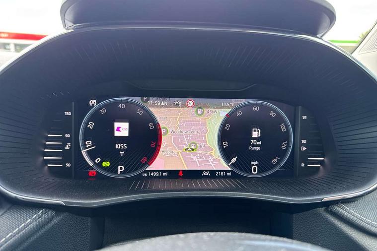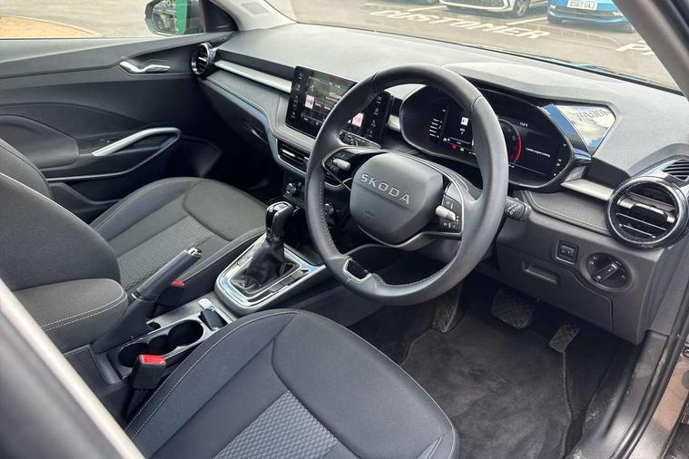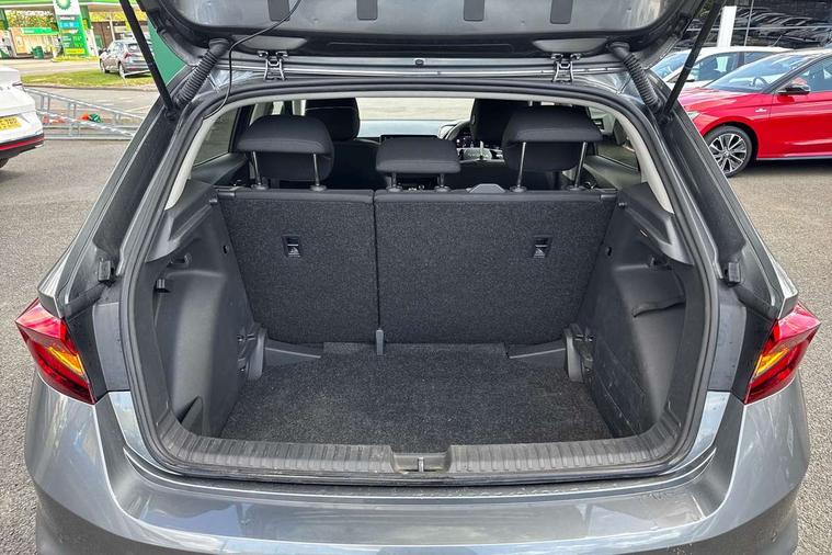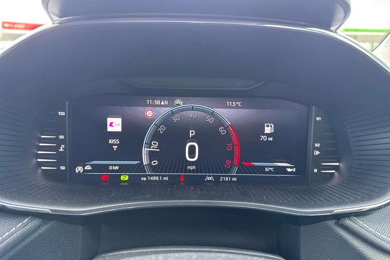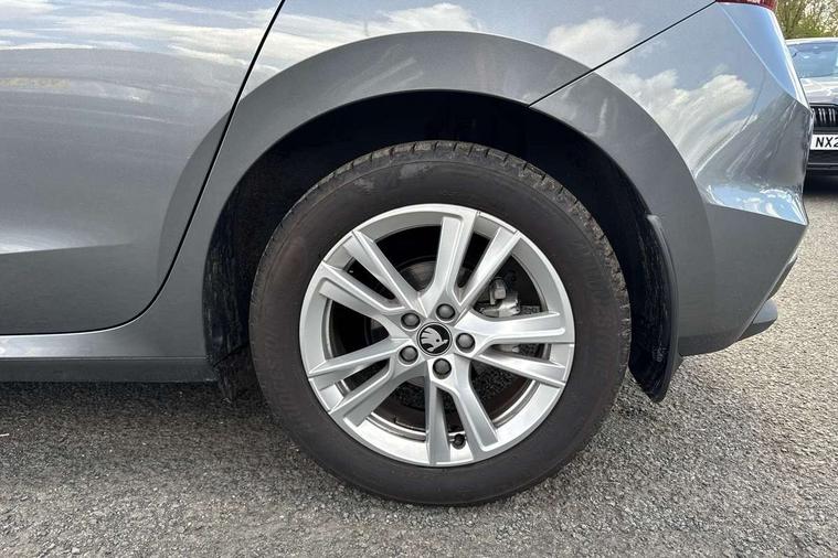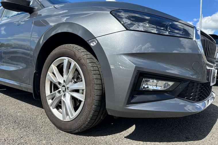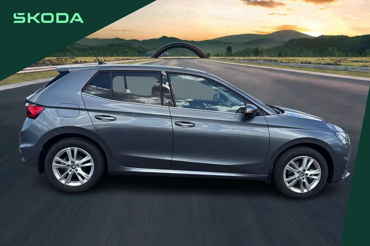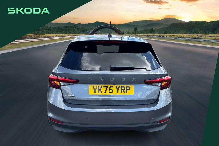 Advanced driver attention and drowsiness monitor, Bluetooth connection, Driver alert system, Electromechanical power steering, Exterior temperature gauge, Service interval indicator, Traffic sign recognition, Virtual cockpit with 10.25" colour display, Wireless SmartLink for Apple CarPlay and Android Auto, 6 Speakers (4 in front and 2 in rear), 9.2" colour display skoda navigation system with voice control and web radio, Auxiliary socket for external MP3 player, DAB digital radio reception, Auto dimming rear view mirror, Body colour door mirrors, Body coloured bumpers, Chrome window surround, Door mirror integrated indicators, Front and rear electric windows, Front window wiper intermittent control, Headlight range control - Automatic, Ice scraper in fuel cap, LED 3rd brake light, LED daytime running lights with coming and leaving home feature, LED rear lights, Privacy glass, Rear LED fog light, Rear side wing doors, Rear window wiper with washing nozzles, Roof mounted spoiler, SKODA tailgate lettering in chrome, Unique dark chrome design logo on alloy wheels, 2 LED reading lights in front and rear, 3 rear headrests, Backrest split and folding, Central console with fixed cup holder and storage box, Chrome handbrake release button, Comfort seats, Door sills with fabia badging, Dual zone air conditioning with climatronic electronic control, Fabric upholstery, Front centre armrest, Gearshift knob/handle in leather, Grain satin black interior door handles, Hand brake lever handle in leather, Height adjustable front headrests, Height adjustable front seats, Height adjustable steering wheel, ISOFIX and TopTether anchorage points to the outer rear seats, ISOFIX and TopTether on the front passenger seat, Luggage compartment lighting, Manually adjustable lumbar support in front seats, Pollen filter, Rear seat bench unsplit, Single front passenger seat, Skoda lettering on steering wheel, Storm grey headlining, Sun visors with mirror and airbag label on passenger side, Textile floor mats, Ticket holder, Ambient lighting pack - Fabia Hatchback, 3-point height adjustable front seats belts with pretensioner and force limiter, Automatic warning lights in case of crash, Driver and passengers airbag with switch off function, e-Call+, ESC including ABS, MSR, ASR, EDS, HBA and XDS, Front and rear seat belt warning, FRONT ASSIST (AEB City and AEB Inter Urban), Front side airbags, Head airbags, Hill hold control, One tone horn, Pedestrian protection, Three rear 3-points safety seat belts with pretensioner and force limiter including stop function for outer rear seat belts, Tyre pressure monitoring system, Anti-theft alarm system including immobiliser, interior monitoring, backup horn, and towing protection, Central locking with radio remote control, interior controls, SAFE function and 2 foldable keys, Chrome edged air vents, Grain satin black central console cover, Metallic grey upper decorative trim, Satin black door and side trim panel in front, Textile microsuede grey lower decorative trim with art grey stitching, Anti-theft wheel bolts protection, Super-low rolling resistance tyres,