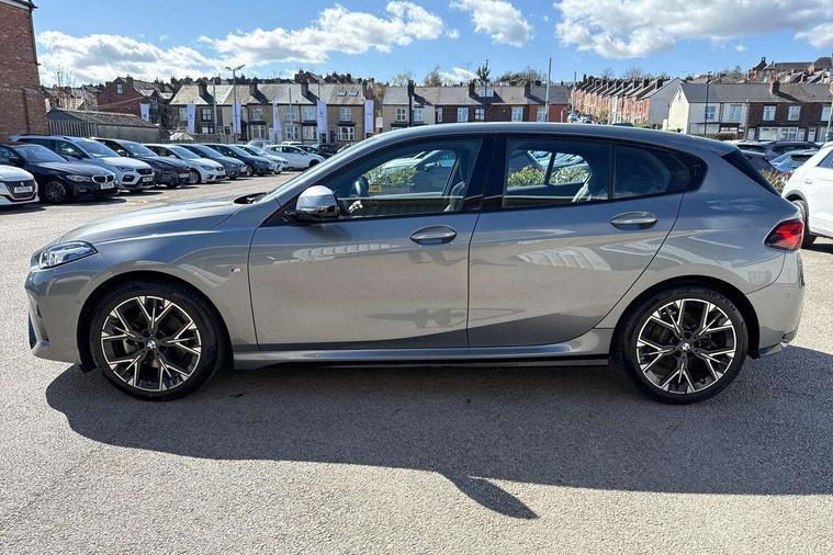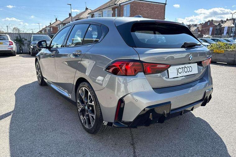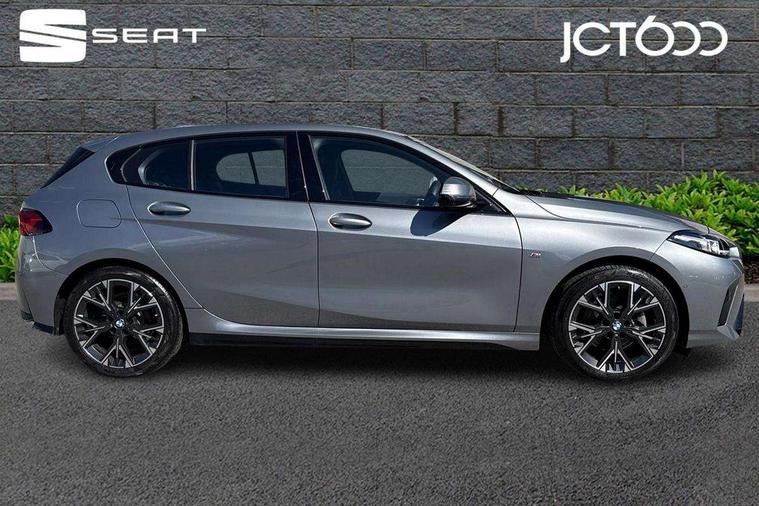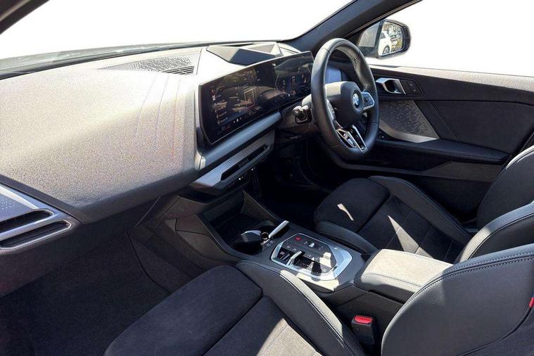 Active guard plus, Attentiveness assist, Bluetooth / WiFi interface for wireless connection of mobile terminal devices and audio streaming, BMW ConnectedDrive online services, BMW Live cockpit plus, BMW Teleservices, Check Control warning system for monitoring of lights and door/luggage compartment open warning, Eco pro mode, Electric power steering with Servotronic steering optimised at all speed ranges, Evasion assistant, Flat airvents in instrument panel with adjustable slats, Front and rear parking sensors, Front axle single joint with specific axle kinematics to minimise drive influences on steering + provide increased rigidity agile driving behaviour, Gearshift time display in manual mode, Integrated owners handbook, Left turn warning with brake function, My modes (Personal / Efficient / Sport), Oil sensor for level and grade, On board computer, Optimum shift indicator, Park assist including reversing assistant, lateral parking aid and reversing assist camera, Personal e-SIM, Personal Profile, Pull away assistant, Rigidly mounted rear subframe - Multi link construction with separate spring / damper configuration and excellent driving characteristics, Speed limit Info including no-overtaking indicator, Speed limiter, 49 litre fuel tank, Aluminium lightweight construction, Anti roll bar front and rear, Balancer shaft, Double VANOS twin scroll turbocharging system, Drive Performance Control, Electronic differential lock, Electronic selector lever, High precision injection, M Adaptive suspension, Petrol Particulate Filter, Steptronic transmission with double clutch, Twin tube gas filled shock absorbers with degressive characteristic curve, VALVETRONIC engine management, DAB Digital radio, Auto dimming rear view mirror, Automatic windscreen wipers and automatic headlight, Body colour door handles, Body colour mirror caps, Body colour roof trims, Chrome 'M' logo side designation, Chrome exhaust twin tailpipes round 90mm in left, Chrome kidney grille frame with Satin Aluminium struts, Direction indicator side lights in exterior mirrors, Electrically adjustable exterior mirror with mirror adjustment switch on drivers armrest and aspheric on driver side, convex on passenger side, Exterior M sport design elements, Fading support, Folding side mirrors with auto dimming/folding wing mirrors with auto dimming, Follow me home headlights, Front and rear bumper system with replaceable deformation elements, Front and rear electric windows with open and close fingertip control, anti trap facility and comfort closing, Front bumper panel with M specific design in vehicle colour with inserts in black high gloss, Front door sill finishers in black plastic with M designation in metallic look, Green tinted heat protection glazing, Heated rear window, High gloss black exterior mirrors, High gloss shadowline window frame, Recess cover mirror frames and B/C pillar embelisher trim, High level third brake light, Integrated front windscreen with washer jets, LED daytime running lights, LED eyebrow turn indicators, LED front fog lights, LED Headlights, Lightweight engineering, M identification on the sides, Matt black air guide grilles, Matt black wheel arch trim, Model badge on tailgate right, Nearside reverse light in rear light cluster, Preparation for high beam assistant, Rain sensor, Rear bumper panel with M-specific design in vehicle colour with inserts in black high gloss, Rear fog lights, Rear side wing doors, Rear window wiper, Shark fin antenna, Side sill covers with M specific design in body colour, Trailer stabilisation logic, Visible VIN plate, Welcome lighting, 12V power socket in front centre console with blanking plug, 3 rear seat head restraints, 3 seat bench in 2nd row, 3 spoke sports leather steering wheel with black leather and stitching, pearl chrome decorative finish, specific M Badge, Anthracite front and rear floor mats, Anthracite headlining, Black boot net with lashing eyes, Cargo function on 2nd seat row, Child seat ISOFIX attachment for two outer rear seats and front passenger seat with anchorage points, Conditioned based service, Driver and front passenger backrest net on rear, Driver and front passenger seat heating, Driver side folding compartment in instrument panel, Folding rear clothes hook, Footrest and pedals in black plastic, Four grab handles integrated in roof lining, Front and rear door pockets with bottle holders, Front and rear side armrest integrated into door trim, Front armrest with storage compartment, Gearshift paddles on steering wheel, Glove compartment, Height adjustable front head restraints, Luggage compartment for bag hooks on left and right, foldable luggage compartment liner and four lashing eyelets, Manual adjust steering wheel, Multi-function controls for steering wheel, Rear seat backrest with manual 60:40 split folding with 3 top tether clips integrated on rear of seat panels, Single front passenger seat, Storage compartment in centre console, Storage compartment in luggage compartment, Stowage of the parcel shelf in luggage compartment trim, Sun visors with vanity mirrors and insert tab, Two front centre console cupholders, Type C two USB ports in rear centre console, Upper retaining strap integrated into backrest rear panels, Connected pack professional - 1 Series, Interior lights pack - 1 Series, M Sport exterior styling aerodynamics pack - 1 Series, 2 tone horn, 3 point seatbelts on all seats, front pyrotechnic belt tensioners, stopper and belt force limiters, rear coded belt buckles, Airbags - Front driver/passenger, front and rear curtain head protection, front side, manual deactivation of front passenger airbag, Anti lock braking system (ABS) with brake assist, BMW emergency call, Brake drying, Braking readiness, Child proof locking system in rear door, Comfort modes, Cornering brake control, Crash sensor activating of airbags, Unlocking doors, hazard warning lights, interior light, safety battery terminal, Driver and front passenger seat belt sec