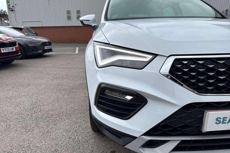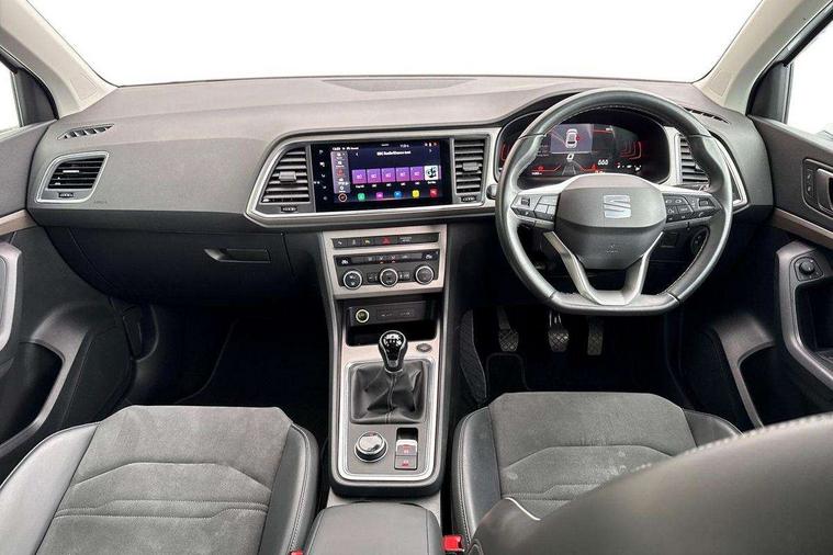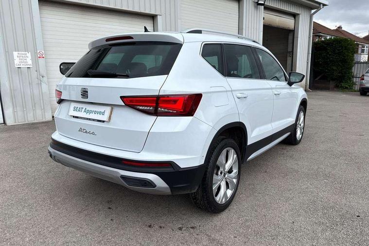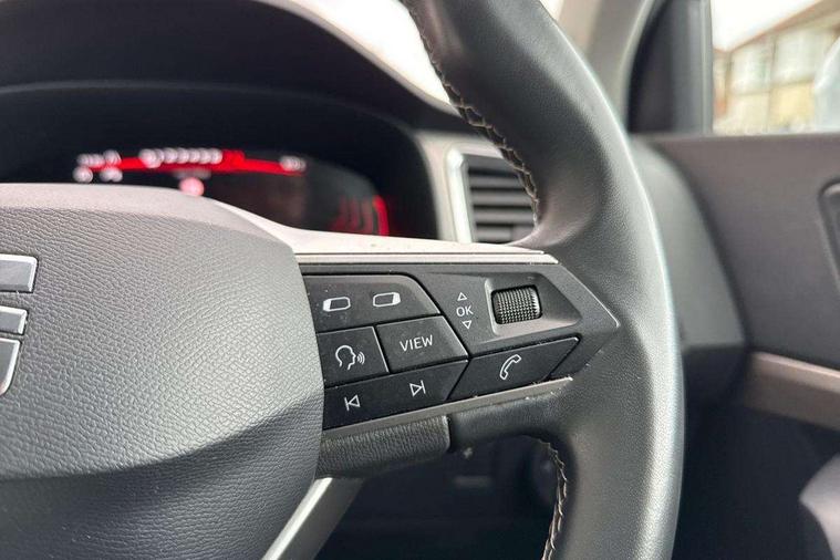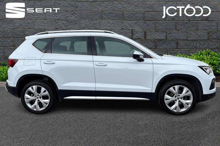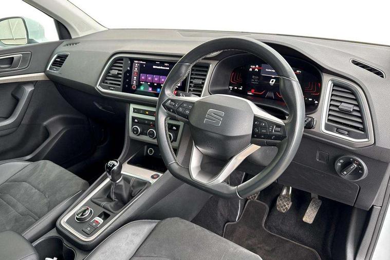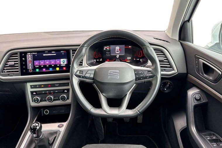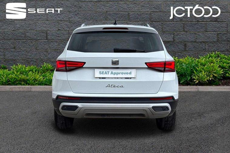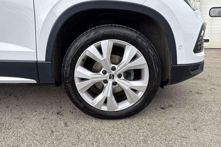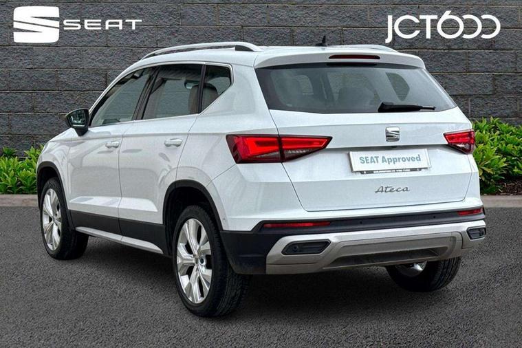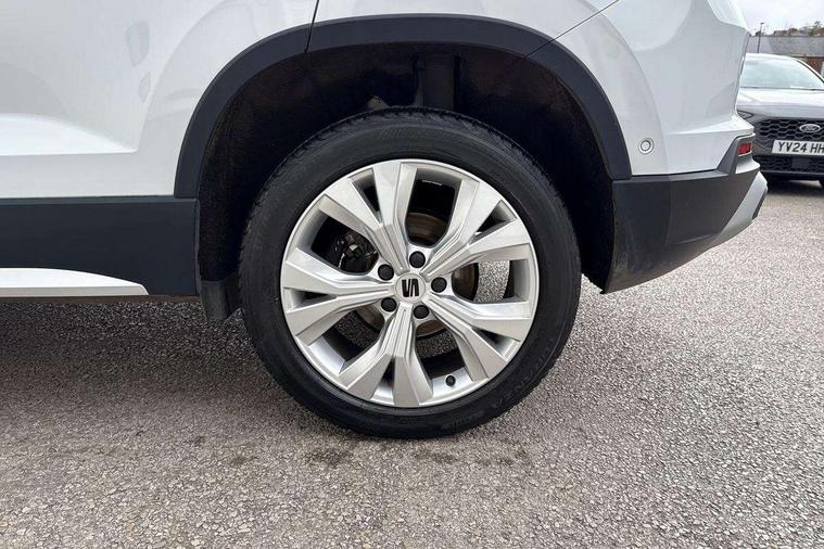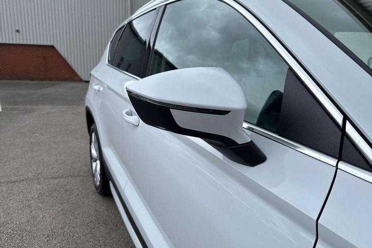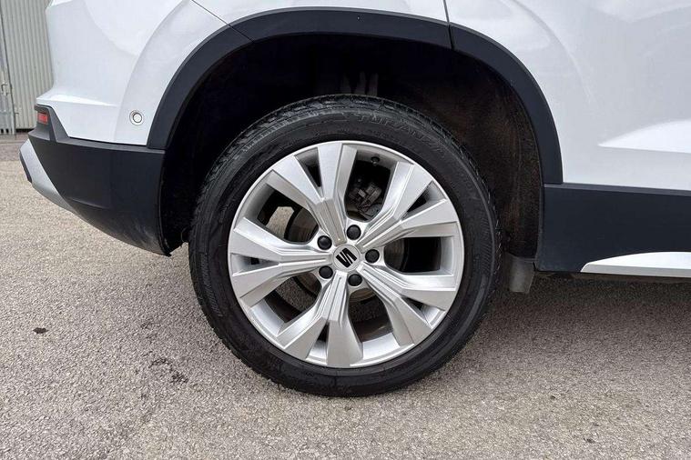 8" Digital cockpit, Colour multi-function on board computer display, E-call, Outside temperature gauge, Progressive power assisted steering, Rear view camera, SEAT drive profile with driving experience button - Normal, Sport, Eco and Individual mode, steering and throttle response, Self parking functionality (includes front and rear parking sensors), Start/stop system, Tailgate, Trip computer, Wireless full link smartphone integration, Wireless phone charger, Steering wheel mounted audio/phone controls, Black simulated exhaust pipes, Black wheel arch surrounds, Body colour bumpers, Chrome front grille frame, Chrome roof rails, Chrome side window trim, Dark tinted rear windows, Daytime running lights, Door mirrors with welcome light silhouette, Dynamic headlight range control with self adjusting whilst driving, Electric adjustable/heated/folding door mirrors, Front and rear electric windows, Front grille hot stamping, Full LED headlamps with lens and LED front fog lamps with cornering function, Illuminated aluminium front door sill, LED rear tail lights with dynamic indicators, Rear fog lights, Rear side wing doors, Rear wash/wipe, Reflex silver side mouldings, Variable front intermittent wipers, 12V socket in front, 3 seat bench in 2nd row, 60/40 split folding rear seat, Drawer under right front seat, Dual zone climate control, Front and rear head restraints, Front centre armrest, Front seat back storage pockets, Height adjustable driver and passenger seat with lumbar adjustment, ISOFIX points in outer rear seats with top tether anchorage points, Leather steering wheel and gear knob, Microsuede upholstery with front comfort seats, Rear armrest and easy back seat release mechanism from boot, Single front passenger seat, Convenience pack - Ateca, Interior lighting pack - Ateca, Navigation system pack with DAB - Ateca, Safe and driving pack with lane assist - Ateca, 3x3 point rear seatbelts, ABS, Traction control system (TCS), Electronic stability control (ESC) and Electronic differential lock system (XDS), Airbags - Driver and front passenger airbag with deactivation, front side, two curtain and driver's knee airbags, Electric parking brake with auto hold function, Front and rear seatbelt reminder, Hill hold control, Manual rear child locks, Single tone horn, Tiredness recognition system, Traction control, Tyre pressure monitoring system, Alarm, Keyless entry, Locking wheel bolts, Remote central locking, Chrome interior detailing, 18" Brillaint silver alloy wheels,