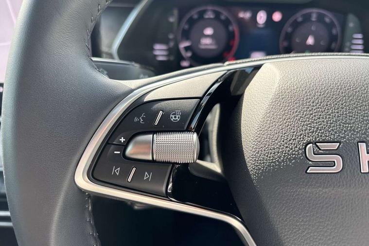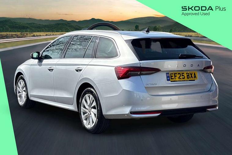 1x USB Typc C port in rear view mirror, 4x USB Type C ports - 2x in front centre console and 2x in rear (45W), Drive mode selection, Driver fatigue sensor, eCall emergency system, Electro-mechanical power steering, Front and rear parking sensors with manoeuvre assist, Front assist system, Traffic jam assist, Traffic sign recognition, Turn Assist, Virtual Cockpit - 10.25" digital display, Voice control system, Wireless charging (15W) with cooling function, Wireless SmartLink for Apple CarPlay and Android Auto, 13" touchscreen display with navigation, DAB Digital radio, Aero front windscreen wipers with intermittent function, Auto dimming rear view mirror, Body colour bumpers, Body colour door mirrors and handles, Chrome grille surround, Chrome roof rails, Chrome strip in lower front bumper, Chrome window surrounds, Electric front and rear windows, Heated rear windscreen, High level third brake light, Ice scraper in fuel cap, LED daytime running lights, LED Headlights, Logo projection in front doors, Rain and light sensors, Rear fog light on one side, Rear privacy glass, Rear side wing doors, Rear spoiler, Rear window wiper, 12 volt socket in boot, 3 rear headrests, 3 seat bench in 2nd row, 4 foldable roof handles, Front head restraints, Heated front seats, Illuminated glovebox, Interior door handles in dark chrome, Jumbo Box storage, Luggage compartment lighting x2 lights, Mechanical rear seat release from boot, Single front passenger seat, Steering wheel in black leather with black stitching, Storage compartments in left and right of boot, Sun visors with mirrors, Sunglasses storage, Ticket holder, Umbrella in door panel, Unsplit rear bench seat, split folding backrest with centre armrest with cupholder, Comfort package - Octavia Estate, Simply clever package premium with Storage compartment under passenger seat - Octavia, 3x3 point rear seat belts, Alarm with interior monitoring, tilt sensor and back up horn, Curtain airbags and front side airbags, Driver and front passenger airbags, Drivers knee airbag, Electronic parking brake, ESC including ABS, EBV, MSR, ASR, EDS, HBA, DSR, Front central airbag, Hill hold assist, ISOFIX on front passenger seat and outer rear seats, Passenger airbag deactivate switch, Three point seat belts in front and rear, Two tone horn, Tyre pressure monitor, Visual and acoustic seat belt reminder, Warning reflectors in front door, Anti-theft wheel bolts, Keyless start/stop, Remote central locking, Chrome air vent surrounds,