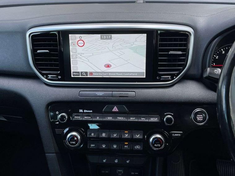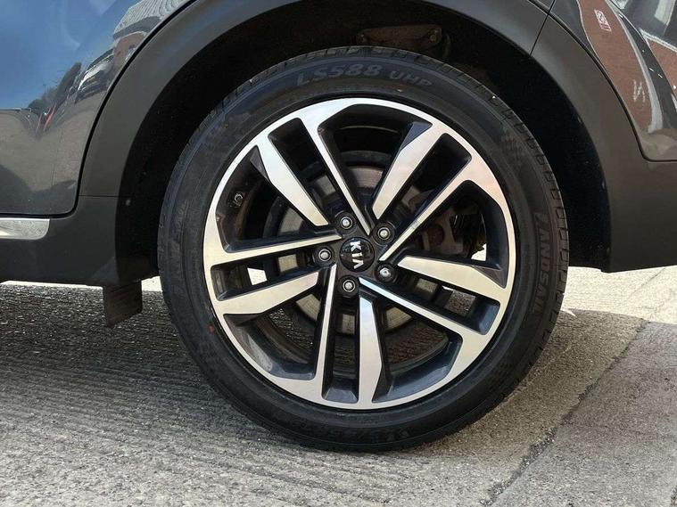 360 degree surround camera, 4.2" supervision colour cluster display, 8" touchscreen satellite navigation with European mapping and traffic messaging channel, Android auto with voice control, Apple car play with voice control, Blind spot collision warning, Bluetooth connectivity with voice control, Cruise control + speed limiter, Digital clock, Drive mode selector, Driver attention warning, Emergency stop signalling system, Forward collision avoidance assist, Front parking sensor, Kia connected services featuring TomTom live, Lane keep assist, Rear parking sensor, Speed limit information, Speed sensitive power steering, Trip computer, Windscreen washer level indicator, Intelligent Stop and Go, Bluetooth audio streaming, DAB Radio with MP3, JBL Premium sound system with 8 speakers, external amp, subwoofer and front centre speaker, Rear USB port, Steering wheel mounted audio controls, USB/iPod/auxiliary input connections, All round electric windows with drivers auto up/down function, Auto dimming rear view mirror, Automatic defog system, Automatic headlights, Black wheel arch body mouldings and side sills with chrome insert, Body colour door handles with chrome inserts, Body colour door mirrors, Chrome front bumper insert, Chrome grille surround, Chrome window surround, Cornering light, Electric panoramic glass sunroof, Electrically adjustable/heated/folding door mirrors with LED indicators, Front fog lights, High beam assist, High gloss black diamond mesh radiator grille, LED Bi-Function headlights, LED daytime running lights, LED rear lights, Privacy glass (rear side windows and rear screen), Rain sensing front wipers, Rear spoiler, Rear wiper, Roof rails, Shark fin antenna, Silver painted front and rear skid plates, Speed sensitive front wipers, Tinted glass, Trailer stability assist, Welcome and follow-me home light functionality, Wide view drivers door mirror, Windscreen wiper de-icer, 10 way driver/8 way passenger electrically power adjustable seats, 12V power in front and rear centre console, 3 x passenger assist grips, 60/40 split folding rear seat, Air filter, All-round height adjustable headrests, Centre console storage box, Door armrest in leather, Driver and front passenger side sunvisors with illuminated vanity mirrors, Drivers seat power lumbar support, Dual zone automatic air conditioning, Front and rear door storage, Front cabin LED map light with sunglasses case, Front door courtesy reflectors, Front seat and rear pockets, Front/rear centre armrests, Gear shift indicator, Glovebox illumination, Heated front and outer rear seats, Heated steering wheel, Illuminated glovebox, Interior door lock/unlock function, ISOFIX Child seat top tethers and anchor fixings, Leather steering wheel, Leather trimmed gearshift, Leather upholstery, Light grey headlining, Luggage area LED light, Luggage area load cover, Luggage net with hooks, Rear centre armrest with cupholder, Rear coat hooks, Rear headrests, Satin chrome interior door handles, Side cabin LED lights, Stainless Steel Scuff Plates, Tilt/telescopic adjustable steering wheel, Ventilation ducts to rear compartment, 3x3 point rear seatbelts, Active front headrests, All round 3-point seatbelts, Anti-lock braking system with electronic brakeforce distribution, Dual front side airbags, Electronic parking brake, Electronic stability control with downhill brake control, ESP + traction control, Front passenger airbag cut-off switch, Front seatbelt pretensioners + load limiters, Height adjustable front seatbelts, Hill start assist control (HAC), Impact sensing auto door unlocking, Rear door child safety locks, Twin curtain airbags with roll over sensor, Twin front airbags, Tyre pressure monitoring system, Advanced anti-theft system including immobiliser and alarm, Door deadlocks, Engine Start/Stop Button with Smart Entry System, Locking wheel nuts, Speed sensitive auto door locking, Visible vehicle identification number, High gloss black centre fascia, 19" Alloy wheels, Temporary spare wheel,