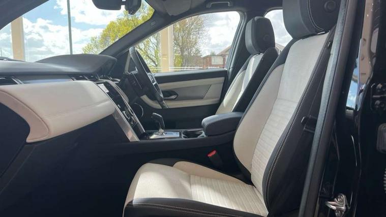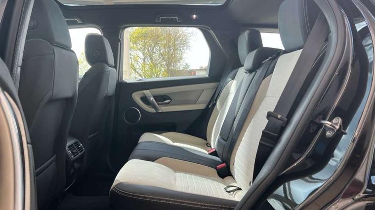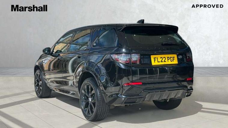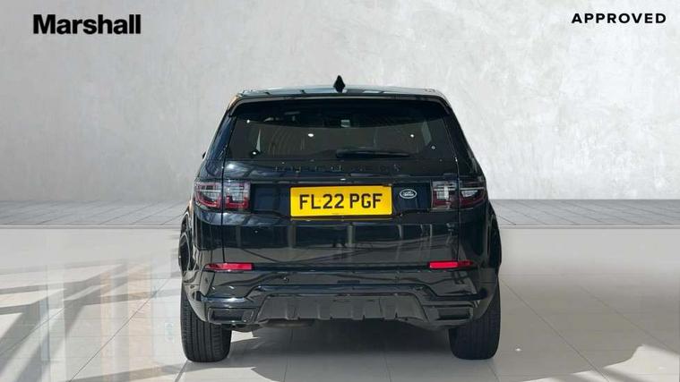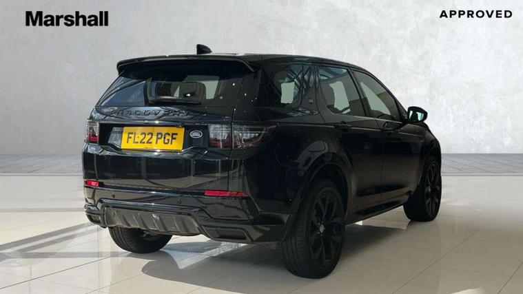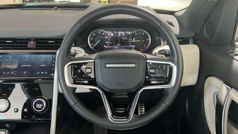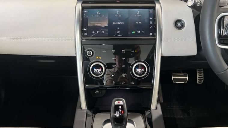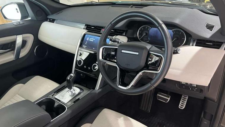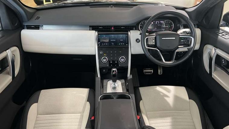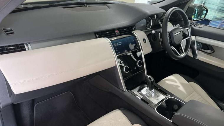 10" touch screen, Adaptive cruise control, Android Auto, Apple CarPlay, Driver condition monitor, eCall emergency call system, Front and rear parking aid, InControl remote premium, Lane keep assist, Locking fuel flap, PAS, Pivi Pro connected navigation system with upgraded Infotainment, Powered tailgate/boot lid, Push button start, Rear collision monitor, Service interval indicator, Traffic sign recognition with adaptive speed limiter, Trip computer, Wade Sensing, All terrain progress control, Coil suspension system, Diesel particulate filter, Dynamic stability control, Terrain Response 2, Bluetooth connectivity including audio streaming, Digital Audio Broadcast radio-DAB, Steering wheel mounted audio controls, 3rd brake light, Automatic headlights, ClearSight interior rear view mirror, Electric front/rear windows, Electric heated/power fold door mirrors with approach lights and auto dimming driver side, Fixed panoramic sunroof with powered sunblind, Front and rear recovery eyes, Heated rear window, Heated windscreen including heated washer jets, No badges, R Dynamic badge, Rain sensing windscreen wipers, Rear fog lights, Rear side wing doors, Rear wing door, Rear wiper, 5 seats, Bright metal pedals, Centre console with armrest, Footwell lights, Front and rear grab handles, Front passenger isofix child seat attachment, Loadspace cover, Loadspace light, Overhead lighting console, Overhead stowage for sunglasses, Rear headrests, Satin chrome gearshift paddles, Sunvisors with illuminated vanity mirrors, Tilt/reach adjustable steering wheel, Black exterior pack - Discovery sport, Online pack with data plan - Discovery, 3 point seatbelts on all seats, ABS, Brake hold function, Child locks on rear doors, Collision mitigation braking system, Cornering brake control (CBC), Driver/Front Passenger airbags, Drivers knee airbag, Electronic brake force distribution, Electronic parking brake, Emergency brake assist, ESP + traction control, Hill descent control, Hill launch assist, Pedestrian airbag system, Rear seat ISOFIX, Roll stability control, Side and curtain airbags for front and 2nd row seats, Trailer stability control, Tyre pressure monitoring system, Battery Back Up System (BBUS) with tilt sensor, Global lock and unlock switch on driver door, Intrusion sensor, Keyless entry, Locking wheel nuts, Centre stack rails in noble chrome,
