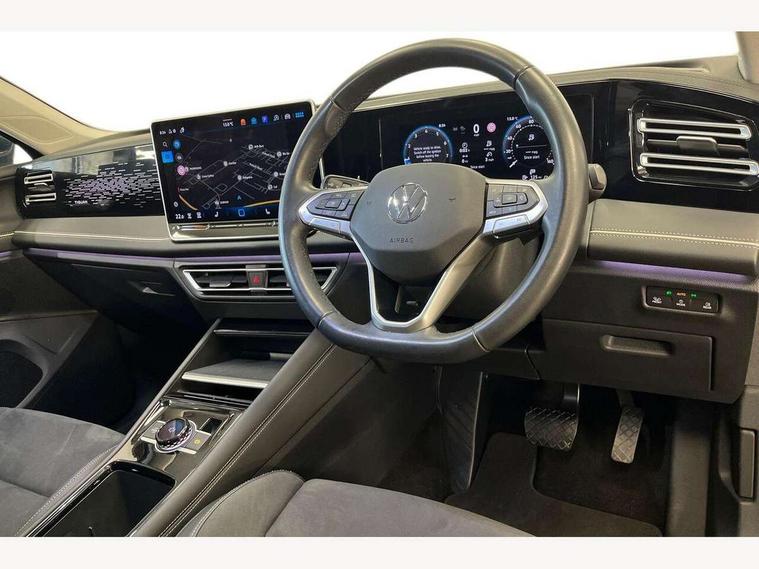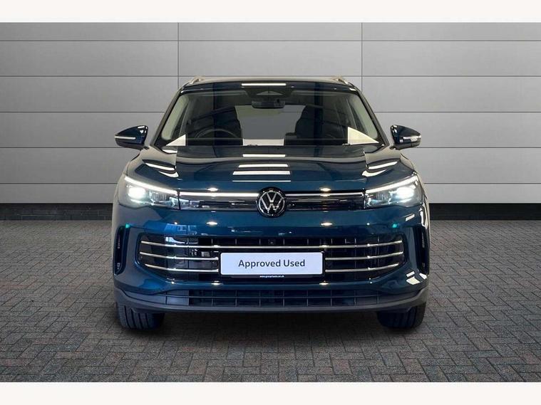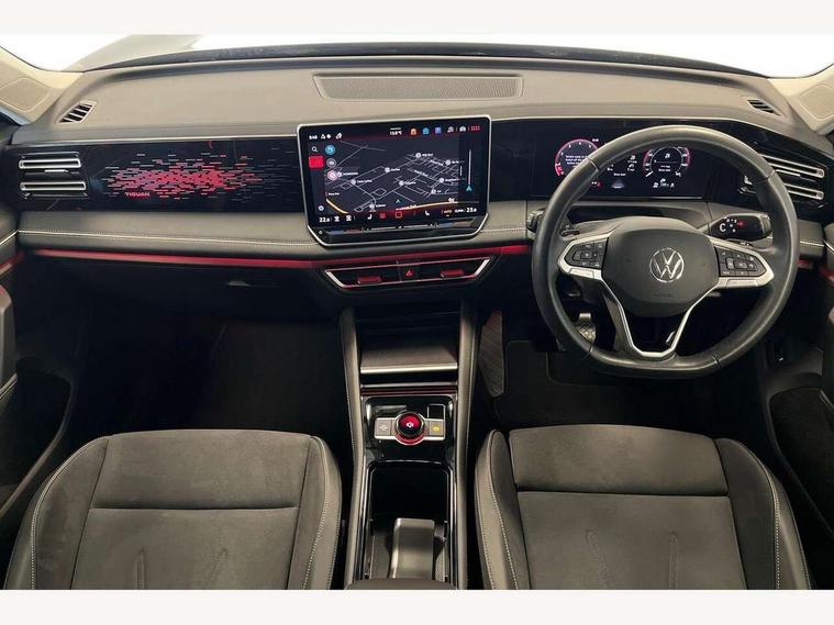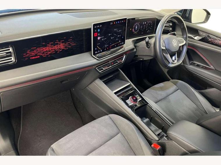 Adaptive cruise control (ACC), Advanced driver attention and drowsiness monitor, Bluetooth mobile phone interface, Comfort drive travel assist, lane keeping system, lane assist and emergency assist, Digital Cockpit Pro - 10.25" high resolution dash display screen with customisable menus and information, Dynamic road sign display, E-Sim card for online connectivity, eCall emergency call service, Front Assist - Autonomous emergency braking with pedestrian and cyclist monitoring, Lane change system, Side assist, Rear traffic alert and Exit warning system, Multifunction front facing camera, Oncoming vehicle braking when turning including swerve support, Park assistance plus with front and rear parking sensors, Power assisted steering with speed sensitive, Start/stop system with regenerative braking, Warning signal and warning light for front and rear seatbelts not fastened, Wireless App-Connect, Front wheel drive, Digital radio reception (DAB), Diversity antenna for FM reception, Ambient lighting with logo projection, Auto dimming interior rear view mirror, Automatic headlight control system, Body colored bumpers in R-Line style, Body coloured door handles, Body-coloured exterior mirror housings, Chrome moldings on the side windows, Coming/leaving home lighting function, Heat insulating glass in side and rear windows, Heated rear window, Heated windscreen washer jets, High level 3rd brake light, Illuminated door handle recesses, Illuminated lightline between headlamps, Laminated safety glass from B-pillar backwards 90% tinted, Laminated safety glass windshield, Rain sensor windscreen wipers, Rear fog light on one side, reversing light on both sides, Rear side wing doors, Rear wiper, Silver roof rails, 12V outlet in center console rear and in luggage compartment, 12V socket in centre console, 3 bench rear seats in 2nd row, Air care climatronic 3 zone air conditioning system with rear air conditioning control panel, Carpet mats, front and rear, Centre console with illuminated storage compartment with sliding cover and two drinks holders, Ceramique headlining, Chrome elements on the mirror switch and power window switches and door pulls, Door and side trim panel with leatherette insert, Door sill protectors, Front centre armrest, Interior ambient lighting with 30 colour options, ISOFIX anchors for child seats on outer rear seats and front passenger seat compatible with i-Size, Mechanical rear seat release, Power adjustable lumbar support in front, Rear bench seat, split folding, longitudinally movable and folding with load-through hatch and centre armrest, Safety optimised front head restraints, Single front passenger seat, Sports comfort seats in front, Sun visors with illuminated vanity mirrors, Three rear head restraints, Variable luggage compartment floor, Comfort package incl. Memory feature for Park assist and Safelock - Tiguan, Driver assistance package - Tiguan, 3 point seat belt for centre rear seats, 3 Point seat belts in front with pretensioners, 3 point seatbelts in outer rear with ECE label, Driver and front passenger airbag with front passenger airbag deactivation, Electronic parking brake with auto hold, Front and rear curtain airbags, Front and rear side airbags, Front centre airbag, Front disc brakes, Manual child proof rear door locks, Rear disc brakes, Two tone horn, Warning triangle, Anti theft wheel bolts, Decorative inserts Cross in dash and front door panels, Interior door handle in matte chrome, Soul instrument panel,