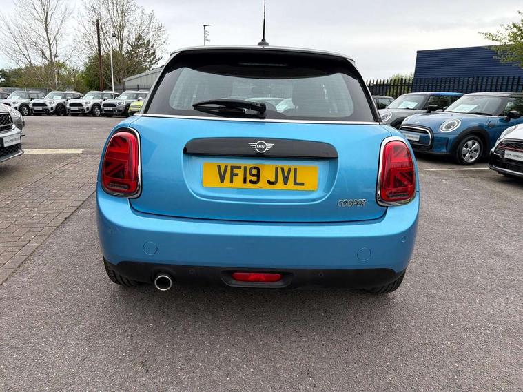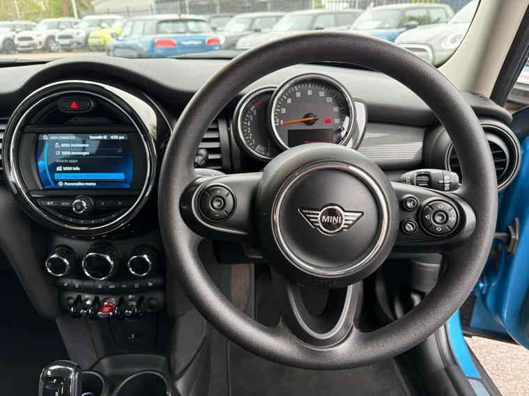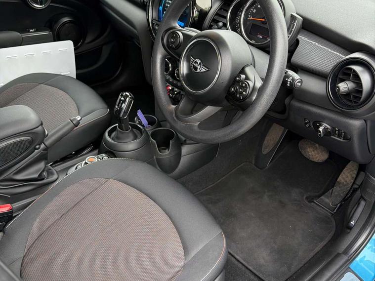 Compatible mobile phone bluetooth with audio streaming, Instrument cluster, Mini E-call, MINI TeleServices, On board computer, Service interval indicator, Steptronic transmission with double clutch, 6.5" touchscreen with LED ring, FM tuner and DAB digital radio, Automatic headlight activation switch, Body colour fuel filler cap, Chrome border high gloss black slats radiator grille, Dynamic brake lights, Electric front+rear windows, Heated rear window, Heated windscreen washer jets, LED headlight with closed ring and daytime driving lights, Left exhaust tailpipe with chrome finisher, Metal door sill strips with MINI imprint, Model logo Cooper on right of tailgate, Rain sensor window wipers, Rear fog lights, Rear LED lights with union jack design, Rear window wiper, Side scuttle panel with integrated indicator, Sun/heat protection glass, White indicator lenses, 12V Accessory socket in centre console, 4 lashing eyes in luggage compartment, 60/40 split folding rear seat, Chrome interior highlights, Colour line - Carbon black, Cupholders, Front and rear isofix with front passenger airbag deactivation, Glove compartment, Height and length steering column adjustment, Interior lighting with 12 basic colours selectable via toggle switch in roof, Leather gearshift lever and handbrake gaiters, LED reading lights, vanity mirror lights, front foot well light and spotlight on front seats, Manual air conditioning, Mechanical seat adjustment, driver seat height adjust, forward/back and front seats backrest, Mini logo projection on floor from drivers exterior mirror, Multifunction steering wheel, Satellite grey headlining, Storage compartments in doors, Sunvisors with vanity mirrors, 3 point seatbelts on all five seats, 6 Airbags - front, side, head and seat belt tensioners, Anti-lock braking system (ABS), DSC - Dynamic Stability Control, Front and rear disc brakes, Hill start assist, Single tone fanfare horn, Tyre pressure monitoring system, Alarm system with tilt sensor, monitoring doors, bonnet interior and tailgate, Electronic vehicle immobiliser, Start/stop toggle with keyless go, Tool kit,