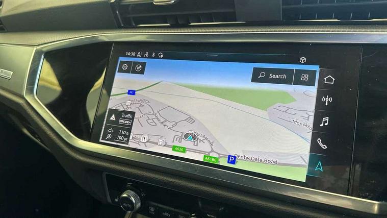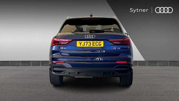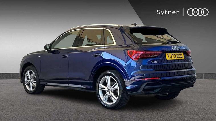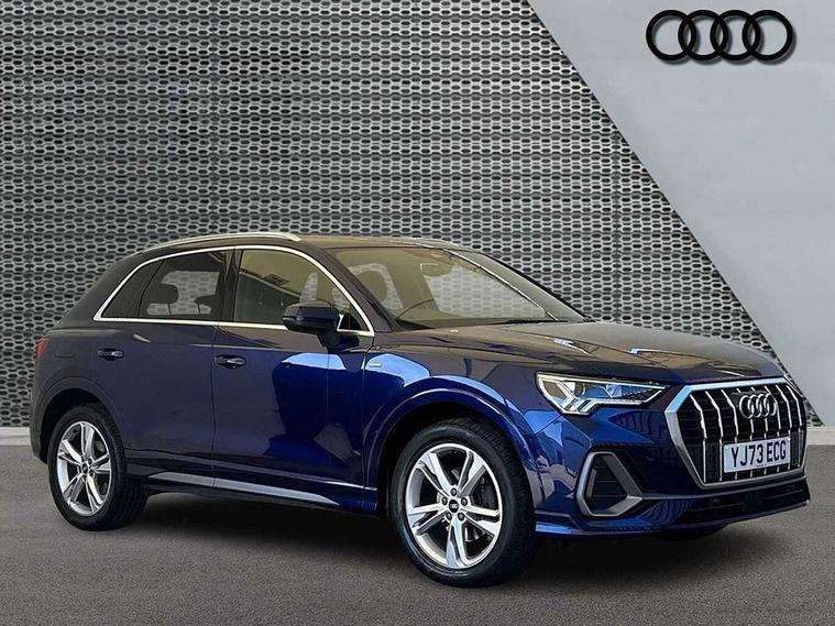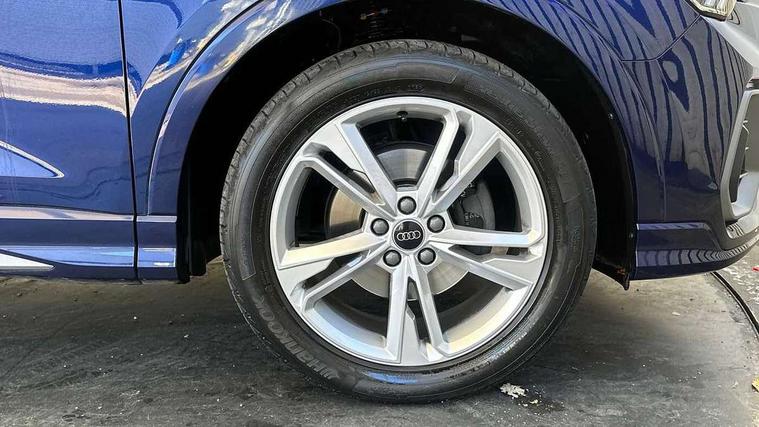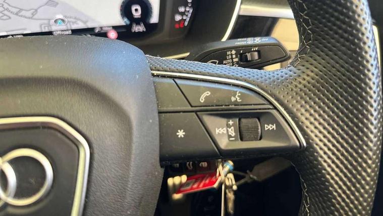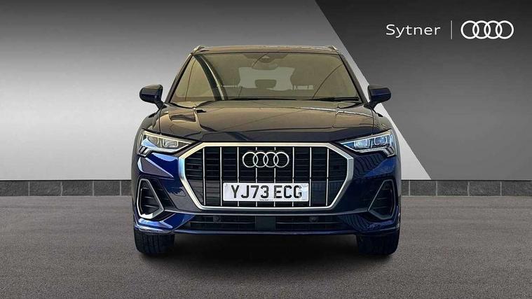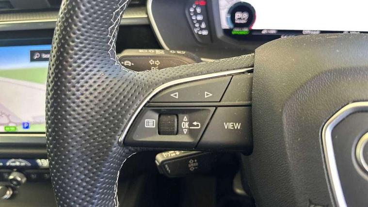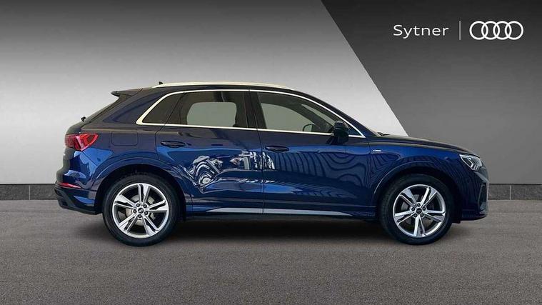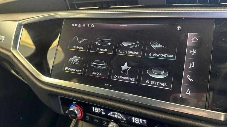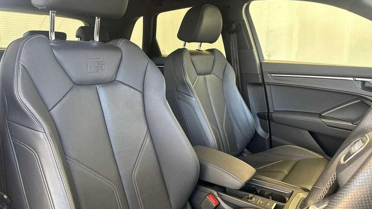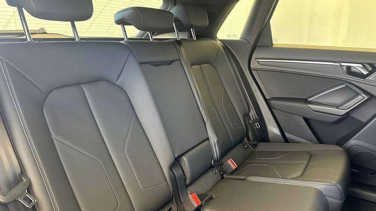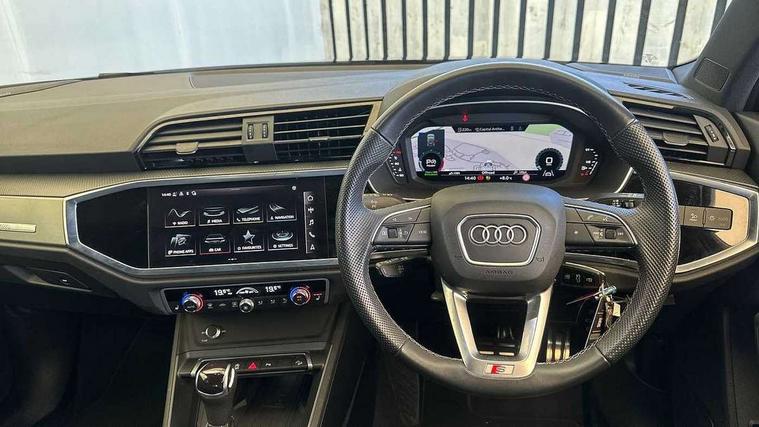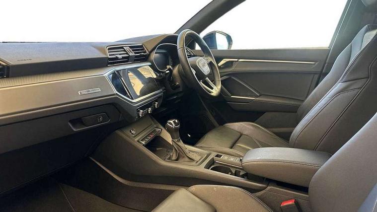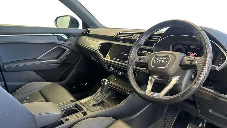 Amazon alexa Integration, Audi drive select, Audi lane departure warning, Audi Virtual Cockpit - 10.25" display, Bluetooth interface, Camera based traffic sign recognition, Legal emergency call, MMI Navigation Plus with high resolution 10.1 inch touchscreen colour display, Power operated tailgate, Progressive steering, Service interval indicator, Smartphone interface includes wireless Apple carplay/Android Auto, Start stop system with recuperation, Voice control system with natural language interaction, Diesel particulate filter, Sports suspension, 2 USB-C ports with charge and data functions, 6 passive loudspeakers, DAB digital radio module, Acoustic windscreen, Aluminium roof rails, Aluminium window trim, Anthracite black radiator grille, Auto dimming frameless rear view mirror, Body colour front spoiler blade, Body coloured bumpers, Electrically folding, adjustable and heated door mirrors with integrated LED side indicators and kerb view function for passenger side, Front and rear electric windows, Front fog lights, Front side air inlets in matt platinum grey, Grille vertical bars in aluminium silver/Matt, High gloss black finish B and C pillars, LED Dynamic rear indicators, LED headlights with LED daytime running lights, LED rear lights, LED third brake light, Privacy glass dark tinted rear and rear-side windows (from B-pillar backwards), Rain and light sensors, Rear diffuser grille in grained matt black, Rear diffuser strip in matt anthracite black, Rear side wing doors, Rear wiper, S line badges on front wings, S Line front and rear bumpers, Side skirt insert in matt Platinium grey, Variable front intermittent wipers, 12V socket in rear centre console, 3 seat bench in 2nd row, 3 spoke leather multifunction steering wheel features S badging and grips in perforated leather with contrast stitching, 40:20:40 folding with manual adjustment for 60:40 forwards/backwards position and backrest angle, Adjustable rear seat bench/backrest with centre armrest and cupholder, Black cloth headlining, Dual zone electronic climate control, Front and rear black floor mats with contrast stitching in rock grey, Front and rear headrests, Front and rear roof module including reading lights, Front centre armrest, Glove compartment lighting, Height and reach adjustable steering wheel, Illuminated door sill trims with S logo, ISOFIX child seat mounting for front passenger with airbag deactivation and outer rear seat including top tether attachment point for outer rear seats, Luggage compartment light, Manual front seats with height adjustment, Perforated leather gearknob, Single front passenger seat, Stainless steel luggage compartment sill finisher, Stainless steel pedals, Ambient lighting pack - Q3, Non smoking pack - Q3, 3x3 point rear seatbelts, 6 airbags - Driver, front passenger, curtain and side windows, Audi pre-sense front with pedestrain and cyclist recognition, Electrically operated child locks on rear doors, Electromechanical parking brake, Electronic stabilisation control including ABS, ASR and EDL, Front seatbelt reminder, Hill descent control, Hill hold assist, Pre sense basic, Seatbelt monitoring, Tyre pressure warning, Warning triangle and first aid kit, Anti theft alarm, Anti theft wheel bolts, Immobiliser, Remote central locking, Aluminium look interior elements, Dark matt brushed aluminium inlay, Detail dashboard around MMI touch colour display in glass look, black with surround in aluminium look, Leatherette door armrest,