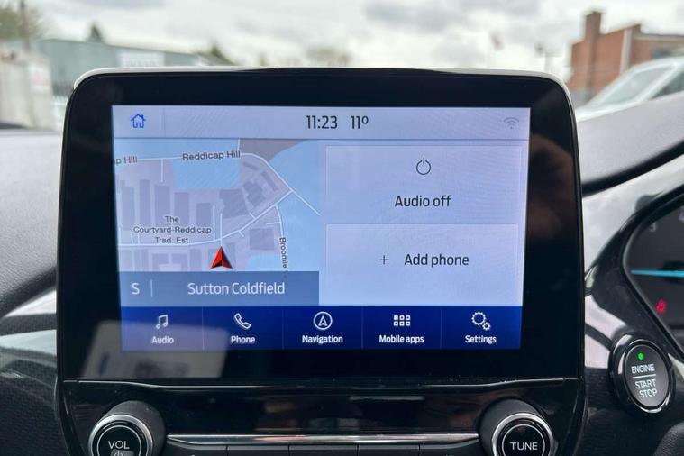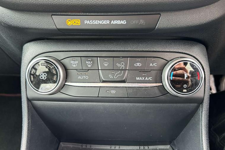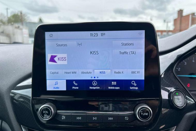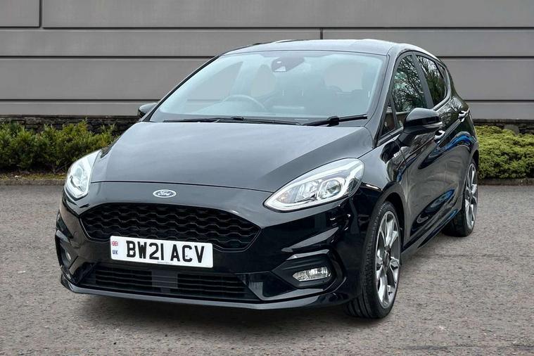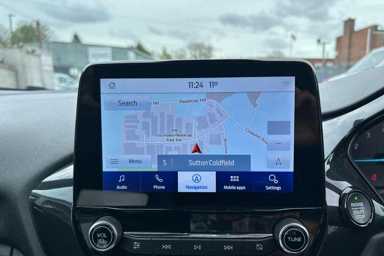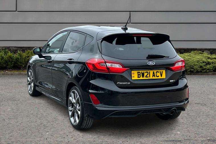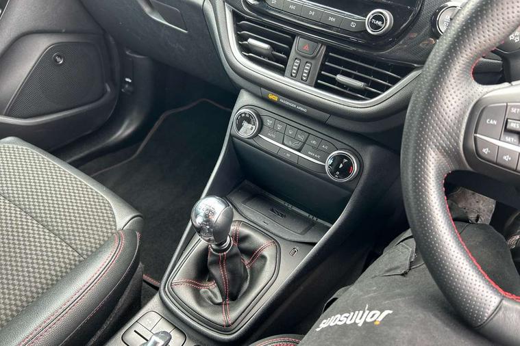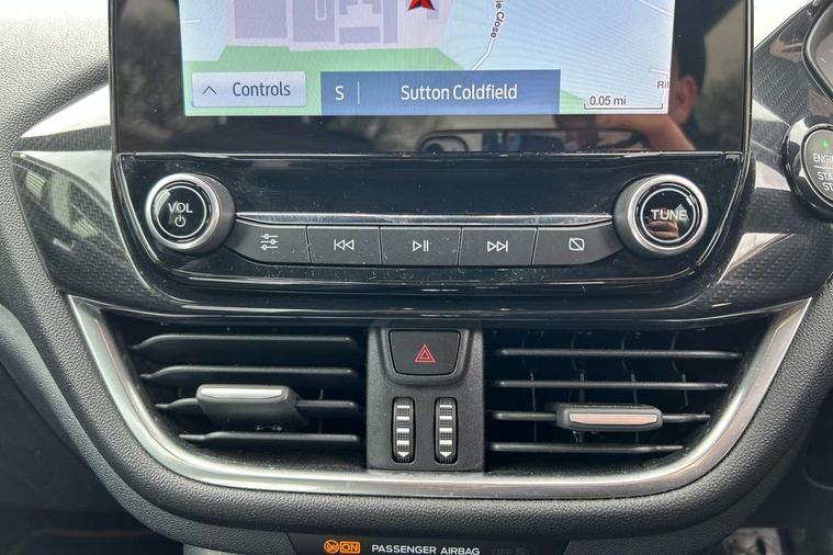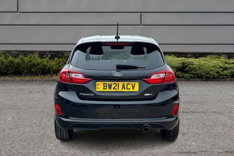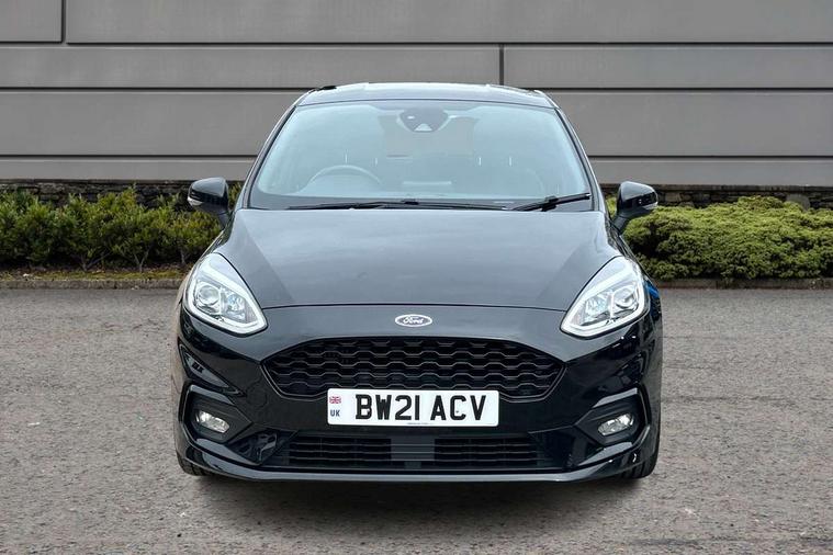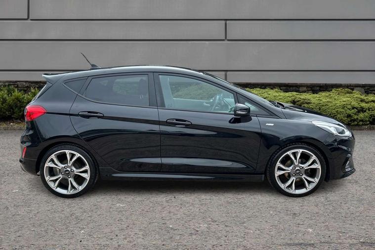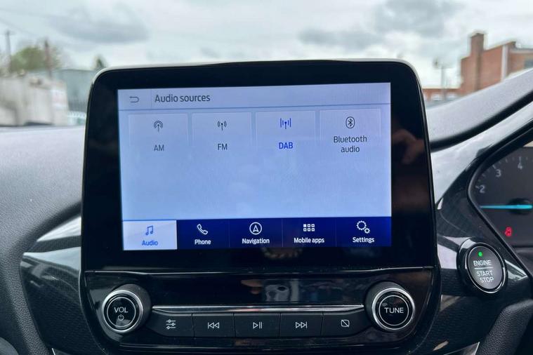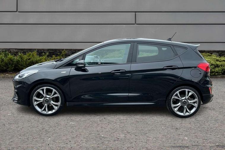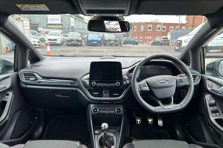 4.2" TFT instrument cluster screen, Bluetooth system, Electric power steering, Ford easy fuel, Rear parking distance sensors, Selectable drive modes (Normal, Sport, Track), Traffic sign recognition, Trip computer, Sports suspension, 2 USB ports, Auxiliary input socket, B&O Premium audio system with 8" touchscreen, 10 speakers, 360 degree sound system, Ford SYNC 3 navigation system and Ford pass connect, DAB Digital radio, Steering wheel mounted controls, Auto high beam, Body colour bumpers, Body colour door handles, Body colour large rear spoiler, Body coloured electrically operated and heated door mirrors with side indicators, Cornering front fog lights, Electric front windows/one touch facility, Electric rear windows, LED Night signature to rear lights, Power foldable door mirrors with puddle lights, Quickclear heated windscreen, Rain sensing wipers and auto dimming rear view mirror, Rear privacy glass, Rear wiper, Unique ST-Line upper grille & full bodystyling kit with ST-Line wing badges, 3 spoke flat bottomed leather steering wheel, 60/40 split folding rear seat, Adjustable head restraints, Black headlining, Boot carpet, Centre console with opening armrest, 2x cupholders, 12v and USB, Chrome inner door handles, Drivers and Passenger lumbar support, EATC - Electronic Auto Temperature control, Footwell illumination, Front floor mats in velour, Front map reading lights, Front seat and rear pockets, Height adjustable passenger seat, Illuminated glovebox, Leather gaiter, LED ambient lighting, Load area light, Manual 4-way driver seat adjust, Overhead console with sunglasses holder, Pollen filter, Rake/reach adjustable steering wheel, Sensico wrapped steering wheel, Sports front seats, NCAP Pack - Fiesta, ST-Line X Trim Pack - Fiesta, 3 point seatbelts on all rear seats, ABS+EBA, Curtain airbags, Driver and passenger airbags, Drivers knee airbag, Electronic stability control with hill start assist, Front passenger airbag deactivation, Front side airbags, Seatbelt warning, Two tone horn, Tyre pressure monitoring system, Ford keyfree system with Keyless entry and keyless start, MyKey system, Remote central locking & engine immobiliser, Thatcham Cat.1 alarm, 18" 5 spoke alloy wheels with rock metallic machined finish,
