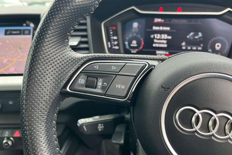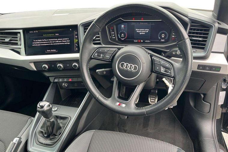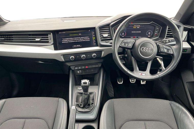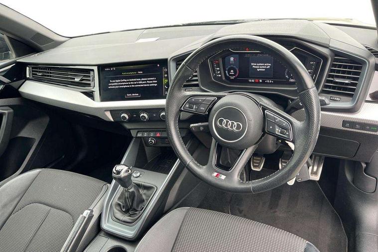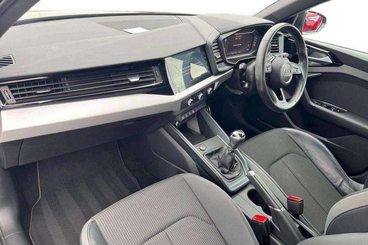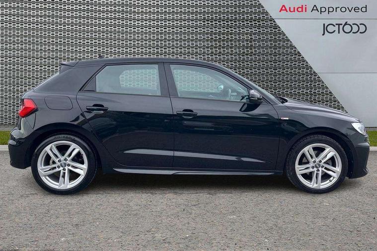 10.25" Digital instrument cluster display classis style instrument dials + speed, odometer, time, outside temperature, telephone menu + fuel level warning, Audi connect safety emergency and service including E-call, Audi drive select - power steering assistance + engine, Audi smartphone interface with connect compatible smartphone via USB directly MMI display + Nav, music, third party apps controlled via MMI controller, Automatic start/stop system, Bluetooth interface, Cruise control, Driver's information system, Electromechanical power steering, Lane departure warning system, Rear parking sensor, Service interval indicator, Speed limiter, Voice control system, Washer fluid level indicator, Sports suspension, 1 x SDXC card reader, 1 x USB type C and 1 USB type A charging points, DAB Digital radio, MMI radio plus with 8.8" colour MMI display screen and MMI touch, Auto dimming rear view mirror, Body coloured door mirrors, Door sills with aluminium inlays and S Line logo, Electric front and rear windows, Electrically adjustable, heated, folding door mirrors with integrated LED side indicator, Front side air inlets in grained matt black and C frame in titanium black, Heat insulating glass windscreen and side windows, Heated rear windscreen, LED headlights with LED rear lights + dynamic rear indicators + headlight adjustment and high beam, turning light + LED daytime running lights, Radiator grille and rear diffuser in matt titanium black, Radiator protective grille frame in matt aluminium silver, Rain and light sensors, Rear fog lights, Rear wiper, S line badges on front wings, Side front spoiler lips in grained matt black, 12V socket in centre console with two cup holders, 3 rear seats with headrests, 40:60 Split folding rear seat or folded fully, Black cloth headlining, Driver and passenger seat with manual height adjust with forward and backwards adjustment, Front and rear black floor mats with contrast stitching in fine silver, Front head restraints, Height and reach adjustable steering wheel, ISOFIX child seat mounting for front passenger and outer rear seats including top tether attachment point of outer rear seats, Leather gear knob with aluminium trim, Luggage compartment light with front and rear reading lights, Manually adjustable lumbar support in front seats, Stainless steel pedals, LED interior lighting pack - A1, Luggage compartment pack - A1, S line exterior styling pack - A1 Sportback, 3x3 point rear seatbelts, Audi pre-sense front with pedestrain and cyclist recognition, Brake assist function, Driver and front passenger airbag with front side and head airbags, Electronic Stability Control including ABS, EBD, ASR and EDL, Front and rear seatbelt reminder, Front passenger airbag deactivation switch, Hill hold assist, Seatbelt height adjustment for front seats, Seatbelt monitoring, Tyre pressure warning light, Warning triangle and first aid kit, Anti theft alarm, Anti theft wheel bolts and loose wheel warning, Immobiliser, Remote central locking with 2 foldaway keys, Aluminium trim for control switches, air vents and digital instrument cluster, Silver grey inlays polygon structure in diamond paint finish, Structured grey accent areas including air vents, door handle recesses and centre console in quartz paint finish,