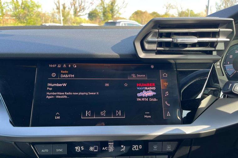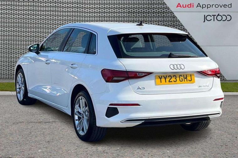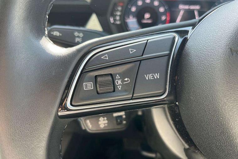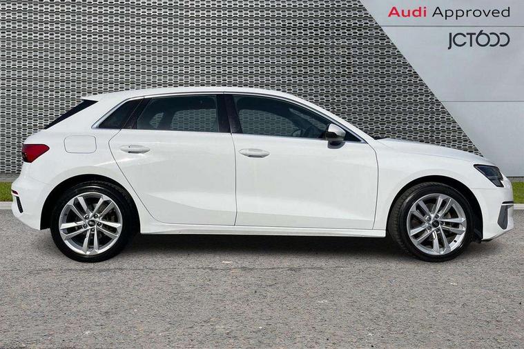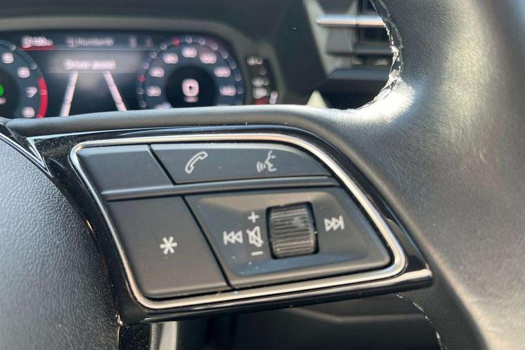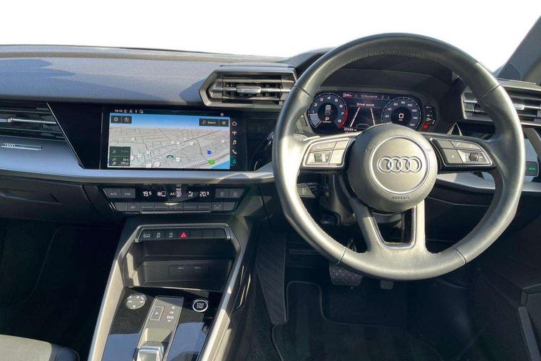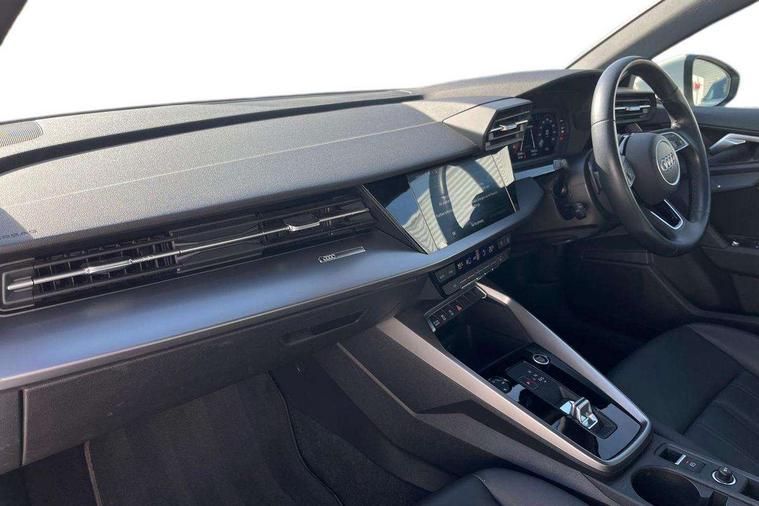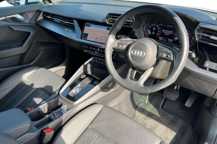 Audi drive select (Auto, Comfort, Dynamic, Efficiency and Individual), Audi smartphone interface, Audi Virtual Cockpit - 10.25" digital and colour instrument cluster, Automatic start/stop system with recuperation, Bluetooth interface, Collision avoidance assistant, e-Call (emergency call), Electromechanical power speed sensitive steering, Lane departure warning system, MMI Navigation Plus with high resolution 10.1" colour touch screen display, Service indicator, Trip computer, Voice control system with natural language interaction, Standard suspension, 2xUSB-C connection with data and charging functions, 6 passive loudspeakers, DAB Digital radio, 3rd brake light, Acoustic glass windscreen, Aluminium window trim, Auto dimming frameless rear view mirror, Body colour exterior mirrors, Body colour roof spoiler, Electrically adjustable/heated/folding/auto dimming door mirrors with integrated LED indications + kerb view function for passenger side, Front electric windows, LED daytime running lights, LED headlights and halogen rear lights, Light and rain sensors, Rear electric windows, Rear side wing doors, Rear window, rear door windows and rear side windows in clear glass, Rear wiper, 12V socket and storage compartment in front centre console, 3 seat bench in 2nd row, 3 spoke leather multifunction steering wheel with paddle shift, 40/20/40 split folding rear seat bench with cupholder, Dual zone electronic climate control, Front and rear centre armrest, Front and rear headrests, Front door sill trims with aluminium inlay, Front/rear floor mats, Height and reach adjustable steering wheel, Interior lighting - Front and rear roof module including reading lights, glove compartment light and right hand side, Luggage compartment floor covering, Manual boot compartment lid, Manually adjustable front seats, Seat side bolsters, Single front passenger seat, Steel grey cloth headlining, Twin leather upholstery, Aluminium interior elements pack - A3 Sportback, Sport styling pack - A3 Sportback, 3x3 point rear seat belts, Audi pre sense front, Driver and front passenger airbag with passenger airbag deactivation, Electronic Stabilisation Control (ESC) including ABS, ASR and EDL, First aid kit with warning triangle and 2 safety vests, Front side airbags with head airbags and interaction airbag, Pre-sense front with pedestrian and cyclist detection, Seatbelt monitoring, Tyre pressure loss indicator, Anti theft alarm, Anti-theft wheel bolts, Electronically operated child lock, Immobiliser, Remote control central locking, Inlays with silk effect paint in platinum grey,