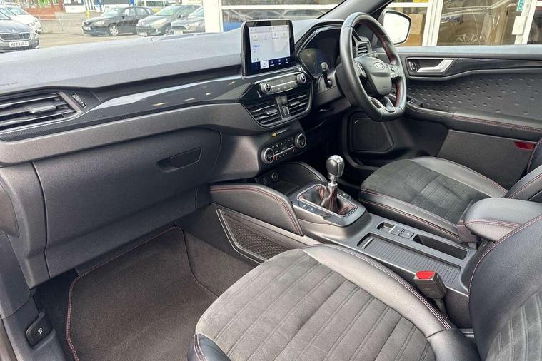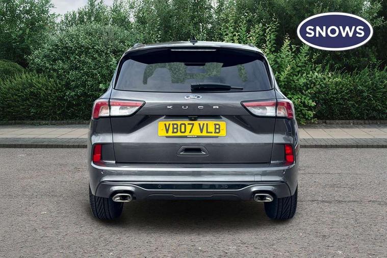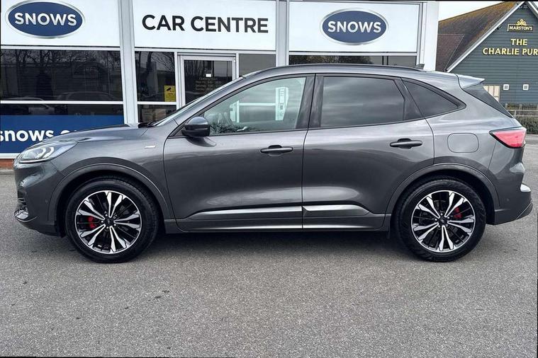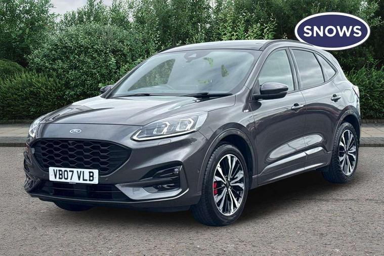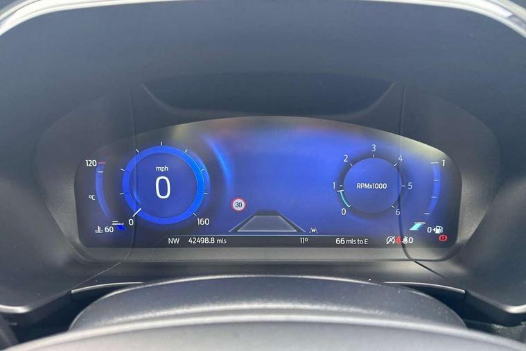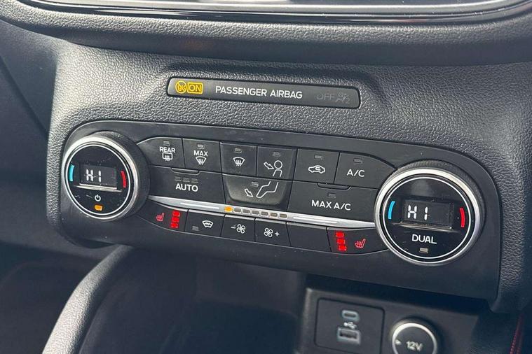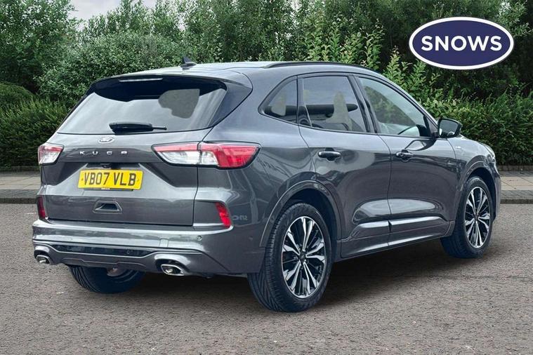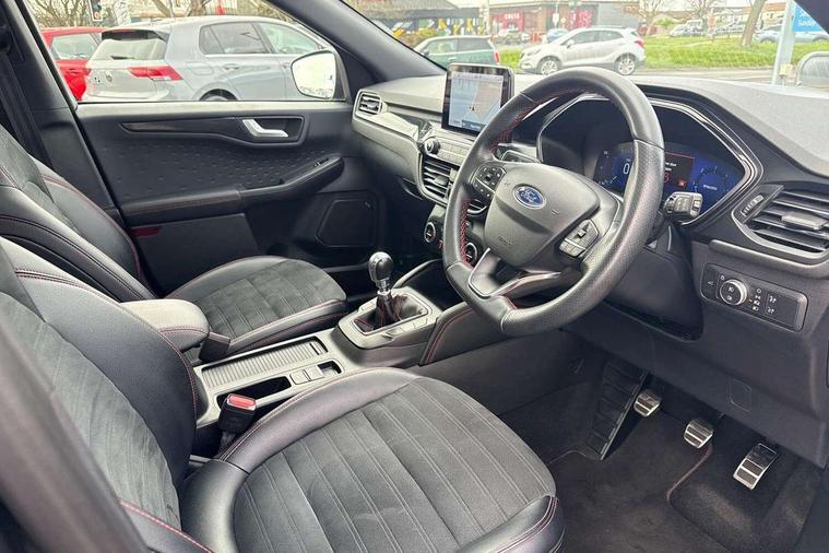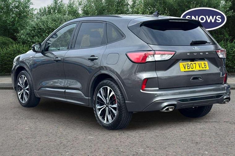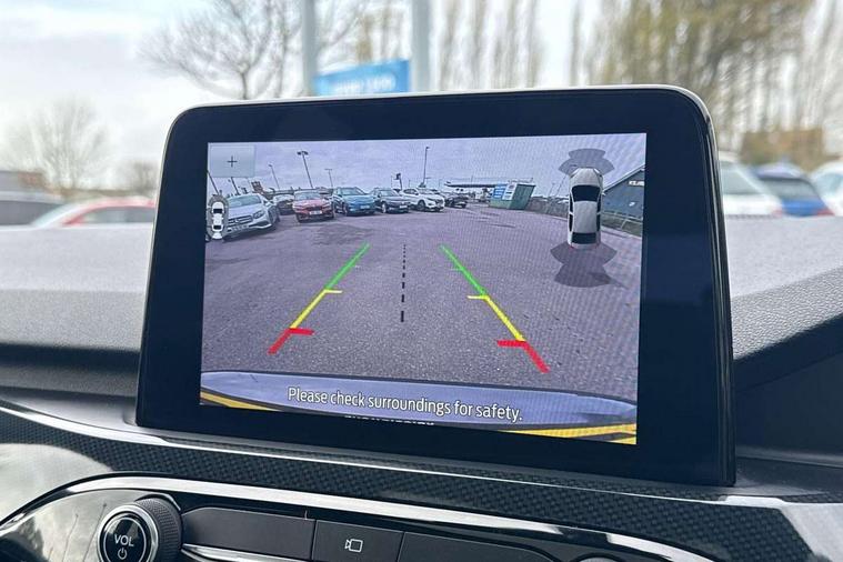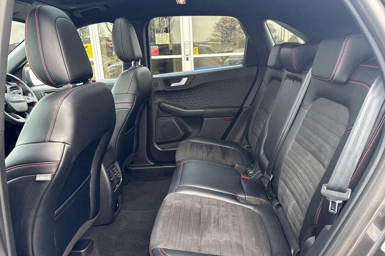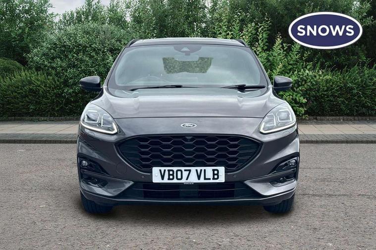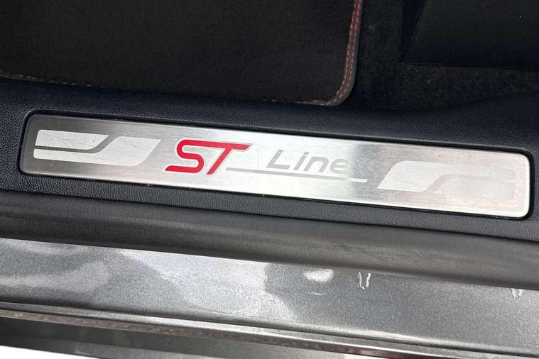Adaptive cruise control (ACC) with traffic sign recognition, BLIS (Blind spot information system), Driver impairment monitor, Eco coaching, Enhanced parking assist system, Ford easy fuel, Front and rear parking sensors, Front and rear view camera, Hands free power tailgate, Head up Display, Intelligent speed assist, Lane keeping aid with lane departure warning, Mobile phone wireless charging pad, Power assist steering, Selectable drive modes, SYNC 3 with navigation, DAB audio, Sports suspension, Auto dimming rear view mirror, Auto headlamps with high and low beam, Auto wipers, Black roof rails, Door edge guards, Front LED fog lights with cornering function, Full LED quad projector headlamps with glare free, Headlamp washer jets, Large rear spoiler, LED daytime running lights, LED rear lights, Power folding heated door mirrors with puddle lights, Power front/rear windows with global close, Power opening panoramic roof, Privacy glass, Quickclear heated windscreen, ST Line badges in exterior and interior, ST Line body styling kit with unique front and rear fascia and bumper, rear painted diffuser, front painted skid plates, dark mesh upper grille, ST Line front scuff plates, Twin exhausts, 10 way power adjustable drivers seat with memory function, 230V power convertor in second row, 2nd row sliding seats, 4 way manually adjustable passenger seat with height, reach, tilt, backrest and headrest, Alloy pedals, Ambient lighting, Centre console with electronic parking brake, Dark headlining and pillars, Dual electronic automatic temperature control, Flat bottomed leather steering wheel, Front and rear head restraints, Heated passenger and driver seats, Partial leather manual track seat, Salerno partial leather upholstery, Sports seats, ST Line front and rear floor mats, Unique ST Line leather gear knob, B&O with large instrument cluster pack - Kuga, 3x3 point rear seatbelts, Airbags - front driver/passenger, front and rear curtain, Drivers knee airbag, Electronic stability control (ESC) and ABS, Ford MyKey Gen 2 safety system, Hill launch assist, Post collision braking, Powered child proof rear door locks with global closing, Pre collision assist with autonomous emergency braking, Red brake calipers, Tyre pressure monitoring system, Engine immobiliser, Keyless entry, Keyless start with 'Ford Power' starter button, Locking wheel nuts, Remote powered central double locking doors, Thatcham category 1 alarm,