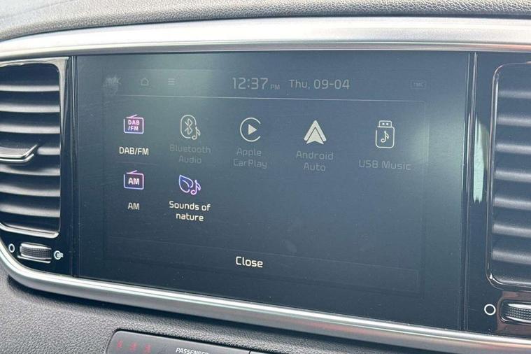 360 degree surround camera, 4.2" supervision colour cluster display, 8" touchscreen satellite navigation with European mapping and traffic messaging channel, Android auto with voice control, Apple car play with voice control, Blind spot collision warning, Bluetooth connectivity with voice control, Cruise control + speed limiter, Digital clock, Driver attention warning, Emergency stop signalling system, Forward collision avoidance assist, Front parking sensor, Kia connected services featuring TomTom live, Lane keep assist, Rear parking sensor, Speed limit information, Speed sensitive power steering, Trip computer, Windscreen washer level indicator, Intelligent Stop and Go, Bluetooth audio streaming, DAB Radio with MP3, JBL Premium sound system with 8 speakers, external amp, subwoofer and front centre speaker, Steering wheel mounted audio controls, USB/iPod/auxiliary input connections, All round electric windows with drivers auto up/down function, Auto dimming rear view mirror, Automatic defog system, Automatic headlights, Black wheel arch body mouldings and side sills with chrome insert, Body colour door handles with chrome inserts, Body colour door mirrors, Chrome front bumper insert, Chrome grille surround, Chrome window surround, Cornering light, Electrically adjustable/heated/folding door mirrors with LED indicators, Front fog lights, High beam assist, High gloss black diamond mesh radiator grille, LED Bi-Function headlights, LED daytime running lights, LED rear lights, Metallic paint, Privacy glass (rear side windows and rear screen), Rain sensing front wipers, Rear spoiler, Rear wiper, Roof rails, Shark fin antenna, Silver painted front and rear skid plates, Speed sensitive front wipers, Tinted glass, Trailer stability assist, Welcome and follow-me home light functionality, Wide view drivers door mirror, Windscreen wiper de-icer, 10 way driver/8 way passenger electrically power adjustable seats, 12V power in front and rear centre console, 3 x passenger assist grips, 60/40 split folding rear seat, Air filter, All-round height adjustable headrests, Centre cabin light, Centre console storage box, Cloth/leather upholstery, Door armrest in leather, Driver and front passenger side sunvisors with illuminated vanity mirrors, Drivers seat power lumbar support, Dual zone automatic air conditioning, Front and rear door storage, Front cabin LED map light with sunglasses case, Front door courtesy reflectors, Front seat and rear pockets, Front/rear centre armrests, Gear shift indicator, Glovebox illumination, Heated front and outer rear seats, Heated steering wheel, Illuminated glovebox, Interior door lock/unlock function, ISOFIX Child seat top tethers and anchor fixings, Leather steering wheel, Leather trimmed gearshift, Light grey headlining, Luggage area light, Luggage area load cover, Luggage net with hooks, Rear centre armrest with cupholder, Rear coat hooks, Rear headrests, Satin chrome interior door handles, Stainless Steel Scuff Plates, Tilt/telescopic adjustable steering wheel, Ventilation ducts to rear compartment, 3x3 point rear seatbelts, Active front headrests, All round 3-point seatbelts, Anti-lock braking system with electronic brakeforce distribution, Dual front side airbags, Electronic parking brake, Electronic stability control with downhill brake control, ESP + traction control, Front passenger airbag cut-off switch, Front seatbelt pretensioners + load limiters, Height adjustable front seatbelts, Hill start assist control (HAC), Impact sensing auto door unlocking, Rear door child safety locks, Twin curtain airbags with roll over sensor, Twin front airbags, Tyre pressure monitoring system, Advanced anti-theft system including immobiliser and alarm, Door deadlocks, Engine Start/Stop Button with Smart Entry System, Locking wheel nuts, Speed sensitive auto door locking, Visible vehicle identification number, High gloss black centre fascia, 17" Alloy wheels, Tyre mobility system,