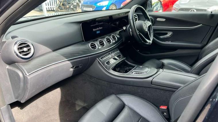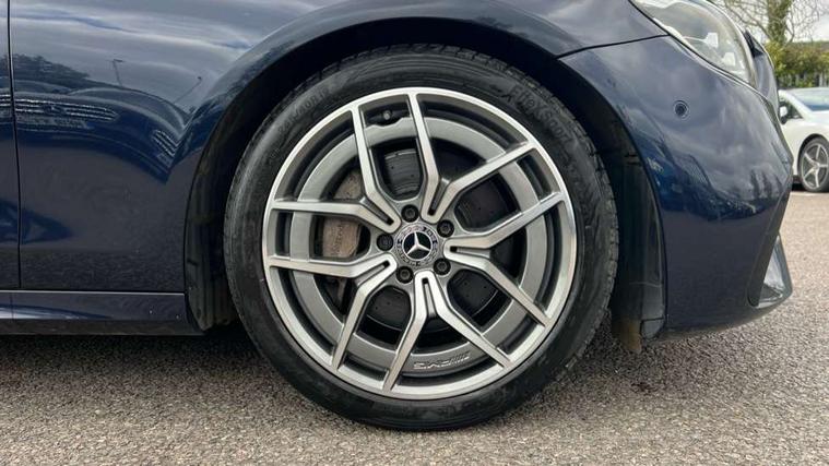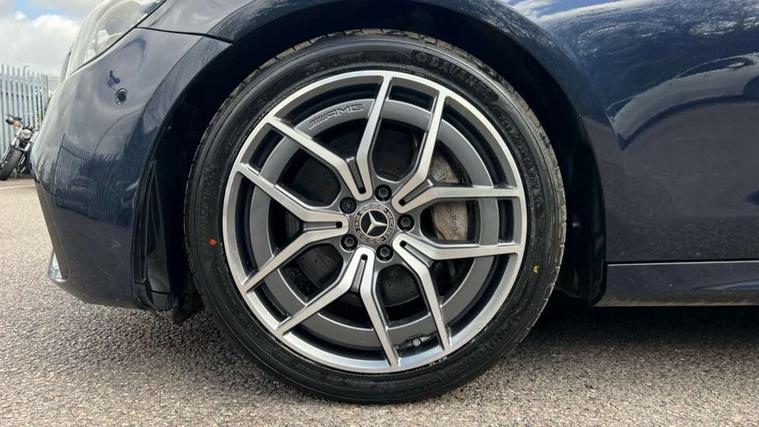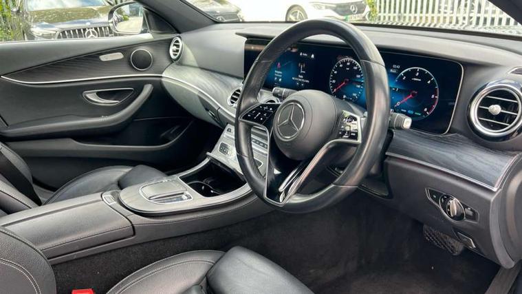 Attention assist, Blind spot assist, Brake wear warning display, Cockpit display 10.25" widescreen digital instrument cluster, Cruise control with variable speed limiter, Direct steer speed sensitive steering, DYNAMIC SELECT with a choice of driving modes (ECO, Comfort, Sport, Sport+ and Individual), ECO start/stop function, Emergency call service, High resolution 10.25" multimedia colour display, MBUX voice control activated by keywords "Hey Mercedes", Mercedes connect me, Outside temperature display, Remote boot release, Service indicator (ASSYST), Smartphone integration via Android Auto/Apple CarPlay, Media Interface, USB and Bluetooth interface, Status display for rear seat belts in instrument cluster, Touchpad without controller, Traffic sign assist, Trip computer in multifunction display showing current fuel consumption, Wireless charging, 25 litre AdBlue tank, 66 litre fuel tank, 9G TRONIC 9 speed automatic transmission, Agility control sports suspension with selective damping system and lowered by 15mm, Diesel particulate filter, Incorrect fuelling protection, 2 USB ports in centre console, 2 USB ports in the rear, MBUX multimedia system with DAB digital radio and touchpad including satellite navigation, 3rd brake light, Adaptive brake lights, Aerial integrated in rear window, AMG bodystyling front and rear aprons in polished aluminium, Body colour door mirrors, Chrome pins diamond radiator grille, surround in high gloss black, single louvre in chrome with insert in high gloss black and integral star, Electric windows with one touch opening/closing and obstruction sensors, Electrically adjustable and heated door mirrors, Illuminated front door sill panels with Mercedes-Benz lettering, LED High Performance headlamps including integral LED daytime running lamps and adaptive highbeam assist, LED rear lights, Pre-installation for roof rail systems, Privacy glass Includes rear side windows and rear windscreen, Rain sensor with automatic headlight activation, Rear boot, Rear side wing doors, Tail lights, Top surround of side windows in polished aluminium, Visible twin pipe exhaust system integrated into bumper, 3 seat bench in 2nd row, 3 spoke multifunction flat bottom AMG steering wheel with chrome inserts and touch control buttons, trimmed in black nappa leather, 40:20:40 split folding rear bench seat, Artico man-made leather upper dashboard and beltlines with contrast stitching, Automatic child seat recognition sensor, Black door pins, Black roof lining, Central stowage compartment with 12 V socket in centre console, USB socket for use with Android Auto and Apple CarPlay, Courtesy lights in rear grab handles with reading light functionality, Floor mats with AMG lettering, Four way partially front electric seat adjustment, Front centre armrest with stowage compartment, Glasses compartment in overhead control panel, Glove compartment - lockable, air conditioned and illuminated, Head restraints for driver and front passenger (four-way adjustability) and in rear (two-way), Heated front seats, Interior lighting - 64 colour Ambient lighting, Leather upholstery, Seat occupancy sensor for front passenger seat, Single front passenger seat, Steering column manually adjustable for height and reach, Steering wheel multifunction with gearshift paddles, Steering wheel touch control buttons for audio and onboard settings, Sunvisors with illuminated vanity mirrors, THERMOTRONIC automatic climate control system with 3 climate zones, Mirror pack - E Class, Parking package including 360 degree camera - E Class, Seat comfort pack - E Class, Stowage pack - E Class, 3x3 point rear seatbelts, Active bonnet pedestrian safety measure which detects an impact and raises bonnet, Active brake assist, Adaptive brake system with HOLD function and brake drying in the wet, Airbags - sidebag for driver and front passenger with combined thorax/pelvis bag, Anti-lock braking system (ABS), Childproof locks manually operated for rear doors and electrically operated for rear power windows, Driver and adaptive front passenger airbags, Drivers knee airbag, Electronic parking brake, Electronic Stability Programme, Hill start assist, ISOFIX child seat attachment points two outer rear seats, Perforated brake discs with Mercedes Benz lettering, Pre-Safe anticipatory safety system, Tyre pressure monitoring system, Warning triangle and first aid kit, Window airbags, Alarm system/interior protection/immobiliser, Central locking with interior switch, automatic locking and crash sensor with emergency opening function, Chrome surround in electric key, Keyless entry go starting function, Open pore black ash wood trim and centre console in black open pored ash wood, 19" AMG 5 twin spoke light alloy wheels painted in tantalite grey with high sheen finish, Summer tyres, TIREFIT with tyre inflation compressor,