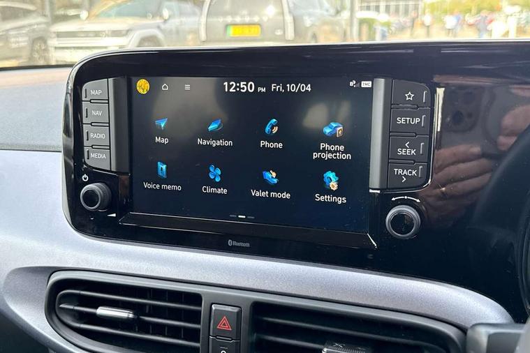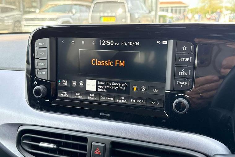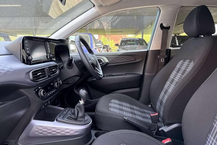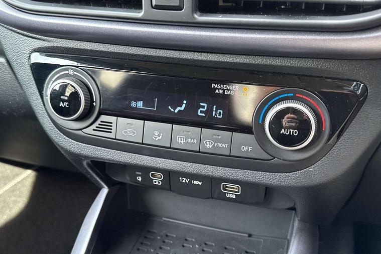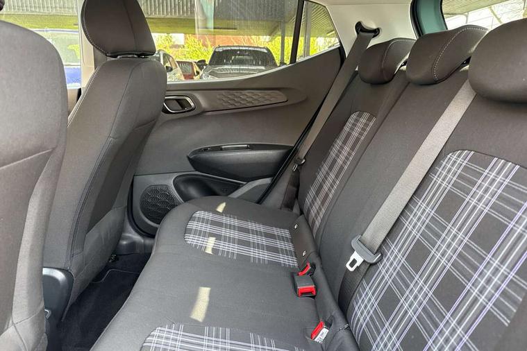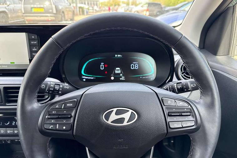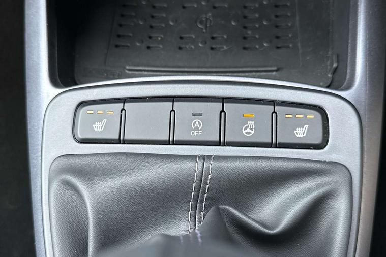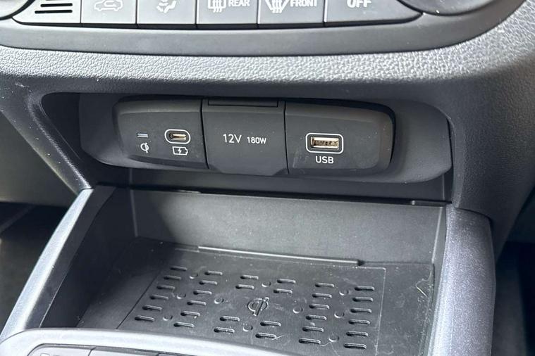 Apple car play/Android Auto, Bluelink mobile remote connectivity, Bluetooth connectivity with voice recognition, Cruise control, Driver attention alert system, eCall emergency call system, Forward Collision-Avoidance Assist (FCA) - Pedestrian/Cyclist, Front USB-C charging and USB-A data, Full-width 4.2" LCD instrument cluster, Intelligent speed limit assist, Lane departure warning system with lane keep assist - LKAS, Lane follow assist, PAS, Rear parking sensors, Rear view camera with guidelines, Roadside assistance, Start/Stop function, Tailgate, Trip computer, Wireless charging pad, 2 front/2 rear speakers, Rear USB-C device charger, Steering wheel audio, phone and cruise controls, 1 speed non intermittent rear windscreen wiper, Black finish on B pillars, Body colour door handles, Body coloured bumpers, Body coloured door mirrors, Electric folding door mirrors, Electric front windows, Electric rear windows, Electrically adjustable and heated door mirrors, Flat metal emblem, Front fog lights, Front grille in glossy black, Front intermittent wipers, Halogen bi-function headlights, Headlights inner with Black Blade design, Heated rear window, High beam assist, Indicator light on door mirrors, LED DRLs diamond mesh design, Privacy glass - Rear windows and tailgate, Rear roof spoiler with integrated LED brake light, Rear side wing doors, 12v power outlet - front, 3 seat bench in 2nd row, 60/40 split folding flat to floor rear seats, Air conditioning, Auto light control, Bottle holders in front/rear doors + front centre console, Cabin and luggage compartment interior lighting, Cloth upholstery, Driver + passenger vanity mirrors, Driver's seat height adjustment, Driver/passenger sunvisors with ticket holders, Floor mats, Front door pockets, Front Head Restraints - Vertical and Horizontal Adjustment, Front LED blue mood lighting, Glove compartment, Heated front seats, Heated steering wheel, Height adjustable steering column, Isofix child seat preparation, Leather multifunction steering wheel, Rear door pockets, Single front passenger seat, Vertical adjustment rear head restraints, 3x3 point rear seatbelts, Airbags - front, front side and curtain airbags, Anti-lock brake system (ABS), Autonomous emergency braking (AEB) with forward collision warning system, Brake assist function, Childproof rear door locks, Electronic stability control, Front and rear seatbelt reminder, Front seatbelt pretensioners, Hill start assist control (HAC), Passenger airbag deactivate switch, Traction control, Tyre pressure monitoring system, Immobiliser, Perimeter alarm, Rear occupant alert, Remote central locking, Second remote key, Smart key with motion sensor, Speed sensitive auto door locking, 16" alloy wheels, Tyre repair kit,