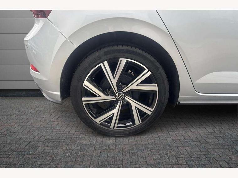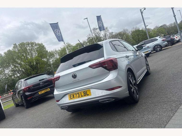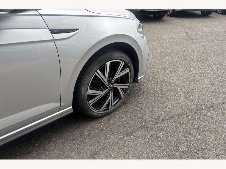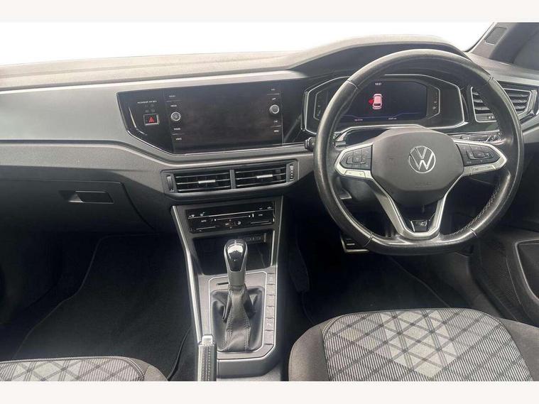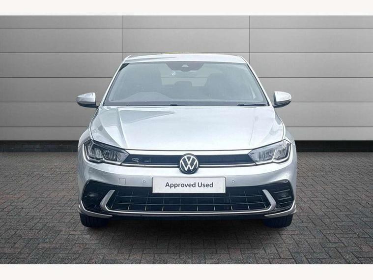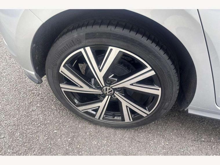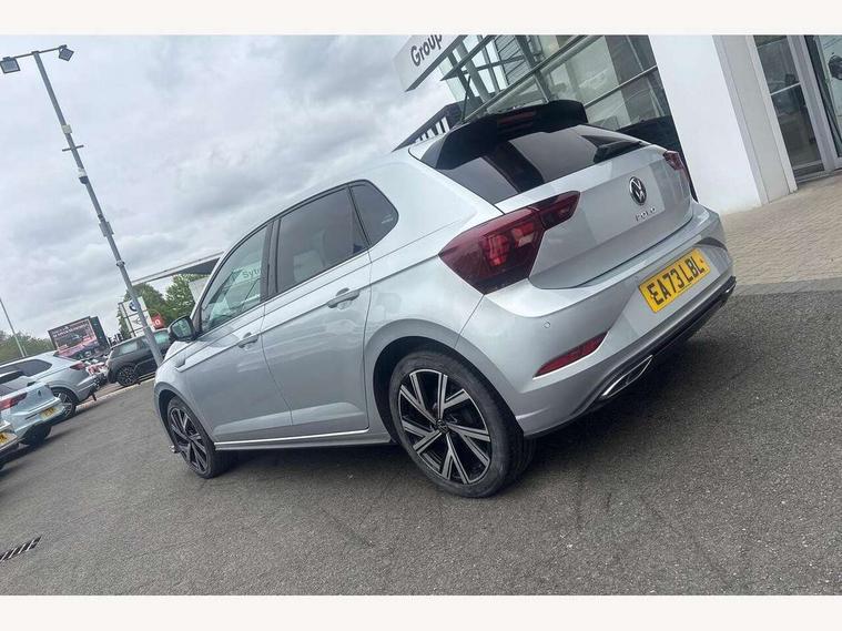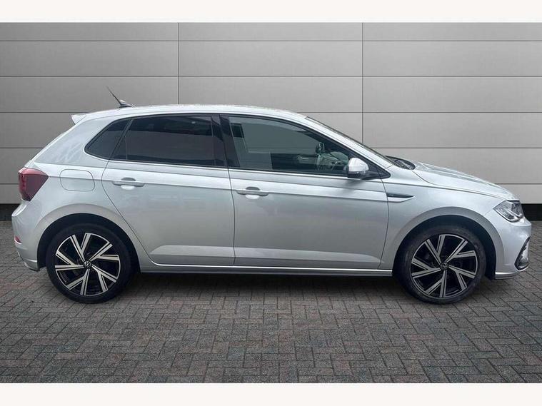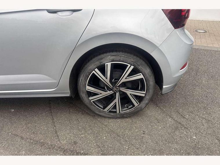 Adaptive cruise control with follow-to-stop and speed limiter, Bluetooth mobile phone interface, Digital Cockpit Pro with 10.25" Display, Driver alert system, Dynamic road sign display, Emergency call service, Power assisted speed sensitive steering, Preparation for We connect and We connect plus, Speedo and rev counter, electronic odometer, trip, service interval display and fuel gauge, Standard rear axle, Travel Assist - Lane keeping system and traffic jam assist, Travel assist including emergency assist, Trip computer, Warning signal and warning light for front and rear seatbelts not fastened, Washer fluid level indicator, Wireless app connect, Front wheel drive, Rear shock absorpion, Start-stop system with battery regeneration (recuperation - energy recovery during braking), DAB Digital radio, Diversity antenna for FM reception, Front and rear 6 speakers, Body colour bumpers, Body colour door handles, Body colour door mirrors, Electric front windows, Front scuff plates with R-Line logo, Heat insulating darkened glass in side and rear windows, Heat insulating glass windscreen, Power folding adjustable/heated exterior mirrors and front passenger exterior mirror lowering function, Rear electric windows, Rear fog light, Rear side wing doors, Rear tinted glass from B-pillar backwards approx 65% tinted, Rear windscreen washer and wiper with interval delay, Third brake light, 12V power socket in centre console, 2 USB-C ports in the front, 2 USB-C charging sockets on the center console in the rear, 3 rear head restraints, 60/40 split folding rear seat and rear seat bench not split, Air care climatronic air conditoning system with active combination filter and 2-zone temperature control, Black roof lining, Chrome plated radiator grille inserts, air vent surrounds and light switch surrounds, Door and side trim panel, Driver and front passenger seat height adjustment, Driver/passenger sunvisors with illuminated vanity mirrors, Front + rear carpet mats in recycled material, Front centre armrest, Front footwell illumination, Front seat backrest storage pockets, Front sports comfort seats, Handbrake lever handle in leather, Headliner in recycled material, Isofix child seat preparation easy-fit (for two outer rear seats, and front passenger seat) compatible with I-size, Karoso artvelours cloth upholstery, Leather trimmed gear knob, LED interior light with switch off delay and dimmer, 2 reading lights front and rear, Luggage compartment cover, Luggage compartment floor, Luggage compartment lighting, Lumbar adjustment for front seats, Single front passenger seat, Stainless steel pedals, Standard pedal cluster, Three spoke leather wrapped multifunction steering wheel with shifting paddles, Light and sight pack - Polo R-Line/Black Edition, 3 point height adj front seatbelts + pretensioners, 3x3 point rear seatbelts, ABS, Driver and front passenger airbag with front passenger airbag deactivation, Drivers and front passengers safety optimised head restraints, ESC (Electronic stability control) + EDL (Electronic Differntial lock) and ASR (Traction control), Extended and predictive pedestrian/ cyclist protection, Front curtain and side airbags with center airbag, Hill hold control, Manual child lock in rear doors, Single tone horn, Tyre pressure loss indicator, Alarm with interior protection, Anti-theft alarm system with interior monitoring, backup horn, and towing protection, Anti-theft wheel bolts, Electronic engine immobiliser, Chrome applications on rotary light, mirror adjustment, window regulator switches, outlet with frame in black, Dark grey anodised matt decorative inserts in dash and front door panels, Low rolling resistance tyres,