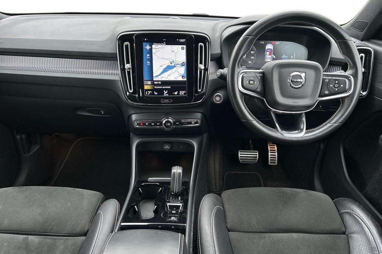 12.3" Active TFT crystal driver's instrument display, 9" centre console portrait touch screen, Adjustable steering wheel force, Bluetooth hands free telephone kit, Drive mode selector, Lane keep assist with driver alert control, Oncoming Lane Mitigation, Sensus navigation with European mapping and traffic information, Speed limiter, Speed sensitive steering, Voice activated control for key functions, Volvo on call, Electric front axle drive, Recharging port located in nearside front wing, Sports chassis, DAB Digital radio, Steering wheel mounted remote controls, Active bending headlights, Adaptive brake lights with high level LED brake lights, Auto dimming interior mirror, Automatic headlamp levelling, Black stone door mirrors, Black stone roof, Colour coordinated auto folding and heated power door mirrors, Dark tinted windows for rear door side windows and cargo compartment, Dual integrated exhaust pipes with high gloss black surround, Front aluminium tread plates, Front and rear electric windows, High gloss black front and rear skid plate, High gloss black lower front bumper, High gloss black mesh front grille with high gloss black surround, High gloss black roof rails, High gloss black sensus surround deco, High gloss black window trim, Home safe and approach lighting, LED front fog lights with static cornering light function, LED Headlights + Active high beam incorporating daytime running lights, Rain sensor with automatic windscreen wiper activation, Rear side wing doors, Rear wiper, Roof antenna, Roof spoiler, Visible VIN plate, 12V socket in front tunnel console and luggage compartment, 2 zone electronic climate control and rear air vent, 3 seat bench in 2nd row, 60/40 split folding rear seat, Ambient front door and instrumental panel lighting, Bright metal luggage threshold, Centre console cupholders and storage, Charcoal headlining, Driver's side lower dashboard credit card storage compartment, Front door pocket and front cupholder illumination, Front footwell illumination, Front headrests, Front reading light and theatre lighting, Glovebox bag hook, Height/reach adjustable steering column, High gloss centre tunnel deco, Illuminated glovebox, Illuminated luggage compartment, Illuminated tailgate, Illuminated vanity mirrors, Isofix attachments on outer rear seats, Key integrated remote, Leather gearknob, Load protection net, Multi directional lumbar support, Multicolour theatre lights, Rear armrest / integral cup holders / storage tray, Rear coat hook, Rear reading and courtesy lights, Single front passenger seat, Sports Leather steering wheel, Sports pedals, Underfloor cargo storage, 3x3 point rear seatbelts, City safety includes pedestrian, cyclist and large animal detection and front collision warning with full auto brake, Drivers knee airbag, Dual stage driver/passenger airbags, Electronic parking brake with auto hold, First aid kit, Front and outer rear seatbelt reminder and pretensioners, Front seats SIPS airbags, Hill descent control, Hill start assist, Inflatable curtain, Passenger airbag cut-off device, Road sign information display, Run off Road Mitigation, Run off Road Protection, SIPS (Side Impact Protection System), Slippery road and hazard light alert, Stability and Traction Control with Spin control, Engine Drag Control and Corner Traction Control, Tyre pressure monitoring system, Vehicle deceleration control with Anti-lock Brake System, Electronic Brake Distribution and Emergency Brake Assist, Warning triangle, WHIPS whiplash protection system - front, Anti-theft alarm including immobiliser/volume sensor + level sensor, Care key with user defined top speed, Key integrated remote control central locking + fuel flap with deadlocking system and auto open/close power windows, Locking wheel nuts, Private locking for tailgate, Cutting edge aluminium inlay,