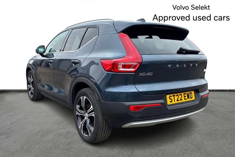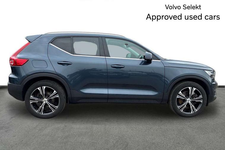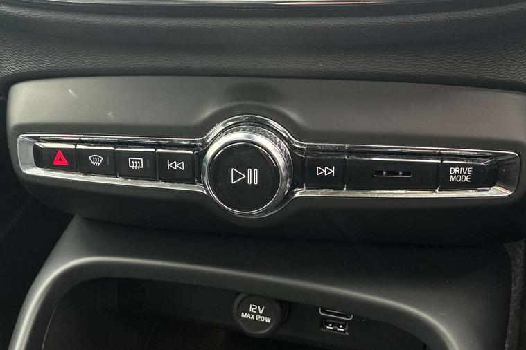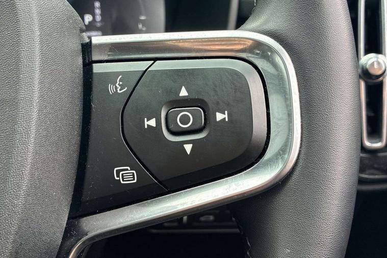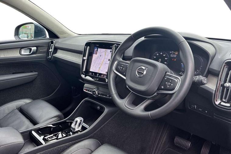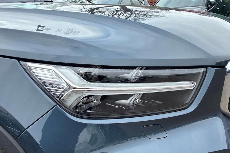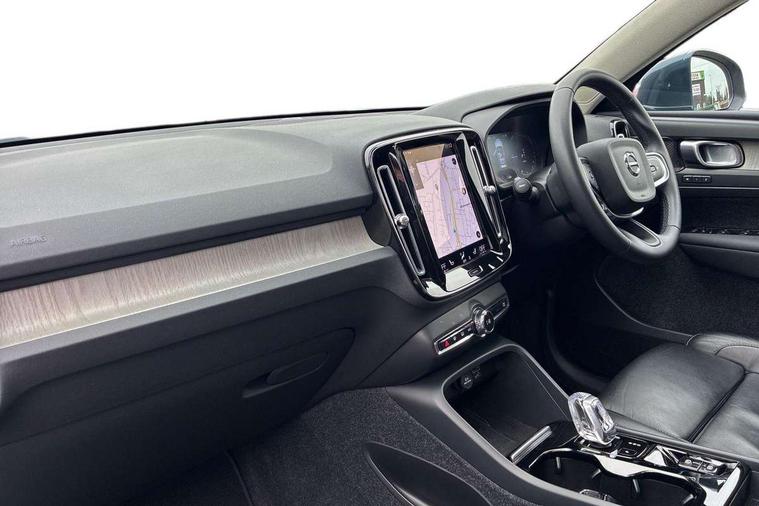 12.3" Active TFT crystal driver's instrument display, 9" centre console portrait touch screen, Adjustable steering wheel force, Bluetooth hands free telephone kit, Drive mode selector, E-call, Lane keep assist with driver alert control, Low speed exterior sound speaker, Oncoming Lane Mitigation, Power operated tailgate, Sensus navigation with European mapping and traffic information, Speed limiter, Speed sensitive steering, Voice activated control for key functions, Volvo on call, 7m 10amp charge cable with 3 pin plug and 7m 1 phase 16amp type 2/mode 3 charge cable, Dynamic chassis, Electric front axle drive, Recharging port located in nearside front wing, DAB Digital radio, Steering wheel mounted remote controls, Adaptive brake lights with high level LED brake lights, Auto dimming interior mirror, Automatic headlamp levelling, Automatic LED Headlights + Active high beam incorporating daytime running lights, Chrome window surround, Colour coordinated auto folding and heated power door mirrors, Front aluminium tread plates, Front and rear electric windows, Heated front windscreen, High gloss black front grille with chrome inserts, High gloss black sensus surround deco, High Gloss silver front and rear skid plate, Home safe and approach lighting, Integrated roof rails in silver, Rain sensor with automatic windscreen wiper activation, Rear side wing doors, Rear wiper, Roof antenna, Roof spoiler, Visible VIN plate, 12V socket in front tunnel console and cargo compartment, 2 zone electronic climate control and rear air vent, 3 seat bench in 2nd row, 3 Spoke tailored steering wheel with chrome trim, 60/40 versatile split folding rear seat, A-pillar parking ticket holder, Blond headlining, Bright metal luggage threshold, Centre console cupholders and storage, Floor mats, Front footwell illumination, Front headrests, Front reading light and theatre lighting, Front seat cushion extensions, Glovebox bag hook, Heated front seats, Height/reach adjustable steering column, Height/tilt adjustable driver's seat, High gloss centre tunnel deco, Illuminated glovebox, Illuminated luggage compartment, Illuminated vanity mirrors, Isofix attachments on rear seats, Leather faced upholstery, Load protection net, Multi directional lumbar support, Orrefors Crystal Gear Lever Knob, Power driver seat with memory + exterior mirrors memory, Power passenger seat, Rear armrest / integral cup holders / storage tray, Rear coat hook, Single front passenger seat, Underfloor cargo storage, Vanity mirror with ticket holder, Lighting pack - XC40, Park assist pack - XC40, 3x3 point rear seatbelts, City safety includes pedestrian, cyclist and large animal detection and front collision warning with full auto brake, Drivers knee airbag, Dual stage driver/passenger airbags, Electronic parking brake with auto hold, First aid kit, Front and outer rear seatbelt reminder and pretensioners, Front seats SIPS airbags, Hill descent control, Hill start assist, Inflatable curtain, Passenger airbag cut-off device, Road sign information display, Run off Road Mitigation, Run off Road Protection, SIPS (Side Impact Protection System), Slippery road and hazard light alert, Stability and Traction Control with Spin control, Engine Drag Control and Corner Traction Control, Tyre pressure monitoring system, Vehicle deceleration control with Anti-lock Brake System, Electronic Brake Distribution and Emergency Brake Assist, Warning triangle, WHIPS whiplash protection system - front, Anti-theft alarm including immobiliser/volume sensor + level sensor, Care key with user defined top speed, Key integrated remote control central locking + fuel flap with deadlocking system and auto open/close power windows, Locking wheel nuts, Private locking for tailgate, Driftwood inlays,