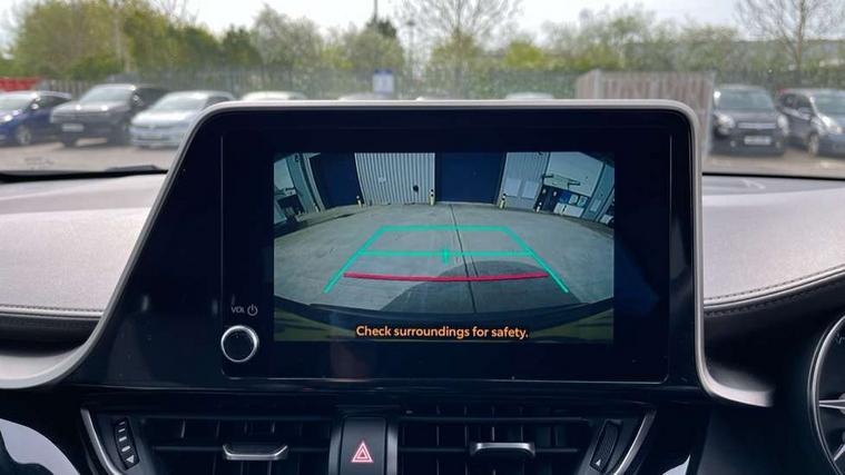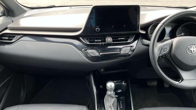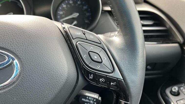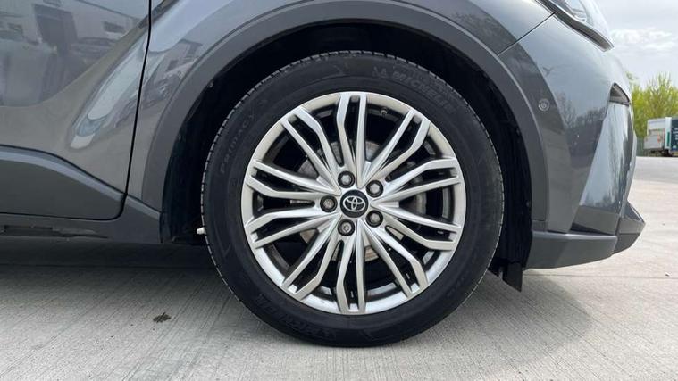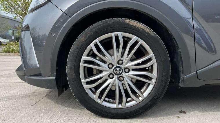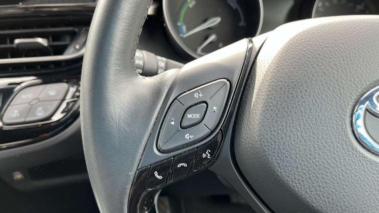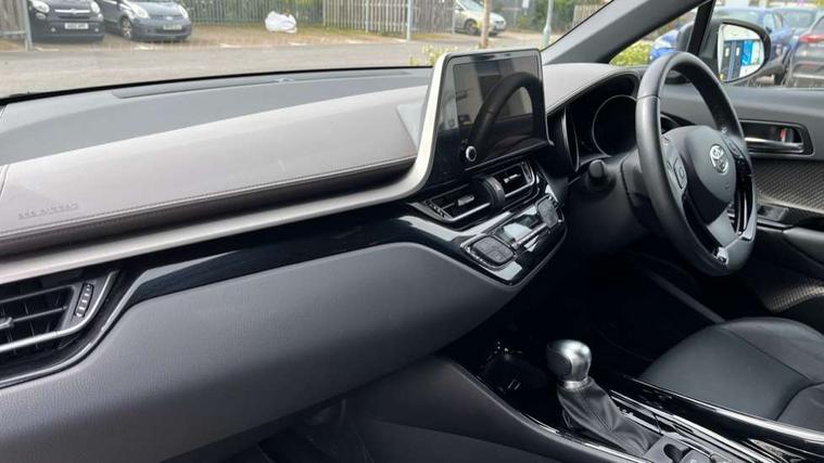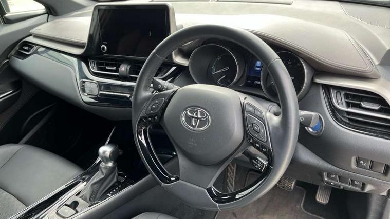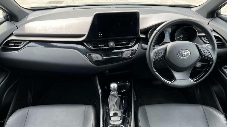4.2" coloured TFT screen for multi-information display, Adaptive cruise control, Apple car play and Android auto, Bluetooth connectivity, E-call, Electric power steering, Hybrid system indicator, Lane departure alert with steering control, Lane trace assist, Push button tailgate release, Remote boot door release in cabin, Remote boot door release in key, Reversing camera, Road sign assist - RSA, Simple Intelligent parking assist, Smart voice assist, Touch 2 Go navigation system, Trip computer, Voice recognition, Wireless smartphone integration, Vehicle Stability Control (VSC), 6 speakers, AM/FM radio, DAB Radio (Digital Audio Broadcasting), Toyota touch 2 multimedia system with 8" display, USB connector, Wi-fi connectivity, Adaptive front light system, Adaptive LED Headlights, Anti-jam protection on power windows, Auto high beam, Auto up and down function on all power windows, Automatic headlight levelling, Automatic headlights, Automatic headlights cut-off, Black and body coloured rear bumper, Black lower front grille, Black upper front grille, Body colour door handles, Body colour door mirrors, Body colour front spoiler lip, Body coloured front bumper, Boot door release with push button, Electric heated door mirrors, Follow me home headlights, Front and rear power windows, Headlight cut off reminder, Honeycomb lower front grille, LED daytime running lights, LED fog lights, LED front light guide, LED High mounted stop light, LED rear brake lights, LED rear combination lights, Noise reduction layer on front windows and windscreen, Power adjustable door mirrors, Privacy glass, Rain sensor, Rear sequential indicators, Rear side wing doors, Rear spoiler, Rear tailgate, Rear window defogger, Rear window wiper, Shark fin antenna, UV-filter on driver and passenger windows, UV-filter on rear windows, Variable front intermittent wipers, 12v power outlet - front, 3 rear headrests, 3 seat bench in 2nd row, 3 spoke leather steering wheel, 60/40 split folding 2nd row rear seats, Adjustable rear headrests, Adjustable speed limiter switch on steering wheel, Assist grips front and centre pillar, Audio and telephone switches on steering wheel, Black front door assist grips, Blue ambient lighting on front cup holders, Blue ambient lighting on front doors, Boot light, Chrome interior door handles, Driver and front passenger personal light, Driver and front passenger Whiplash Injury Lessening seats, Driver and passenger seatback pockets, Dual zone automatic air conditioning, Floor mats, Front cupholders, Front head restraints, Front sports seats, Glovebox with internal light, Hard tonneau cover, Heated driver and front passenger seats, Heated steering wheel, Hooks for luggage holding net, Humidifying Nanoe air purifier, Illuminated entry system, Isofix attachments on outer rear seats, Leather gearshift, Light on driver sun visor, Light on passenger sun visor, Manual telescopic steering wheel, Manual tilt steering wheel, Microphone on front personal light, Mirror on driver sun visor, Mirror on passenger sun visor, Multimedia switches on steering wheel, Pollen filter, Power adjustable lumbar support on driver seat, Power tilting cushion on driver seat, Shopping bag hooks, Single front passenger seat, Slow opening on lower glovebox, Voice recognition switch on steering wheel, Leather pack - C-HR, Tech with parking sensor pack - C-HR, 16 Disk front wheel brake, 3x3 point rear seatbelts, ABS+EBD+Brake assist, Electronic parking brake, Front and rear seatbelt reminder, Front passenger airbag on/off switch, Hill start assist control (HAC), Pre collision system with pedestrian detection, Pre-tensioners and force limiters, Rear door child safety locks, SRS Airbags - Driver + Front passenger, front side, front and rear curtain and driver's knee airbags, Toyota safety sense, Tyre pressure monitoring system, Tyre pressure warning system, Acoustic vehicle alert system (AVAS), Glass-breaking alarm sensors, Immobiliser, Intrusion alarm, Intrusion sensor, Motion sensor alarm, Power door locks, Power passenger window lock, Remote central locking, Black lower dashboard, Dark brown upper dashboard, Piano black console, Silver deco line on upper dashboard, Tyre repair kit,