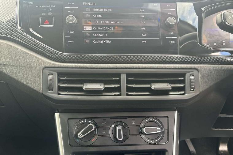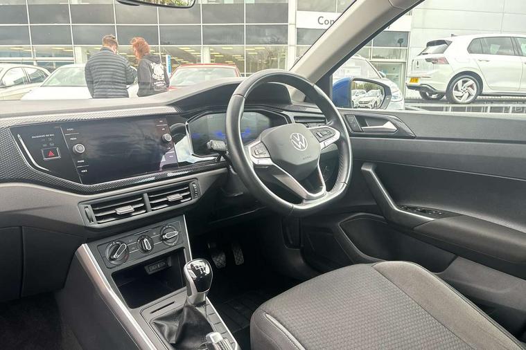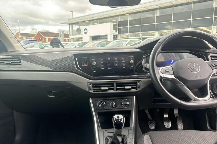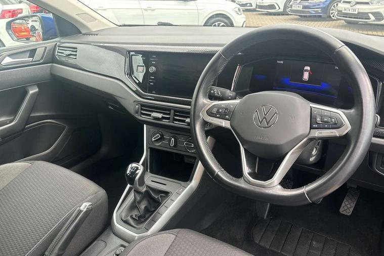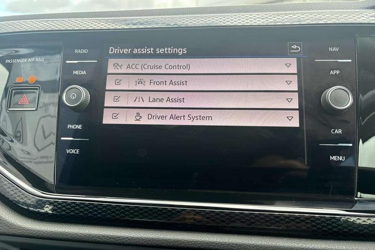 Adaptive cruise control without follow-to-stop and speed limiter, Bluetooth mobile phone interface, Driver alert system, Emergency call service, Front assist system, Power assisted speed sensitive steering, Preparation for We connect and We connect plus, Speedo and rev counter, electronic odometer, trip, service interval display and fuel gauge, Standard rear axle, Travel Assist - Lane keeping system and traffic jam assist, Travel assist including emergency assist, Trip computer, Warning signal and warning light for front and rear seatbelts not fastened, Washer fluid level indicator, Wireless app connect, Front wheel drive, Rear shock absorpion, Start-stop system with battery regeneration (recuperation - energy recovery during braking), DAB Digital radio, Diversity antenna for FM reception, Front and rear 6 speakers, Automatic dimming interior rear view mirror, Body colour bumpers, Body colour door handles, Body colour door mirrors, Electric front windows, Heat insulating darkened glass in side and rear windows, Heat insulating glass windscreen, Power folding adjustable/heated exterior mirrors and front passenger exterior mirror lowering function, Rain sensor, Rear electric windows, Rear fog light, Rear side wing doors, Rear windscreen washer and wiper with interval delay, Third brake light, 12V power socket in centre console, 2 front and 2 rear reading lights, 2 USB-C ports in the front, 2 USB-C charging sockets on the center console in the rear, 3 rear head restraints, 60/40 split folding rear seat and rear seat bench not split, Chrome plated radiator grille inserts, air vent surrounds and light switch surrounds, Door and side trim panel, Driver and front passenger seat height adjustment, Driver/passenger sunvisors with illuminated vanity mirrors, Front centre armrest, Front seat backrest storage pockets, Front standard seats, Handbrake lever handle in leather, Hartley/Thomas cloth upholstery, Headliner in recycled material, Isofix child seat preparation easy-fit (for two outer rear seats, and front passenger seat) compatible with I-size, Leather trimmed gear knob, Luggage compartment cover, Luggage compartment floor, Luggage compartment lighting, Multifunction steering wheel, Single front passenger seat, Standard pedal cluster, Light and vision pack - Polo, 3 point height adj front seatbelts + pretensioners, 3x3 point rear seatbelts, ABS, Driver and front passenger airbag with front passenger airbag deactivation, Drivers and front passengers safety optimised head restraints, ESC (Electronic stability control) + EDL (Electronic Differntial lock) and ASR (Traction control), Extended and predictive pedestrian/ cyclist protection, Front curtain and side airbags with center airbag, Front disc brakes, Hill hold control, Manual child lock in rear doors, Rear drum brakes, Single tone horn, Tyre pressure loss indicator, Alarm with interior protection, Anti-theft alarm system with interior monitoring, backup horn, and towing protection, Anti-theft wheel bolts, Electronic engine immobiliser, Lava stone black gloss/matt decorative inserts in dash and front door panels, Low rolling resistance tyres,