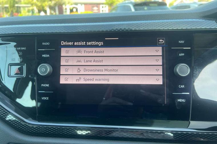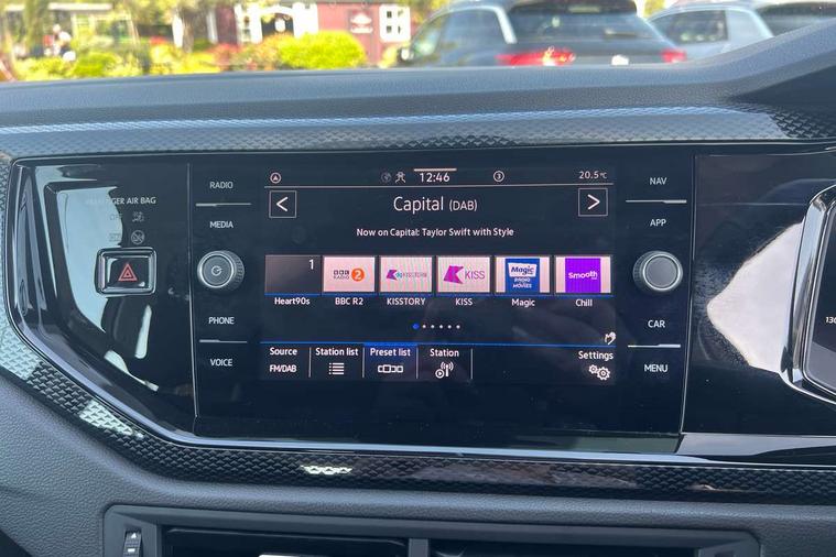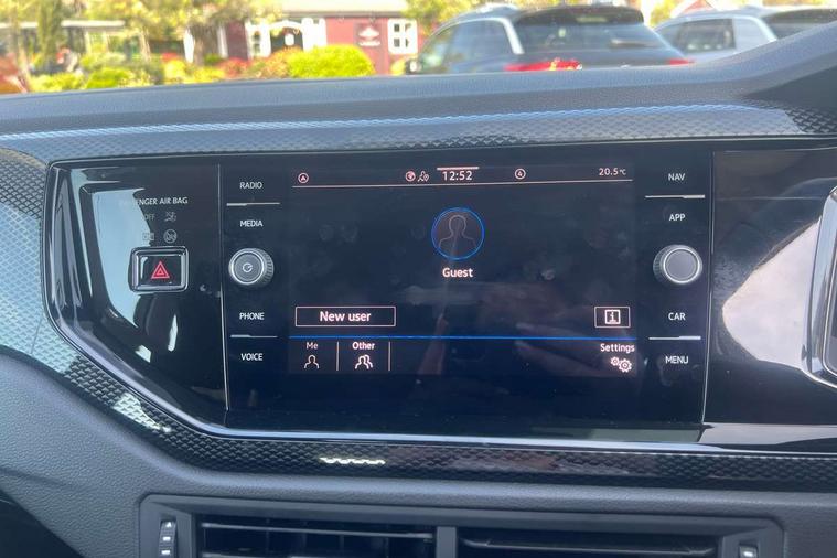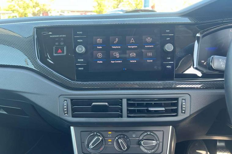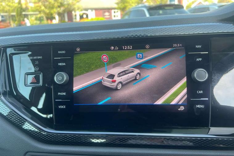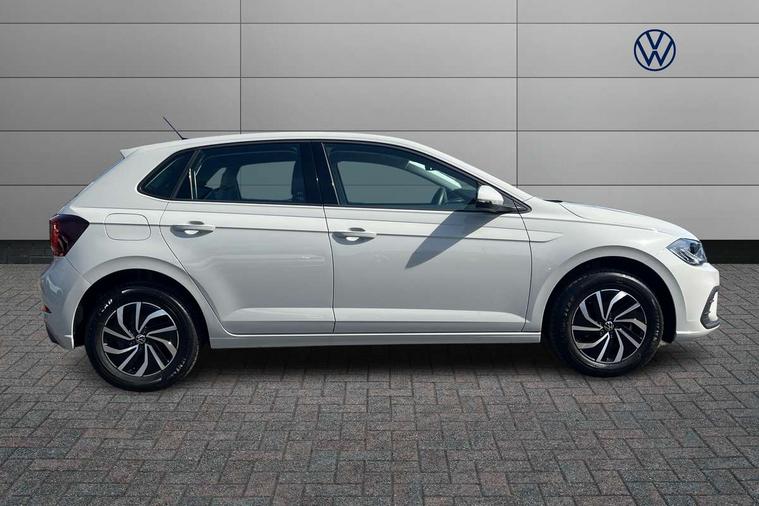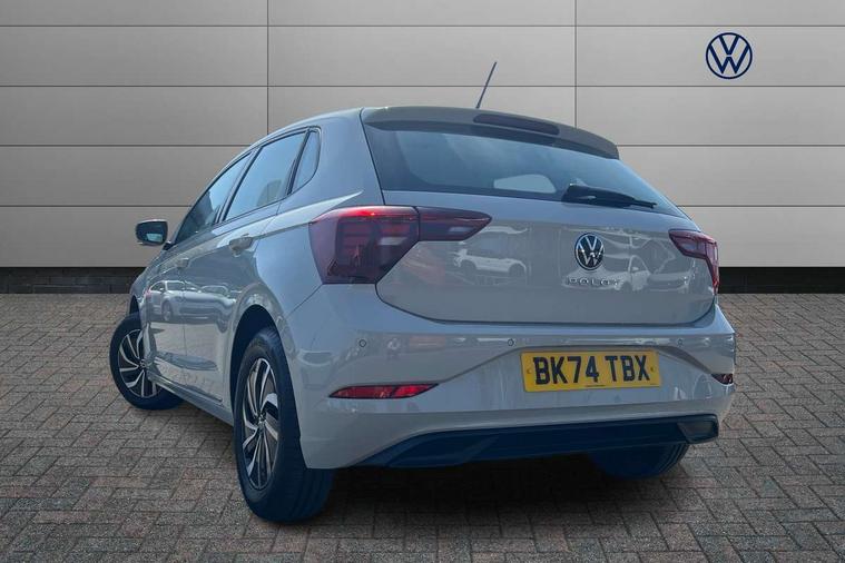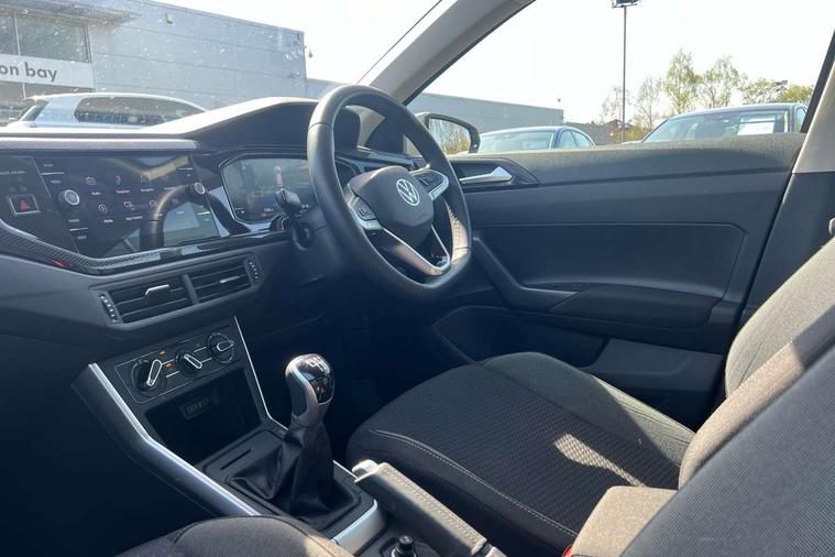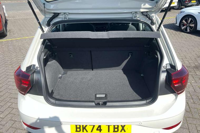 Advanced driver attention and drowsiness monitor, Bluetooth mobile phone interface, Cruise control + speed limiter, Dynamic road sign display, Emergency call service, Lane keeping system Lane Assist, Multifunction camera, Power assisted speed sensitive steering, Preparation for navigation system with media and internet package, Preparation for We connect and We connect plus, Speedo and rev counter, electronic odometer, trip, service interval display and exterior temperature gauge, Standard rear axle, Trip computer, Warning signal and warning light for front and rear seatbelts not fastened, Washer fluid level indicator, Wireless app connect, Front wheel drive, Rear shock absorpion, Start-stop system with battery regeneration (recuperation - energy recovery during braking), DAB Digital radio, Diversity antenna for FM reception, Front and rear 6 speakers, Automatic dimming interior rear view mirror, Automatic headlight control with LED separate daytime running lights with coming/leaving home function, Body colour bumpers with chrome inserts, Body colour door handles, Body colour door mirrors, Electric front windows, Engine badge deletion, Headlight range adjustment, Heat insulating and laminated safety glass windshield, Heat insulating darkened glass in side and rear windows, LED Headlights, LED rear combination lamps, Power folding adjustable/heated exterior mirrors and front passenger exterior mirror lowering function, Rain sensor, Rear electric windows, Rear fog light, Rear side wing doors, Rear windscreen washer and wiper with interval delay, Third brake light, 12V power socket in centre console, 2 front and 2 rear reading lights with switch off delay and dimmer, 2 USB-C ports in the front, 2 USB-C charging sockets on the center console in the rear, 3 rear head restraints, 60/40 split folding rear seat and rear seat bench not split, Ceramique roof lining, Chrome plated radiator grille inserts, air vent surrounds and light switch surrounds, Door and side trim panel, Driver and front passenger seat height adjustment, Driver/passenger sunvisors with illuminated vanity mirrors, Front centre armrest, Front seat backrest storage pockets, Front standard seats, Handbrake lever handle in leather, Hartley/Thomas cloth upholstery, Headliner in recycled material, Isofix child seat preparation easy-fit (for two outer rear seats, and front passenger seat) compatible with I-size, Leather trimmed gear knob, Luggage compartment cover, Luggage compartment lighting, Removable luggage compartment floor, Single front passenger seat, Standard climatic zones, Standard pedal cluster, Three spoke leather wrapped multifunction steering wheel, Light and vision pack - Polo, 3 point height adj front seatbelts + pretensioners, 3x3 point rear seatbelts, ABS, Driver and front passenger airbag with front passenger airbag deactivation, Drivers and front passengers safety optimised head restraints, ESC (Electronic stability control) + EDL (Electronic Differntial lock) and ASR (Traction control), Extended and predictive pedestrian/ cyclist protection, Front assist with autonomous emergency braking (for Adaptive Cruise Control ACC up to 130 mph), Front curtain and side airbags with center airbag, Front disc brakes, Hill hold control, Manual child lock in rear doors, Rear drum brakes, Single tone horn, Tyre pressure loss indicator, Alarm with interior protection, Anti-theft alarm system with interior monitoring, backup horn, and towing protection, Anti-theft wheel bolts, Electronic engine immobiliser, Lava stone black gloss/matt decorative inserts in dash and front door panels, Low rolling resistance tyres,