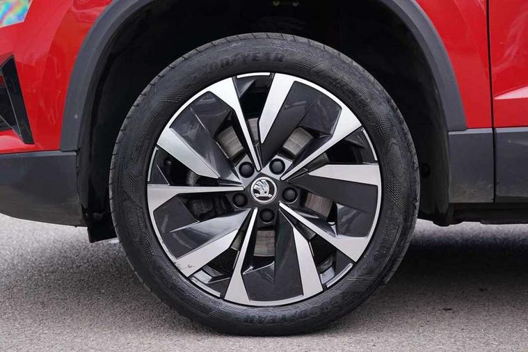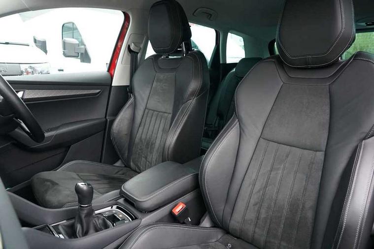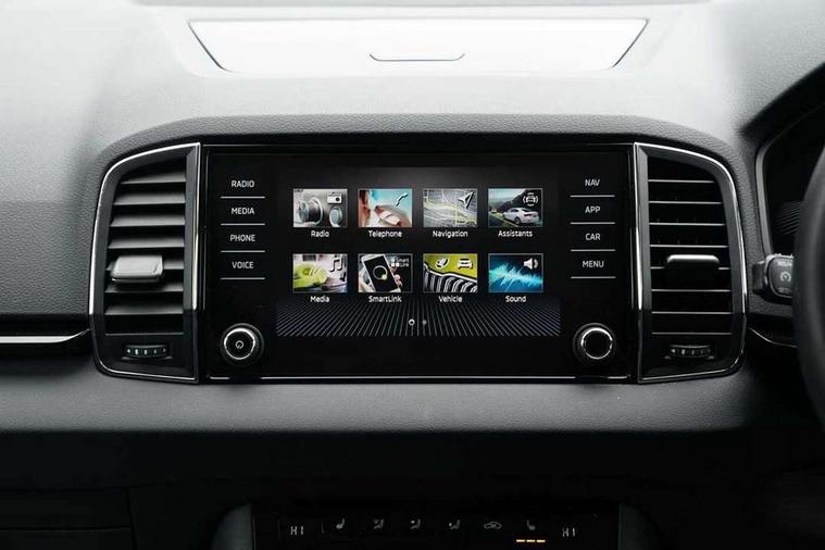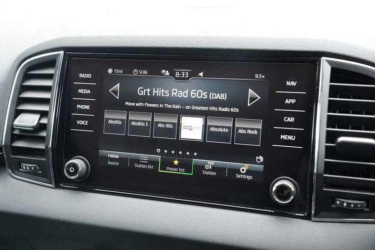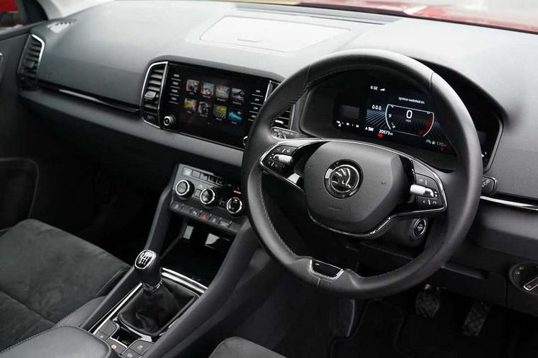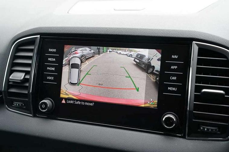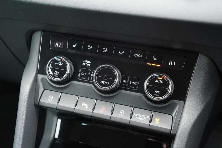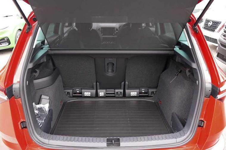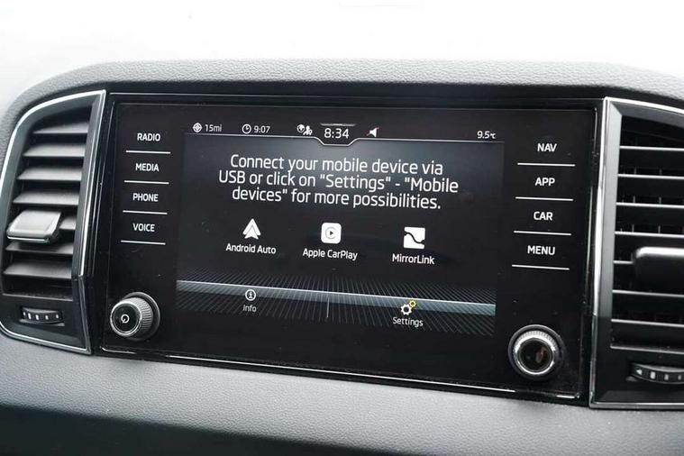 8" Digital display, Care connect, Driver fatigue sensor, Emergency services call system, Outside temperature gauge, Service interval indicator, SmartLink wireless for Apple and wired for Android, Start/stop system with regenerative braking, USB C Port x 2 in front centre console, 8 Speakers, DAB radio with Bluetooth, USB connection, Acoustic glass, Aero front windscreen wipers with intermittent function, Auto dimming rear view mirror with light and rain sensors, Black electric window control buttons, Body colour door mirrors and handles, Dynamic headlight range control with cornering light function, Electric front and rear windows with child proof lock, Heated rear windscreen, LED daytime running lights, LED rear lights with high functionality welcome effect and dynamic indicators, Light assistant (coming/leaving home/tunnel light), Plastic scuff plates, Privacy glass, Rear side wing doors, Rear spoiler, Rear window wiper with washer system and intermittent control, Safety reflectors on front doors, 1.5 litre bottle holders in driver and front passenger door panels, 12V socket in boot, 12v socket in front centre armrest with storage compartment and rear air vents, 2 spoke leather heated multifunction steering wheel, 2 x Tablet holder, 3 rear height adjustable headrests, 3 seat bench in 2nd row, 4 foldable roof handles with rear coat hooks, Black floor carpet, Chrome inner door handles, Double sided boot floor, Foldable hooks in the boot, Front head restraints, Height adjustable front three point seats belts with tensioners, Height/reach adjust steering wheel, Ice scraper, Illuminated glovebox, Illuminated luggage compartment, Isofix child seat preparation for front passenger seat, Isofix child seat preparation outer rear, Manual lumbar support for front seats, Pen holder, Pollen filter, Rear boot cover, Rear reading lights, Rubbish bin door, Safety vest holder, Single front passenger seat, Storage box in upper central dashboard closed, Sunvisors with illuminated vanity mirrors, Textile floor mats, Ticket holder, VarioFlex seats with standard rear seat release, Boot pack - Karoq, Design Pack - Karoq, Parking pack - Karoq, Automatic door unlocking in case of crash, Automatic fuel cut off in case of crash, Child locks on rear doors, Driver airbag, Electronic parking brake with auto hold function, Emergency rear braking signal, ESC including ABS, MSR, ASR, EDS, HBA, DSR, RBS, MKB and traction control, Front side airbags, Hill hold control, Knee airbags, Passenger airbag with switch-off function, Pedestrian monitor, Seatbelt reminder signalisation and pretensioner for all seats, Three point seatbelts rear, Two tone horn, Tyre pressure display, Tyre pressure monitor, Alarm with interior monitoring, back up horn and tilt sensor with safe function, Electronic engine immobiliser, Keyless entry and start/stop, Remote central locking with 2 remote folding keys, Chrome framed air vents, 18" Miran alloy wheels in black, Anti-theft wheel bolts protection, Tool kit,