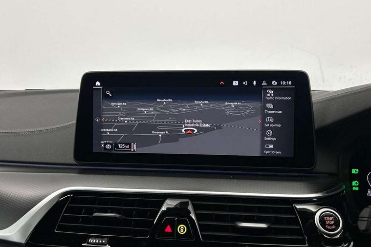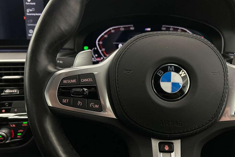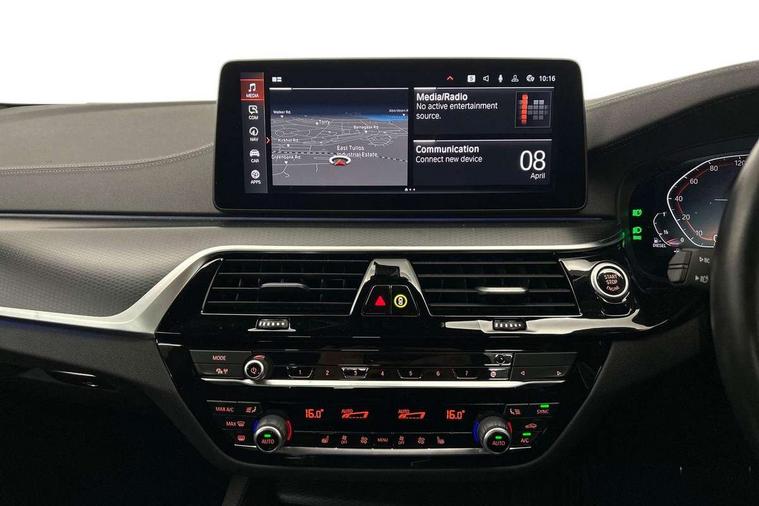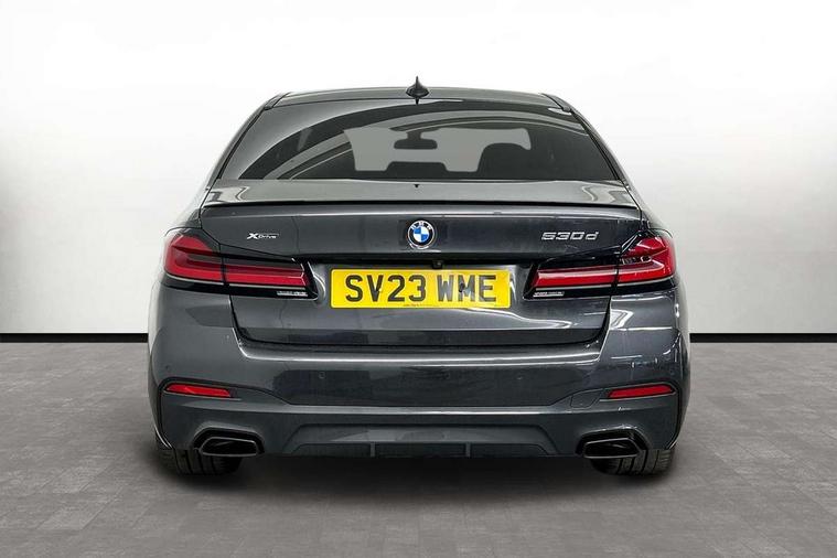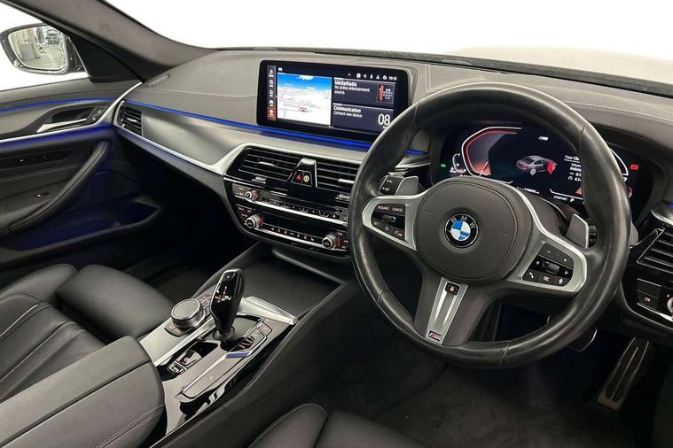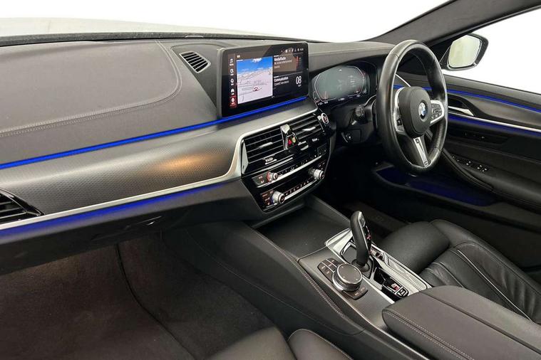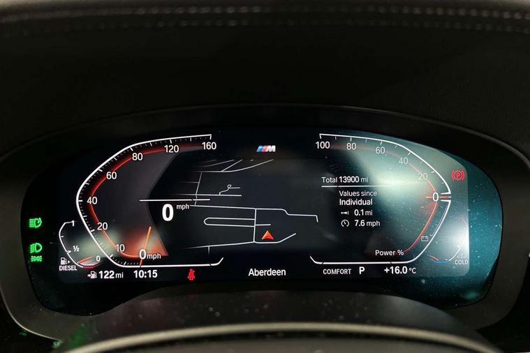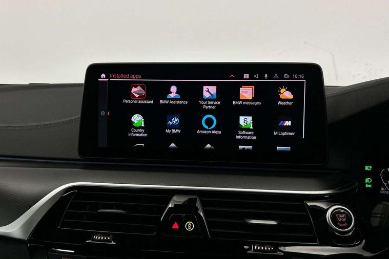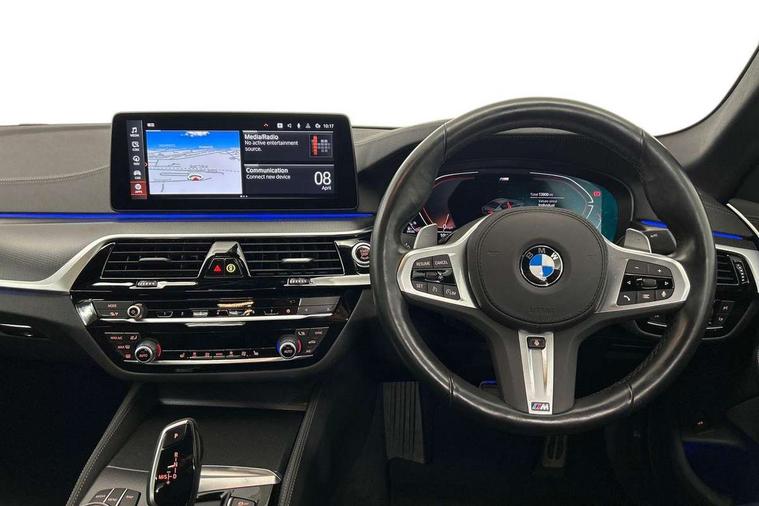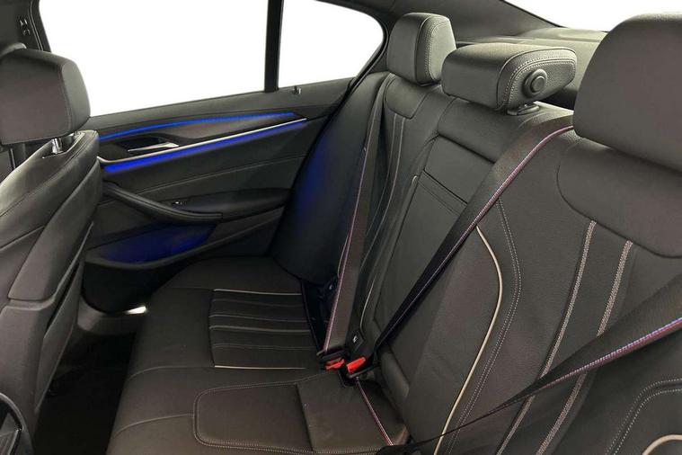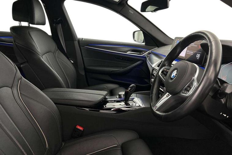 32GB hard disc drive (HDD) memory, Active Guard, Bluetooth connection, BMW ConnectedDrive online services, BMW Live Cockpit Professional sat nav system with 12.3" instrument display and high resolution control display, BMW Teleservices, Brake pad wear indicator, Cruise control with brake assist, Driving experience switch, eCall emergency call system, Electric Power Steering (EPS) with Servotronic, iDrive controller with shortcut buttons, Intelligent emergency call, Multifunctional instrument panel, Oil sensor for level and grade, On board computer inc. average speed, fuel consumption, liquid crystal Info display, journey computer, outside temperature display, personal profile, On-board diagnosis - OBD, Powered by Operating System 7.0, Service interval indicator, Speed limiting function, Stop/start button, 48V Mild hybrid technology, Diesel particulate filter, Drive performance control with ECO PRO comfort + sport mode, Engine cover with twin turbo designation, M sport suspension, Steptronic transmission with gearshift paddles on steering wheel, DAB Digital radio, Favourite buttons, Acoustic glazing, All round anti-corrosion system, Automatic windscreen wipers and automatic headlight, Automatically dimming rear view mirror, BMW Individual high gloss shadow line includes exterior mirror frame, window frame surround, B pillar finish, air breather in high gloss black, Body colour door handles, Body coloured bumpers, Door handle illumination, Dynamic brake lights with LED technology, Electric front and rear windows with fingertip open/close + anti-trap facility and comfort closing function, Electrically adjustable and heated exterior mirrors includes integrated direction indicators and automatic parking function, Folding exterior side mirror with auto- dimming, Follow me home headlight function, Heated windscreen washer jets, High gloss black active air stream kidney grille, LED daytime running lights, LED Headlights, LED third brake light, M designation on front side panels, left and right in chrome, M Sport exterior styling, Preparation for high beam assistant, Rear boot, Rear side wing doors, Trapezoidal visible exhaust tailpipes, xDrive designation on tailgate, 12V power socket in front and rear, 3 seat bench in 2nd row, Armrest - front and rear integrated door trim, centre console includes storage compartment, rear centre includes 2 cupholders, Child seat ISOFIX attachment with rear outer seats includes top tether, Cup holders (2 front and 2 rear), Front and rear footwell lights, Front reading lights, Height and length adjustable steering column and activation via lateral lever on the steering column, Lockable glove compartment with light, M door sill finishers, M specific pedals, M specific velour floor mats, Multifunction controls for leather steering wheel, Rear headrests, Single front passenger seat, Three spoke sport M leather steering wheel, Ambient lighting pack - 5 Series, Connected package professional - 5 Series, M Aerodynamic pack - 5 Series, Airbags - driver/front passenger, rear and side, first and second row seats head airbags, front passenger seat airbag deactivation, Anti-lock braking system (ABS), Automatic Stability Control (ASC), Brake assist function, Brake energy regeneration, Cornering brake control (CBC), Crash sensor activating central locking release, hazard warning lights, fuel cut off and interior lighting, Deformation zones - front and rear with door reinforcements and bumpers up to 2.5 mph, DSC - Dynamic Stability Control, Dynamic brake control, Dynamic Traction Control - DTC, Electromechanical parking brake with automatic drive away release and auto hold function, Electronic brake force distribution, Engine drag torque control, Front and rear brake discs with interior ventilation, Front head restraints with anti-whiplash, Hill start assist, M Sport brakes in high gloss blue painted brake callipers with M designation, Mechanical child proof lock on rear doors, Passive protection for pedestrians, Rear door child safety locks, Side impact protection, Three point seat belts for all four seats, Two tone horn, Tyre pressure indicator, Warning triangle and first aid kit, Alarm system (Thatcham 1) with remote control and electronic engine immobiliser, Locking wheel bolts,