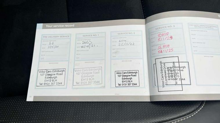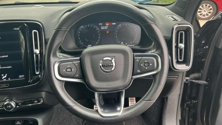 12.3" Active TFT crystal driver's instrument display, 9" centre console portrait touch screen, Adjustable steering wheel force, Bluetooth hands free telephone kit, Drive mode selector, Lane keep assist with driver alert control, Oncoming Lane Mitigation, Sensus navigation with European mapping and traffic information, Speed limiter, Speed sensitive steering, Voice activated control for key functions, Volvo on call, Sports chassis, DAB Digital radio, Steering wheel mounted remote controls, Adaptive brake lights with high level LED brake lights, Auto dimming interior mirror, Automatic headlamp levelling, Black stone door mirrors, Black stone roof, Colour coordinated auto folding and heated power door mirrors, Dark tinted windows for rear door side windows and cargo compartment, Dual integrated exhaust pipes with high gloss black surround, Front aluminium tread plates, Front and rear electric windows, High gloss black front and rear skid plate, High gloss black lower front bumper, High gloss black mesh front grille with high gloss black surround, High gloss black roof rails, High gloss black sensus surround deco, High gloss black window trim, Home safe and approach lighting, LED front fog lights, LED Headlights + Active high beam incorporating daytime running lights, Rain sensor with automatic windscreen wiper activation, Rear side wing doors, Rear wiper, Roof antenna, Roof spoiler, Visible VIN plate, 12V socket in front tunnel console and luggage compartment, 2 zone electronic climate control and rear air vent, 3 seat bench in 2nd row, 60/40 split folding rear seat, Ambient front door and instrumental panel lighting, Black headlining, Centre console cupholders and storage, Driver's side lower dashboard credit card storage compartment, Front door pocket and front cupholder illumination, Front footwell illumination, Front headrests, Front reading light and theatre lighting, Glovebox bag hook, Height/reach adjustable steering column, Illuminated glovebox, Illuminated luggage compartment, Illuminated tailgate, Illuminated vanity mirrors, Isofix attachments on outer rear seats, Key integrated remote, Leather gearknob, Load protection net, Multi directional lumbar support, Multicolour theatre lights, Rear armrest / integral cup holders / storage tray, Rear coat hook, Rear reading and courtesy lights, Single front passenger seat, Sports Leather steering wheel, Sports pedals, Underfloor cargo storage, 3x3 point rear seatbelts, City safety includes pedestrian, cyclist and large animal detection and front collision warning with full auto brake, Drivers knee airbag, Dual stage driver/passenger airbags, Electronic parking brake with auto hold, First aid kit, Front and outer rear seatbelt reminder and pretensioners, Front seats SIPS airbags, Hill descent control, Hill start assist, Inflatable curtain, Passenger airbag cut-off device, Road sign information display, Run off Road Mitigation, Run off Road Protection, SIPS (Side Impact Protection System), Slippery road and hazard light alert, Stability and Traction Control with Spin control, Engine Drag Control and Corner Traction Control, Tyre pressure monitoring system, Vehicle deceleration control with Anti-lock Brake System, Electronic Brake Distribution and Emergency Brake Assist, Warning triangle, WHIPS whiplash protection system - front, Anti-theft alarm including immobiliser/volume sensor + level sensor, Care key with user defined top speed, Key integrated remote control central locking + fuel flap with deadlocking system and auto open/close power windows, Locking wheel nuts, Private locking for tailgate, Cutting edge aluminium inlay,