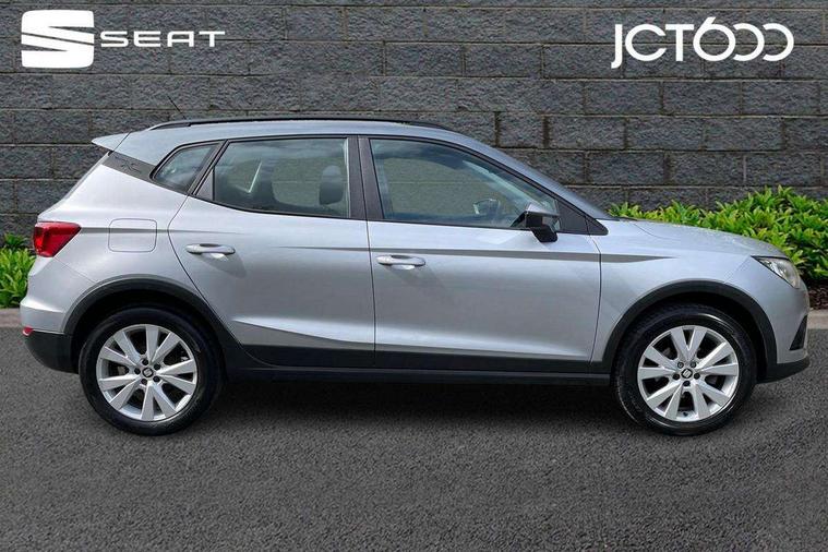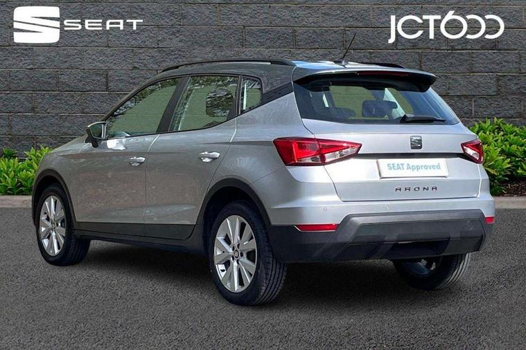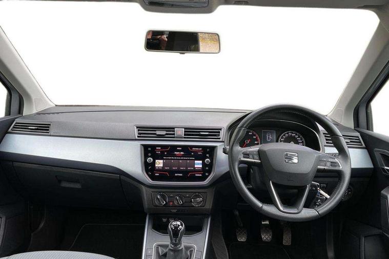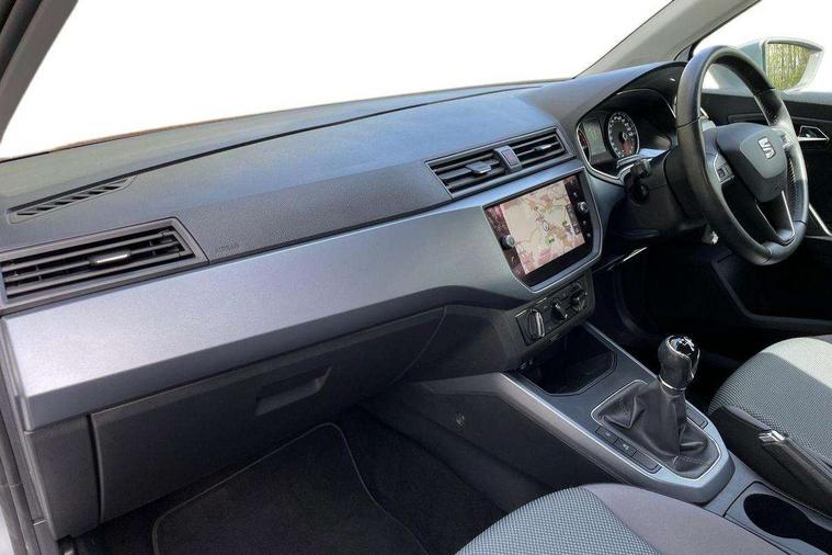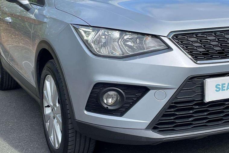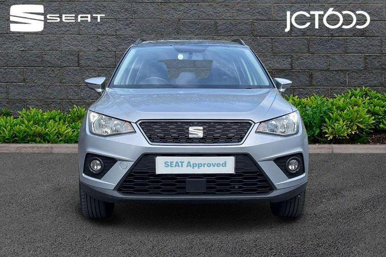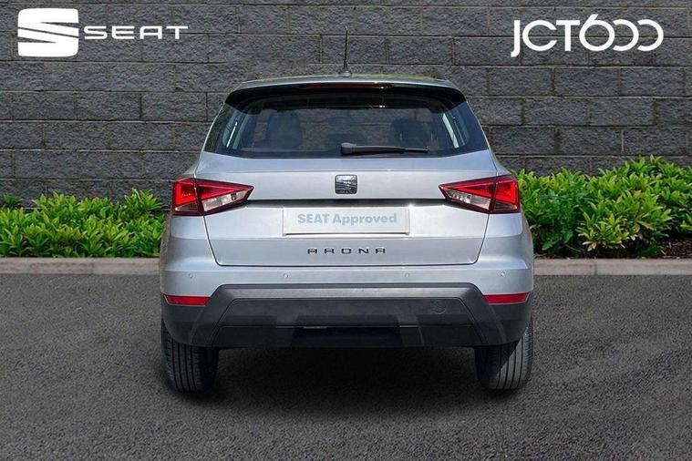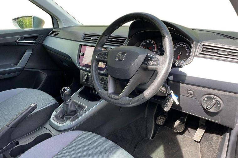 'Lights On' Reminder warning buzzer, Cruise control, Electric speed sensitive power steering, Front assistant collision mitigation, Outside temperature display, Rear parking sensor, Trip computer, Comfort suspension, 6 speakers, Bluetooth interface for hands free and audio streaming, DAB Digital radio, Steering wheel mounted audio controls, Automatic activation of hazard warning lights, Automatic headlights, Black roof rails, Black window surrounds, Body coloured bumpers, Body coloured door handle inserts, Chrome grille surround, Electric adjustable door mirrors, Electric front/rear windows with one touch/auto up/down, Electric headlight adjustment, Front fog lights with static cornering function, LED daytime running lights, Rear window wash/wipe, 2 cupholders, 3 rear height adjustable headrests, 60/40 split folding rear seat, Air conditioning, Ambient interior lighting, Cloth upholstery, Double boot floor, Driver and passenger sunvisors, Driver/front passenger seat height adjustment, Dust/pollen filter, Footwell ambient lighting, Front courtesy lights, Front reading light, Height/reach adjustable steering column, Illuminated boot, Isofix attachments on outer rear seats, Leather handbrake, Leather steering wheel and gear knob, Connectivity pack plus - Arona, 3 point seatbelts on all rear seats, ABS+EBA, Child locks on rear doors, Driver/Front Passenger airbags, Electronic stability control, Front and rear seatbelt reminder, Front side/curtain airbags, Height adjustable active front headrests, Hill hold control + Tyre Pressure monitor, Multi-Collision braking, Passenger airbag deactivate switch, Tiredness recognition system, Traction control, 2 folding remote keys with window open/close function, Immobiliser, Locking wheel bolts, Remote central locking + deadlocks, Interior chrome line trim, 17" Dynamic alloy wheels,