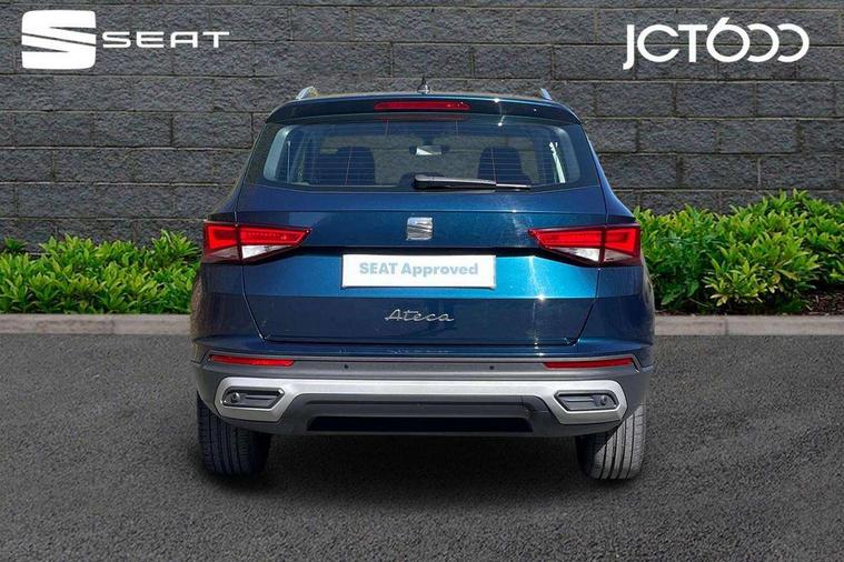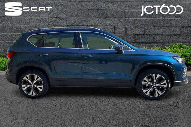 8" Digital cockpit, Colour multi-function on board computer display, Cruise control system with speed limiter, E-call, Outside temperature gauge, PAS, SEAT drive profile with driving experience button - Normal, Sport, Eco and Individual mode, steering and throttle response, Self parking functionality (includes front and rear parking sensors), Start/stop system, Tailgate, Trip computer, Wireless full link smartphone integration, Wireless phone charger, Steering wheel mounted audio/phone controls, Black wheel arch surrounds, Body colour bumpers, Chrome front grille frame, Chrome roof rails, Chrome side window trim, Daytime running lights, Door mirrors with welcome light silhouette, Dynamic headlight range control with self adjusting whilst driving, Electric adjustable/heated/folding door mirrors, Front and rear electric windows, Full LED headlamps with lens and LED front fog lamps with cornering function, LED rear tail lights with dynamic indicators, Rear fog lights, Rear side wing doors, Rear wash/wipe, Simulated exhaust pipes, Variable front intermittent wipers, 12V socket in front, 3 seat bench in 2nd row, 60/40 split folding rear seat, Cloth upholstery with front comfort seats, Drawer under right front seat, Dual zone climate control, Front and rear head restraints, Front centre armrest, Front seat back storage pockets, Height adjustable driver and passenger seat with lumbar adjustment, ISOFIX points in outer rear seats with top tether anchorage points, Leather steering wheel and gear knob, Rear armrest and easy back seat release mechanism from boot, Single front passenger seat, Interior lighting pack - Ateca, Navigation system pack with DAB - Ateca, 3x3 point rear seatbelts, ABS, Traction control system (TCS), Electronic stability control (ESC) and Electronic differential lock system (XDS), Airbags - Driver and front passenger airbag with deactivation, front side, two curtain and driver's knee airbags, Electric parking brake with auto hold function, Front and rear seatbelt reminder, Front assist with autonomous emergency braking, Hill hold control, Manual rear child locks, Single tone horn, Tiredness recognition system, Traction control, Tyre pressure monitoring system, Alarm, Keyless entry, Locking wheel bolts, Remote central locking, Chrome interior detailing, 18" Performance machined alloy wheels 36/2 in nuclear grey,