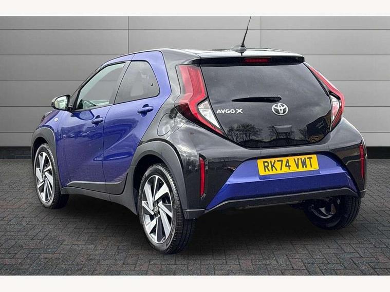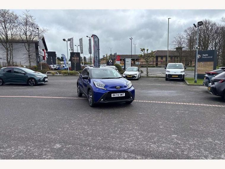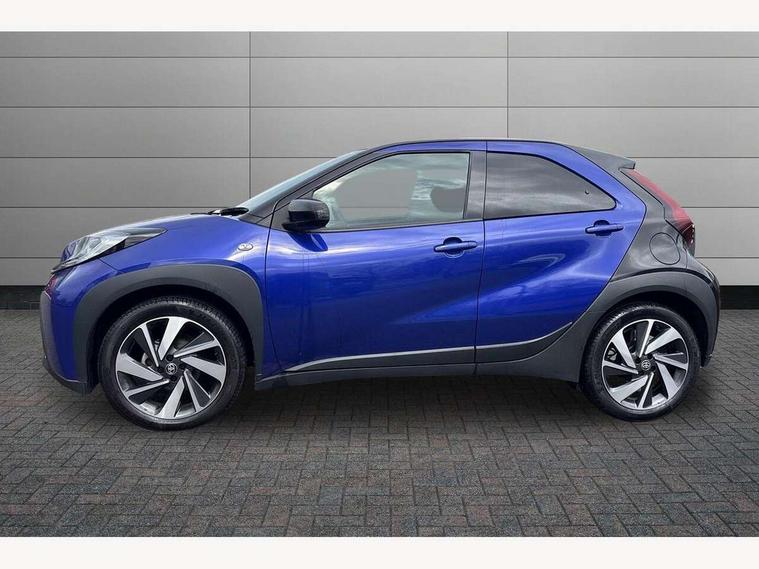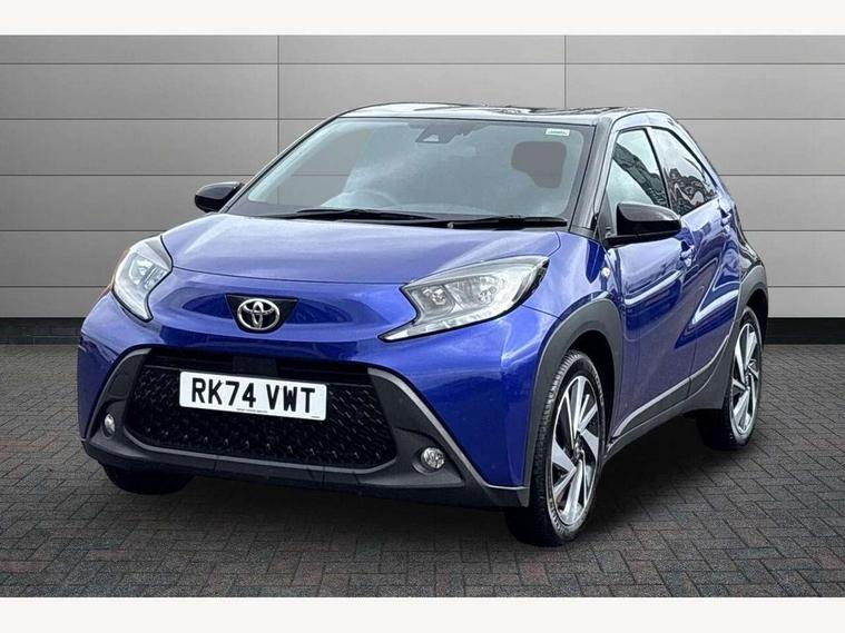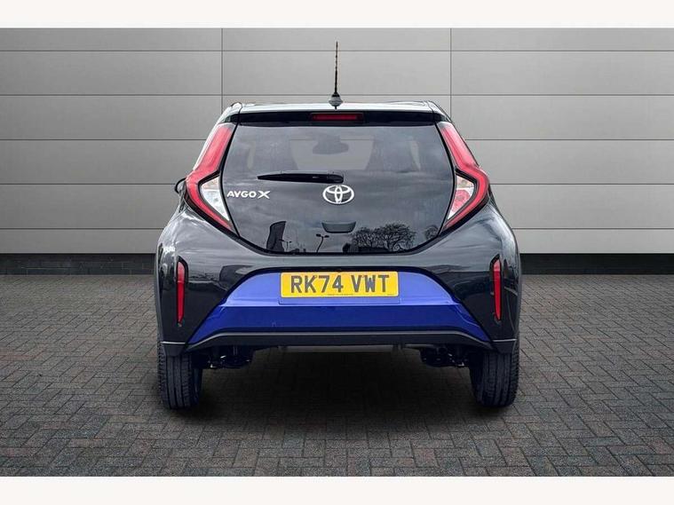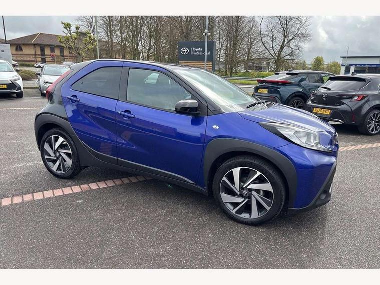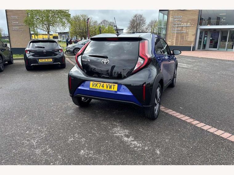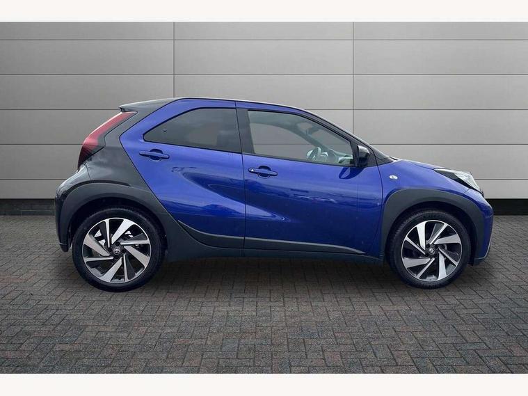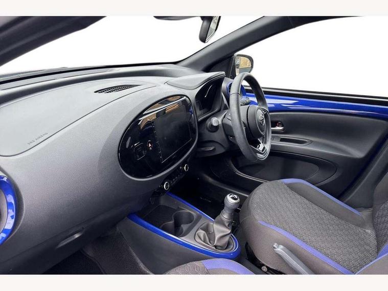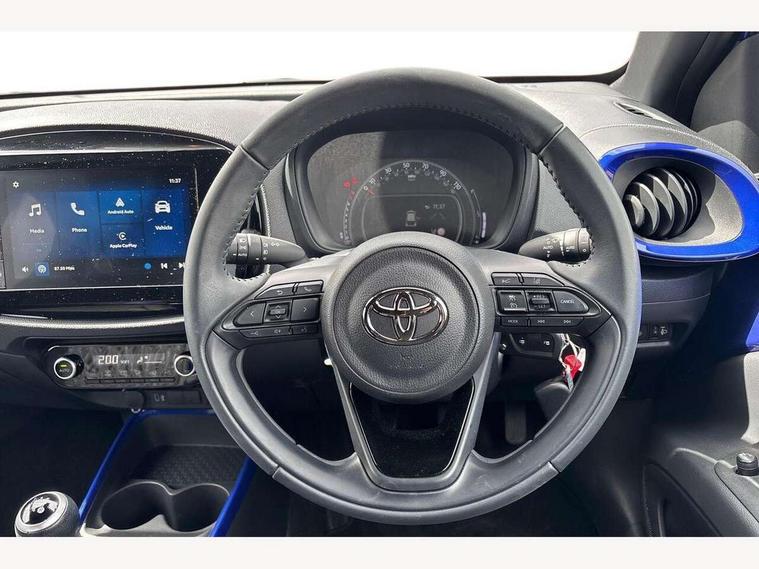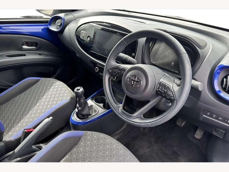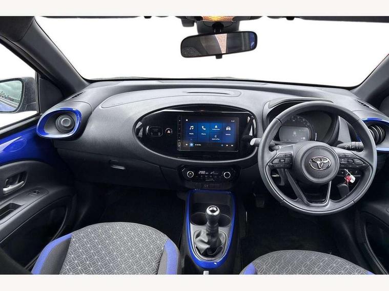 4.2" TFT colour screen, Adjustable speed limiter, Analogue speedometer, Bluetooth connectivity, Digital tachograph, Driver attention alert system, eCall emergency call system, Electric power steering, Intersection turn assist, Key reminder warning, Noise reduction kit, Pre collision system with emergency steering assist, Reversing camera with static guide lines, Smart phone integration with Apple car play/Android Auto, Speed limit display, Start and stop, Vehicle Stability Control (VSC), 4 speakers, 9" HD multimedia display touch screen with Toyota smart connect, DAB digital audio broadcast, USB connector, Auto headlights, Auto wipers, Automatic headlights cut-off, Bicycle towing hook, Black contrast roof, Black side protection mouldings, Black wheel arch mouldings, Body colour door handles, Body coloured front bumper, Boot door scuff plate, Eclipse black rear bumper, Electric heated door mirrors, Follow me home headlights, Front fog lights, Front power windows, Gloss black door mirrors, Gloss black upper front grille, Headlight cut-off reminder, LED daytime running lights, LED front light guide, LED High mounted stop lamp, Manual day/night rear view mirror, Manual headlight levelling, Pagoda roof, Power adjustable door mirrors, Power back door, Privacy glass, Projector halogen headlights, Rain sensor, Rear combination lights LED bulb type, Rear side wing doors, Rear windscreen defogger, Rear windscreen wiper, Short antenna, Variable intermittent windscreen wipers, 12v power outlet - front, 2 seat bench in 2nd row, 3 spoke leather steering wheel, 50/50 split folding rear seat, Adhesive roof headlining, Adjustable speed limiter switch on steering wheel, Audio and telephone switches on steering wheel, Auto air conditioning, Black insert on steering wheel, Black roof lining, Boot light, Centre room light, Chrome interior door handles, Chrome surround on air conditioning buttons, Clean air filter, Console box storage in body color, Fabric upholstery, Floor mats, Front and rear cup holders, Front head rest deco art, Front head restraints, Height adjustable driver seat, Intelligent adaptive cruise control switch on steering wheel, ISOFIX child restraint system on rear seats, Lane departure alert switch on steering wheel, Leather gearshift knob, Manual tilt steering wheel, Manually reclining and sliding driver seat, Manually reclining and sliding front passenger seat, Multimedia switches on steering wheel, Pollen filter, Rear door pockets, Rear head restraints, Satin silver insert on gear shift knob, Single compartment glovebox with lights, Single front passenger seat, Soft tonneau cover, Sun visors with mirror on driver and passenger side, Voice recognition switch on steering wheel, Toyota safety sense pack - Aygo X, Anti lock braking system + Electronic brake force distribution, Child safety door lock, Emergency brake light signal (EBS), Hill start assist control (HAC), Passenger airbag on/off switch, Seat belt reminder for front and rear seats, Supplement restraints system (SRS) - 6 airbags, Traction control, Tyre pressure warning system, Immobiliser, Remote power door locks, Black wheel centre caps, Tyre repair kit,