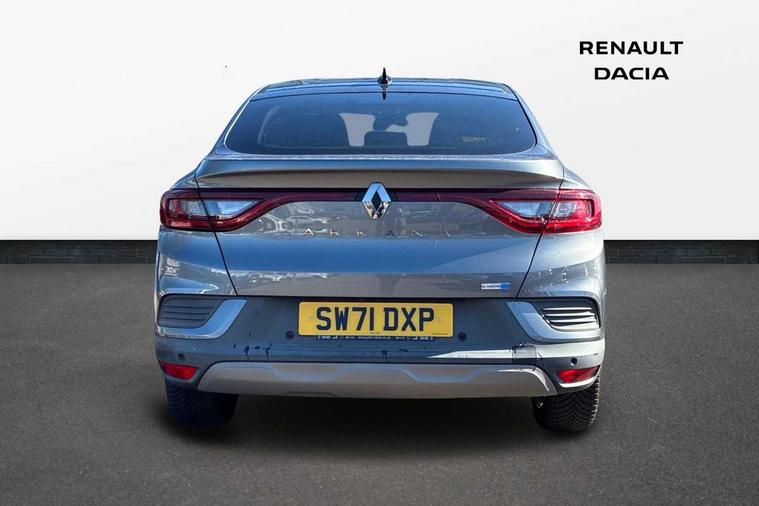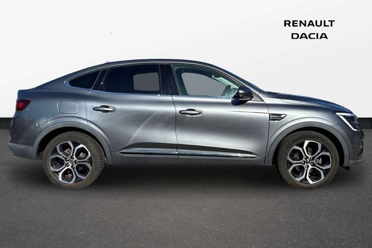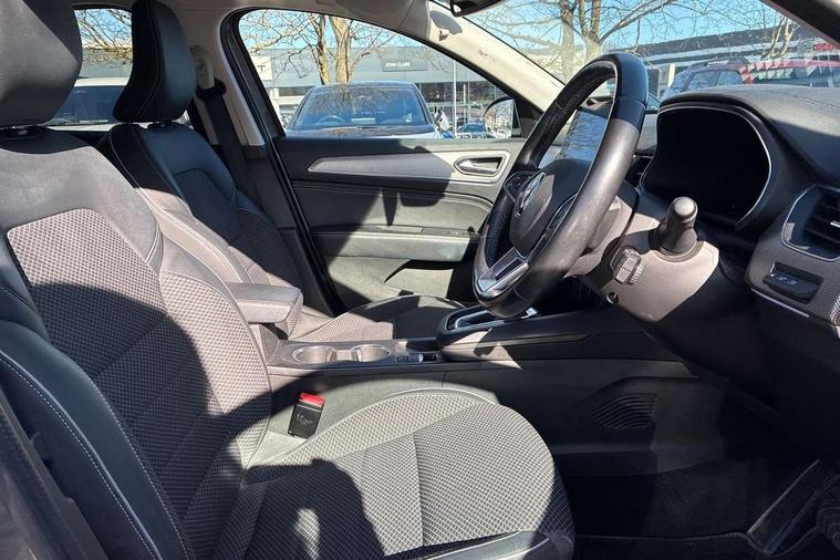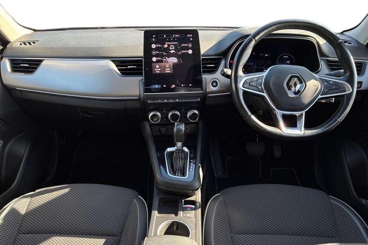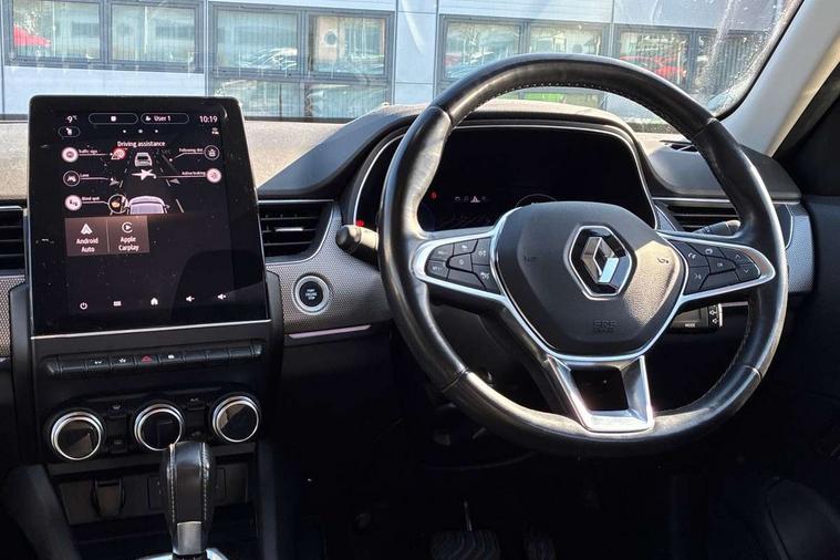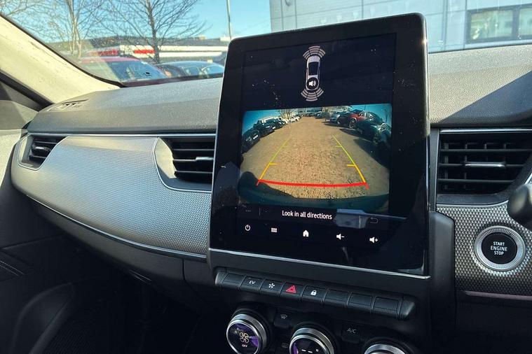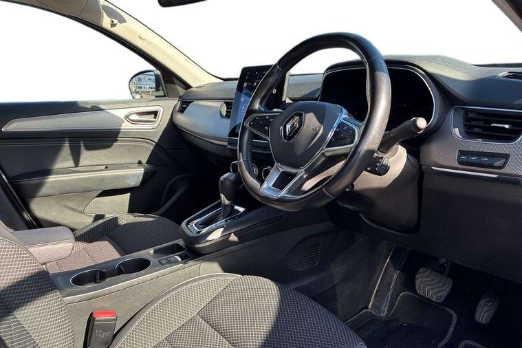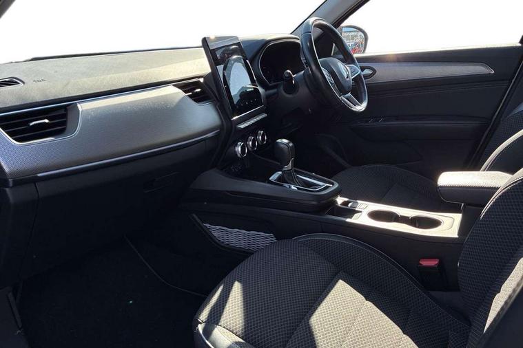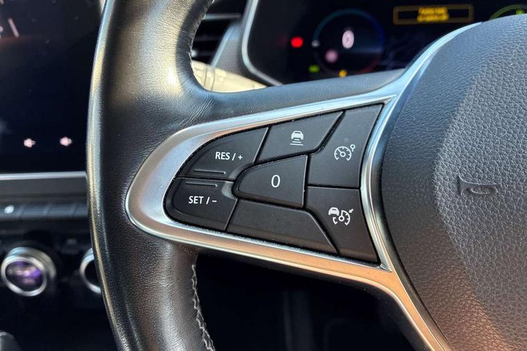18" Pasadena diamond cut alloy wheels with grey inserts, Anti drill door locks and locking fuel cap, Central door locking, Deadlocking system, Hands free keycard with Keyless access and start, RAID (Renault Anti-Intruder Device) automatic door locking, Rear side wing door and window child locking function (front driver door control panel), Superlocking, Thatcham alarm, DAB radio, USB port, 3x3 point rear seat belts, ABS+EBA, Active emergency braking system, B Brake Mode - One pedal driving with increased regenerative braking, Distance warning alert, Driver airbag, Driver and passenger front and side airbag deactivation, Driver and passenger side airbags, Driver height adjustable seat belt, Electronic parking brake with auto hold, ESC (Electronic Stability Control), Front and rear no seatbelt warning sound, Front curtain airbags, Front driver window with one touch facility and anti-pinch function, Front head airbags, Hill start assist, Passenger airbag, Tyre pressure warning light, Auto dimming rear view mirror, Automatic headlights, Automatic windscreen wipers with rain sensor, Black side door protection with chrome insert, Body coloured bumpers, C-shaped LED front signature lighting, Chrome decopart on wing (fender molding), Chrome window lower lining, Extra tinted rear windows and tailgate, Front and rear electric windows, Front grille with chrome on upper part, Full LED headlights, Grey front and rear skid plates, Heated rear window, Rear windscreen wiper, Shiny black shark fin antenna, Side mirrors adjustable electrically, electrically foldable, with defrosting and temperature sensor, automatically foldable at vehicle closure, 60:40 split and fixed base rear seats, Automatic climate control with combined filter, humidity sensor and AQS, Central console with storage, Front and rear head restraints, Height and reach adjustable steering wheel, ISOFIX child seat fixing points on rear outermost seats, Leather steering wheel, LED front and rear roof lights, Rear air vents, 7" TFT Driver information display, Automatic high / low beam, Blind spot warning, Bluetooth system, EASY LINK 9.3" portrait touchscreen with navigation, Google search and traffic information, eCall emergency call system, Eco mode, EV button to activate pure mode, Front and rear parking sensors, Gear change indicator, Lane departure warning, Lane keep assist, Multi-sense - 3 driving modes and 8 ambient lighting, Rear cross traffic alert, Rear view camera, Renault automatic emergency assist, Smartphone integration compatible with Apple CarPlay and Android Auto, Traffic sign recognition with over speed prevention, Trip computer, Variable assistance electric power steering,