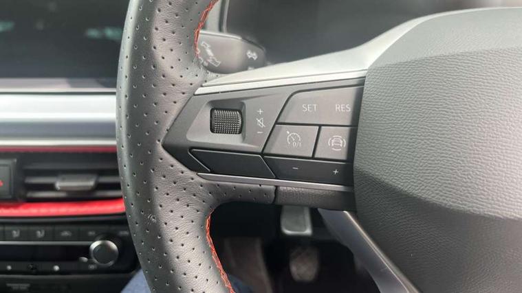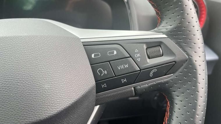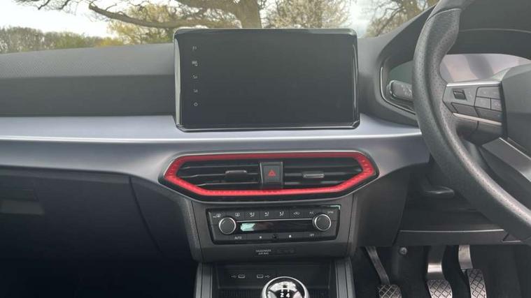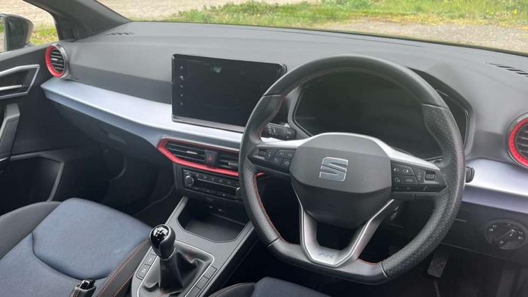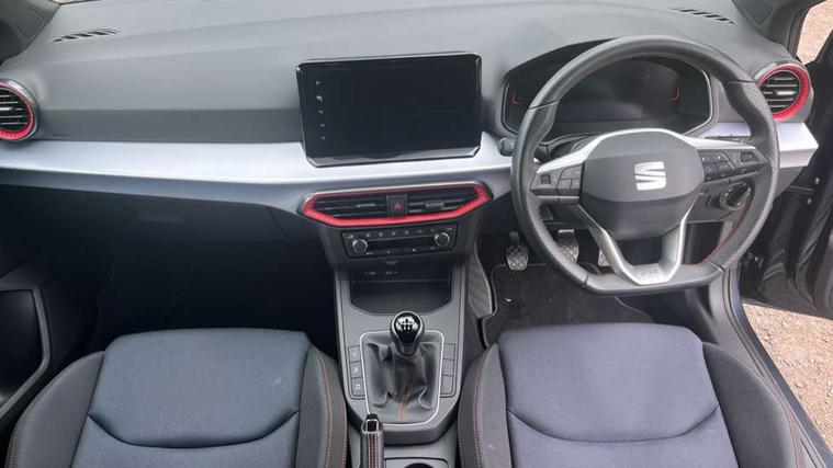 'Lights On' Reminder warning buzzer, 8" Digital cockpit, 9.2" touchscreen navigation system with type C USB socket, Voice control and DAB/AM/FM radio, Auto start and stop system, Bluetooth audio streaming with handsfree system, Digital clock, E-call, Full link smartphone integration with mirror link, wireless apple carplay, Google android auto + USB Type C cable for apple and android devices, Lane assist, Low fuel warning light, Outside temperature gauge, Power Steering, Rear parking sensor, Seat connect plus with safety, service, remote and online, SEAT logo boot release, Speed limiter, Traffic sign recognition, Trip computer, Sports suspension, Auxiliary input socket, Radio/MP3 player, SD card slot, Steering wheel mounted controls, Anti theft roof antenna, Auto dimming rear view mirror, Automatic rain sensing wipers, Black door mirror caps, Body colour bumpers, Body colour door handles, Brilliant black window surrounds, Dark tinted rear windows, Electric adjustable/heated/folding door mirrors, Electric front windows, Electric headlight adjustment, Electric rear windows, Front/rear fog lights, FULL LED automatic headlights with dynamic headlight range control, coming and leaving home, LED daytime running lights, LED tail lights, Rear roof spoiler with FR twin exhausts, Rear side wing doors, Rear wiper, Third brake light, 3 seat bench in 2nd row, 60/40 split folding rear seat, Ambient interior lighting, Chrome detailing and black headlining, Cloth upholstery, Dual zone climate control with combination filter, Front courtesy lights, Front cupholders x 2, Front reading lights, Gear shift indicator, Glovebox, Height adjustable front and rear headrests (five), Height adjustable front seats, Height/reach adjust steering wheel, Illuminated air vent surrounds, Illuminated boot, Instrument lighting with brightness control, Isofix, Leather multifunction flat bottomed sports steering wheel, Passenger sunvisor, Single front passenger seat, Sports seats, Sunvisors with mirror and driver side card holder, Safety and driving pack (S) - Ibiza, 3 point seatbelts on all 3 rear seats, ABS, Active front headrests, Child locks on rear doors, Electronic stability control, Energy recovery system, Front driver and passenger side airbags with curtain airbag and front passenger airbag deactivation, Hill hold control, Multi-Collision braking, Seat belt reminder for front and rear seats, Tiredness recognition system, Tyre pressure monitoring system, Electronic engine immobiliser, Locking wheel bolts, Perimeter alarm and interior monitoring inc.backup horn, tow away protection and electronic engine immobiliser, Remote central locking + deadlocks, 17" Alloy wheels in Brilliant silver,
