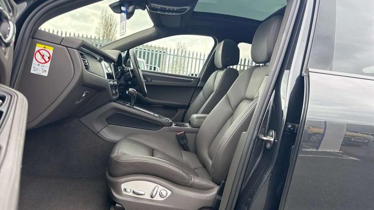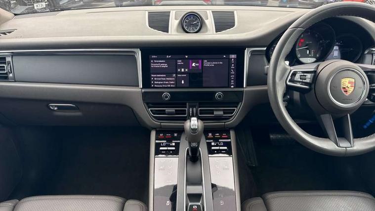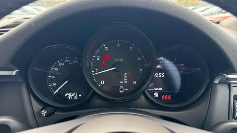 Analogue clock on dashboard, Automatic start/stop system, Automatic tailgate, eCall emergency call system, Instrument cluster with high resolution 4.8-inch TFT display, gear indicator for PDK, service interval display, external temperature indicator, fuel gauge, Off-road button, On board computer, Porsche Communication Management (PCM) including online navigation module, mobile phone preparation, audio interfaces and voice control system, Sports button in centre console, 7-Speed Porsche Doppelkupplung (PDK) with automatic mode and manual controls (gearshift paddles) on steering wheel, Direct fuel injection (DFI), Gasoline particulate filter, VarioCam camshaft control for inlet and exhaust valves, 2 USB sockets in rear centre console, Apple CarPlay with Siri voice recognition, Connect Plus including online navigation, LTE communication module with SIM card reader, wireless internet access, Porsche Car Connect services, DAB Digital radio, Porsche Vehicle Traking System Plus (PVTS Plus), Smartphone compartment with wireless charging, Two USB C charging and connectivity ports in the front centre console storage compartment, Active radiator grille shutters, Automatic headlight activation including welcome home lighting, Bumper system with high strength cross members and two deformation elements + One threaded fixture point for towing eye contained in onboard tool kit, Dynamic cornering lights, speed-sensitive headlight and dynamic range control, adverse weather function, four-point LED daytime running lights, Electric front and rear windows with remote closing function + anti trap + one touch, Electrically folding and heated exterior mirrors, Front light modules with LED position lights and direction indicators, Front windscreen wipers with two speeds, intermittent wipe and rain sensor, Front with integrated cooling air intakes, Fully galvanised body, Heated rear window with automatic switch off, High level 3rd LED brake light integrated into roof spoiler, Loading edge protection in aluminium, Rear side wing doors, Rear window wiper with intermittent function and washer jet, Roof spoiler in high gloss black, Towbar preparation, 3 adjustable rear headrests, 3 rear seats, 4 way adjustable front head restraints, 40:20:40 split folding rear bench seat, Cloth hook b-pillar, Fold up centre console armrest with fore/aft adjustment, Front and rear bottle holders in door panels, Front passenger seat, Glove compartment, Isofix fastening system for child seats on outer rear seats, Luggage compartment cover, Particle/pollen filter with active carbon filter, Rear armrest with 2 cupholders, Storage bin in centre console, Storage compartment in side of luggage compartment and storage compartment in spare wheel recess, Storage pocket in front and rear doors, Two integrated cup holders in front with variable diameter, Two socket 12V power outlets in front console and luggage compartment, Uncovered storage compartment in centre console, Ambient comfort lighting pack - Macan, Lower exterior trim package in black - Macan, 3-point automatic seatbelts with front and outer rear seats pretensioners and force limiter + manually height adjustable seatbelt + reminder warning, Auto hold function, Black painted brake calipers, Child locks on rear doors, Curtain airbags along entire roof frame and side windows from A pillar to the C pillar, Electronic parking brake, Front passenger airbag deactivation facility for installation of child seats indicator in overhead console, Front side airbags integrated into seat, Full size driver and passenger airbags, Internally vented brake discs with diameter of 350mm at front and 330mm at rear, Multi-Collision braking, Porsche hill control (PHC), PTM(Porsche Traction Management) and All-wheel drive with map-controlled multi-plate clutch, Roll over sensor for curtain airbag and seatbelt pretensioners, Side impact protection in doors, Tyre pressure monitoring system, Vehicle stability system, Porsche stability management (PSM) including ABS, ASR, ABD, MSR and trailer stability management, Vented discs brake with 4 piston aluminium monobloc fixed caliper at front, Vented discs brake with combination floating calipers at rear, Alarm system with ultrasonic interior surveillance, Dashcam preparation, Engine immobiliser with key transponder, Remote control central locking, Accent trims with silver coloured finish, Tyre repair kit,