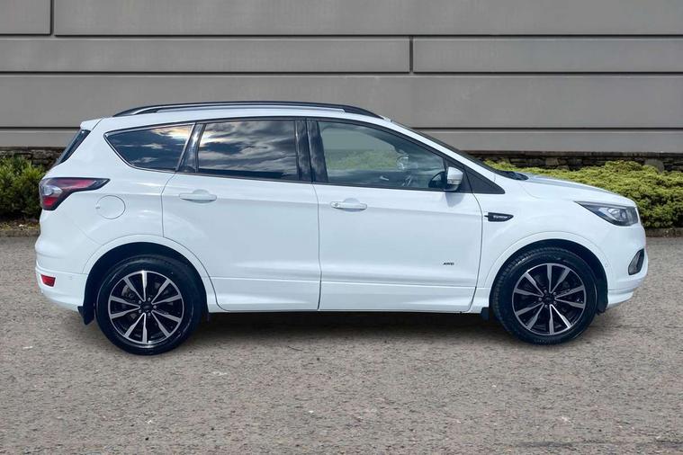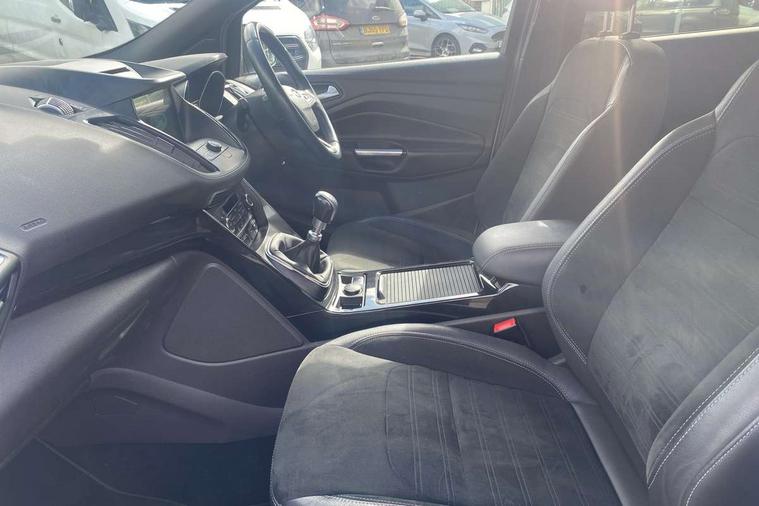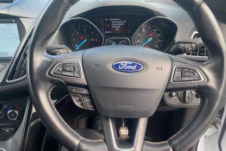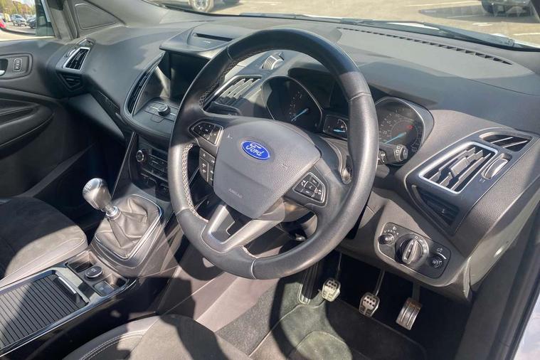 Enhanced active park assist including perpendicular parking pull out assist and flank guard, EPAS, Rear parking sensor, SYNC Emergency Assistance, Trip computer, Sports suspension, Auxiliary socket for external device, Remote audio controls on steering wheel, USB connection, Auto dimming rear view mirror, Automatic headlights, Black roof rails, Body colour bumpers, Body styling kit, Electric folding mirrors, Electrically heated door mirrors, Front scuff plate, LED daytime running lights, Power front and rear windows, Quickclear heated windscreen, Rain sensor windscreen wipers, Rear diffuser, Tailgate wash/wipe, Twin exhaust pipes, 60/40 split/folding rear back and cushion, Alloy Foot Pedals, Auxiliary power socket in luggage area, Centre console with stowage tray/bottle holder/CD stowage/front and rear 12V power point, Dark headlining, Dinamica/Leather Upholstery, Driver seat lumbar adjustment, Driver/passenger front seatback pockets, Driver/passenger seats fore/aft adjustment, Dual electronic automatic temperature control, Floor mats with contrast stitching, Folding rear centre armrest, Footwell courtesy lights front and rear, Front head restraints, Front overhead courtesy lights with theatre style dimming and delay, Front/rear reading lights, Isofix system on outer rear seats, Leather gearknob, Leather steering wheel, Passenger lumbar support, Reach + rake adjustable steering column, Rear floor mats, Rear head restraints, Sports style front seats, Stowage unit in upper instrument panel, Tie down hooks, Tonneau cover, Variable intensity instrument illumination, 3 point seatbelts on all 3 rear seats, ABS/EBD, Driver and passenger airbags, Driver and passenger side airbags, Electric traction assist system, Electronic parking brake, ESP+EBA, Front and rear curtain airbags, Hill start assist, Intelligent Protection System (IPS), Tyre pressure monitoring system, Immobiliser, Keyless start, Locking wheel nuts, Remote central locking, Thatcham Cat.1 alarm, Mini steel spare wheel,