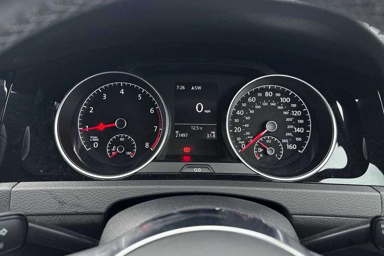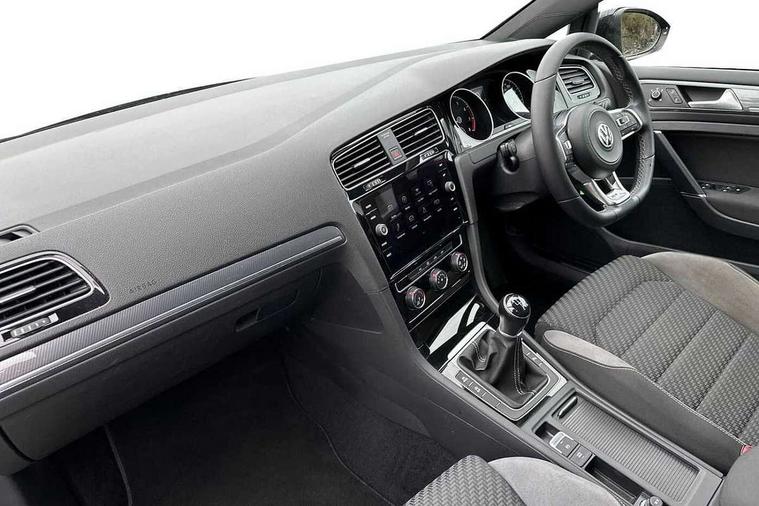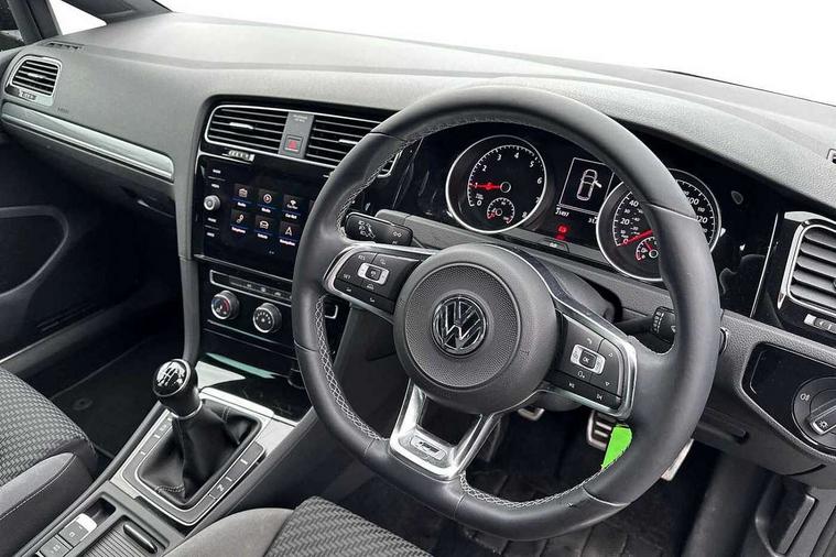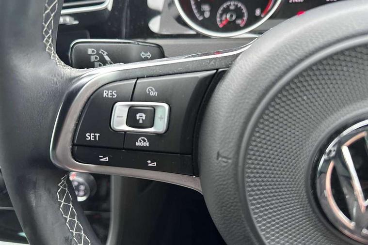 'Lights On' Reminder warning buzzer, 8" touch screen, Adaptive Cruise Control with pedestrian detection and speed limiter, App-Connect, Bluetooth hands free telephone connection, Brake pad wear indicator warning light, Driver alert system, Driver profile selection, Exterior temperature gauge, Front assistant collision mitigation, Instrument cluster in white, Multifunction computer, PAS - speed related, Rev counter, Trip and service interval display, Ultrasonic front and rear optical and audible parking sensors, Warning buzzer and light for front seatbelts unfastened, Lowered sports suspension, XDS electronic differential lock, CD/MP3/WMA, USB and SD card reader, aux-in, Composition media system, DAB Digital radio, Auto dimming rear view mirror, Automatic coming/leaving home lighting function, Automatic headlights, Black front air intake and radiator grille with chrome insert, Black sports rear diffuser, Body colour bumpers, Body colour door handles, Body colour door mirrors, Body colour rear roof spoiler, Chrome grille surround, Chrome trapezoidal exhaust, Electric front windows, Electric rear windows, Electrically adjustable and heated door mirrors, Heat insulated tinted glass 65% light absorbing from B pillar back, Heated rear windscreen, LED daytime running lights, LED rear lights, Rain sensor, Rear windscreen washer and wiper with interval delay, Stainless steel door sill protection, 12V socket in luggage compartment, 3 rear headrests, 3 spoke steering wheel, 60/40 split folding rear seat, Bag hook in luggage compartment, Black headlining, Boot lashing points, Cooled glovebox, Courtesy light delay, Cover for storage compartment in centre, Dust/pollen filter, Front + rear carpet mats, Front centre armrest with storage box and rear air vents, Front passenger seat height adjust, Front reading lights, Front seat back storage pockets, Grab handles, Height/reach adjust steering wheel, Illuminated vanity mirrors, Isofix preparation for 2 rear child seats, Leather gear knob and handbrake grip, Load through provision with rear centre armrest and cupholders x2, Luggage compartment cover, Luggage compartment lighting, Multifunction leather steering wheel with grey stitching leather trimmed gear knob including paddle shift, Overhead storage box, Stainless steel pedals, Storage box in luggage compartment, Storage compartments in doors, Sun visors, Variable boot floor, height adjustable and removable, Ambient lighting pack - Golf, Mirror pack - Golf, 3 point height adj front seatbelts + pretensioners, 3 rear 3 point seatbelts, ABS, Automatic post collision braking, Child locks on rear doors, Driver/Front Passenger airbags, Driver/Passenger whiplash optimised head restraints, Drivers knee airbag, Electronic parking brake with auto hold, ESP with EDL + ASR, Front and rear curtain airbags, Front passenger airbag deactivation, Front side airbags, Pre crash system, Tyre pressure monitor, Alarm with interior protection, Electronic engine immobiliser, Remote central locking with 2 remote folding keys, Chrome-plated light switch surround, Dark Diamond decorative inserts in dash and door panels, Piano black centre console with aluminium inlay, Steel space saver spare wheel,