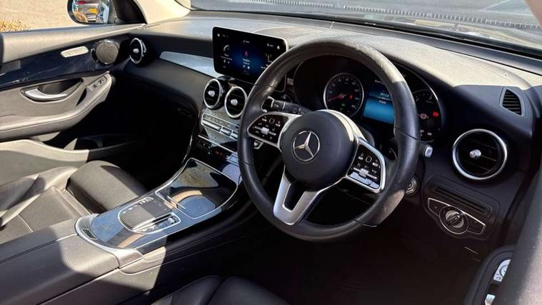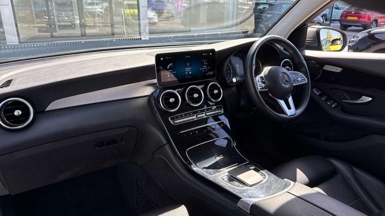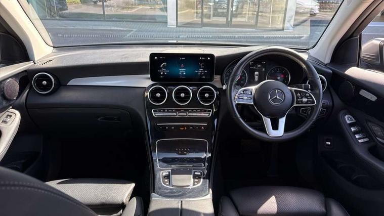Active parking assist with parktronic system, Attention assist, Bluetooth interface for hands free telephone, Collision prevention assist plus, Cruise control with speedtronic variable speed limiter, DYNAMIC SELECT with a choice of driving modes (ECO, Comfort, Sport, Sport+ and Individual), ECO start/stop function, Hard disk navigation, Hey Mercedes Voice activation, Instrument cluster with 5.5-inch TFT multi-function display, MBUX Interior assistant, Mercedes connect me with remote online services, Multi function trip computer, Outside temperature display, rear seatbelt status indicator, Power opening/closing tailgate, Remote boot release, Reversing camera, Service indicator (ASSYST), Speed sensitive steering, 50 litre fuel tank, Agility control comfort suspension, Diesel particulate filter, 5 speakers, DAB Digital radio, Frontbass loudspeakers, MBUX multimedia system with DAB digital radio and touchpad including satellite navigation, Media display 10.25-inch touchscreen display, Pre installation for Mercedes Benz Link, USB ports x 2 in centre console, Adaptive brake lights, Aluminium roof rails, Body colour door mirrors, Body coloured bumpers, Electric windows one touch open/close, Electrically adjustable and heated door mirrors, Exhaust tailpipe finisher, Front and rear exterior chrome trim, Headlamp assist automatic headlamp activation, LED high performance headlamps with integrated LED daytime running lights, LED tail lamp, Privacy glass (to rear of B post), Radiator grille with integral Mercedes star and two louvres in matt iridium silver with chrome inserts, Rain sensor windscreen wipers, Range adjustable headlights, Rear wiper, Tinted glass all round, Two chrome plated tailpipe trim elements, 2 way rear head restraints, 3-spoke multifunction steering wheel in nappa leather with trim in silver chrome and perforated leather in grip area, 40:20:40 split folding rear seats, Artico leather upholstery, Automatic child seat recognition sensor, Automatic climate control, Dividing net - rear, Double cup holder in centre console, Front armrest with storage box, Front door sills with Mercedes Benz lettering, Front seats with electric adjust (backrest, height and seat cushion inclination) with 4 way electric lumbar support and manual cushion depth adjust, Gearshift paddles, Heated front seats, Height/reach adjustable steering column, Illuminated and lockable glove compartment, Rear top tether child seat ISOFIX attachment, Sunvisors with illuminated vanity mirrors, Velour floormats, Easy-pack load compartment cover, Interior lighting pack - GLC, Mirror pack - GLC, Storage pack - GLC, 3 rear 3 point seatbelts, Active bonnet, Adaptive brake system with HOLD function and brake drying in the wet, ASR, Black seat belts, Child proof door locks, Dual-stage airbags - driver and front passenger, driver knee bag and window bags for driver, front passenger and rear passengers, Electronic parking brake, Electronic stability programme (ESP) with curve dynamic assist and cross wind assist, Front and rear seatbelt reminder, Front passenger seat occupancy sensor, Hill hold function, Tyre pressure monitoring system, Warning triangle and first aid kit, Alarm system/interior protection/immobiliser, Automatic door locking, KEYLESS-GO starting function, Remote central locking, High gloss black trim, 18" 5 triple spoke alloy wheels painted in high gloss black with high sheen finish and tirefit,