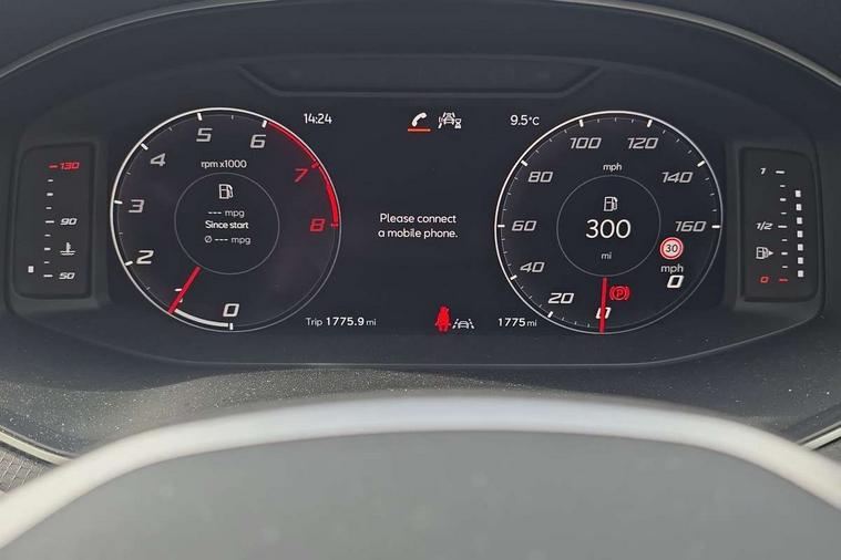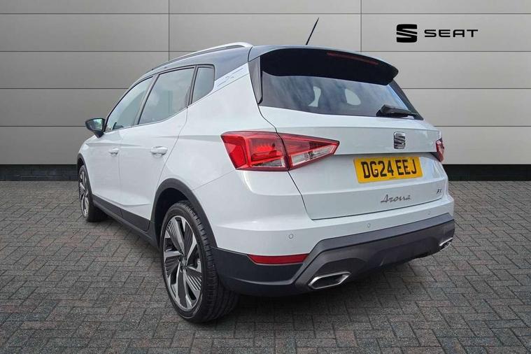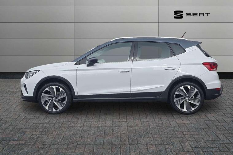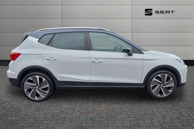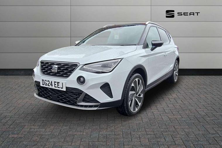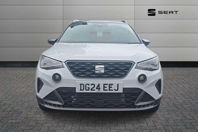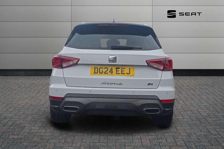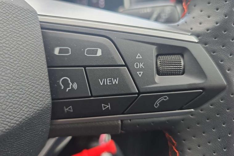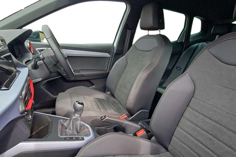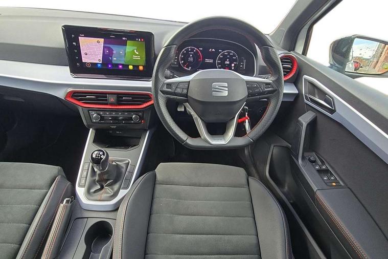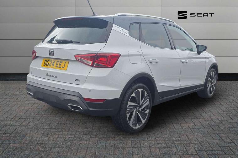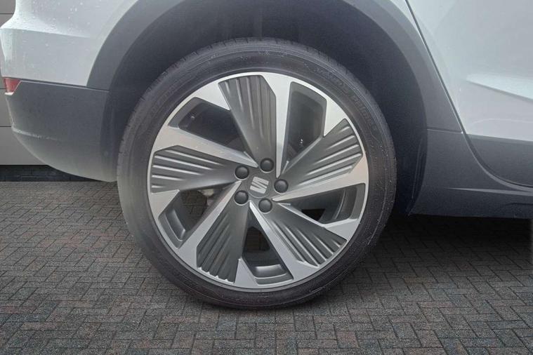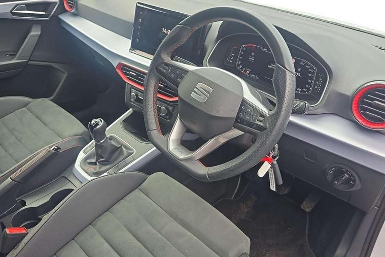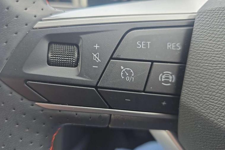 'Lights On' Reminder warning buzzer, 10" Digital cockpit, Digital clock, E-call, Electric speed sensitive power steering, Full Link Smartphone Integration with Mirror Link, Apple Car Play, Google Android Auto with USB Type C cable for Apple and Android compatibility, Lane keeping system, Low fuel warning light, Outside temperature display, RPM counter, SEAT Drive profile - Four different models normal-sport-eco-individual, steering response, throttle response, Trip computer, Wireless phone charger, 9.2" colour touchscreen with navigation system, voice control and USB port (type c), Bluetooth interface for hands free and audio streaming, DAB digital radio and AM/FM radio, Steering wheel mounted audio controls, Anti theft roof antenna, Auto dimming interior rear view mirror, Automatic activation of hazard warning lights, Body coloured bumpers, Body coloured door handle inserts, Chrome roof rails and window surrounds, Dark tinted rear windows, Electric front/rear windows, Electrically adjustable, heated and folding door mirrors, Front fog lights with cornering function and rear fog light, FULL LED automatic headlights with dynamic headlight range control, coming and leaving home, LED daytime running lights, LED rear tail lights and licence plate lights, Protective side mouldings, Rain sensing wipers, Rear side wing doors, Rear spoiler, Rear window wash/wipe, Roof colour door mirrors, Third brake light, Twin exhaust pipe styling hidden exhaust pipe, Visible VIN plate, 2 cupholders, 3 seat bench in 2nd row, 60/40 split folding rear seat, Aircare filter, Black interior roof, Double boot floor, Driver sunvisor with covered mirror + card holder, Dual zone climate control, Front comfort seats, Front courtesy light with front reading lights, Front seat back storage pockets, Gear shift indicator, Heated front seats, Height adjustable front seats, Height/reach adjustable steering column, Illuminated boot, Instrument lighting with brightness control, Interior ambient lighting, Interior light in footwell, central console and door panel, ISOFIX points in outer rear seats with top tether anchorage points, Microsuede cloth upholstery, Passenger sunvisor with vanity mirror, Perforated flat bottomed leather steering wheel/gear knob/handbrake with red stitching and FR logo, Potentiometer, Single front passenger seat, Two front and three rear height adjustable headrests, Interior chrome pack - Arona, Safe and driving pack (S) - Arona, 3 point seatbelts on all rear seats, ABS, Active front headrests, Child locks on rear doors, Driver and front passenger airbags with front passenger airbag de activation, front side and curtain airbags, Emergency Brake Assist (EBA) and front assist, Front and rear seatbelt reminder, Hill hold control, Multi-Collision braking, Tiredness recognition system, Traction control, Tyre pressure monitoring system, Alarm with back-up horn, Electronic engine immobiliser, Locking wheel bolts, Remote central locking + deadlocks, Tow away protection, Titan black dashboard, 18" Performance Cosmo grey matt alloy wheels,