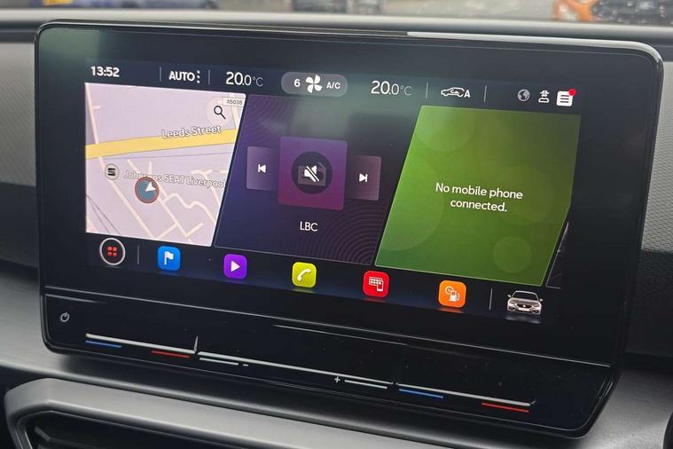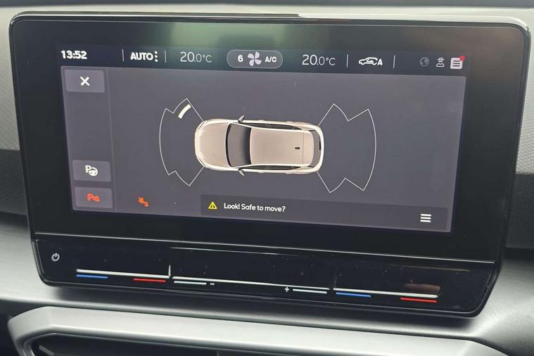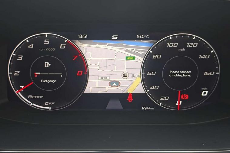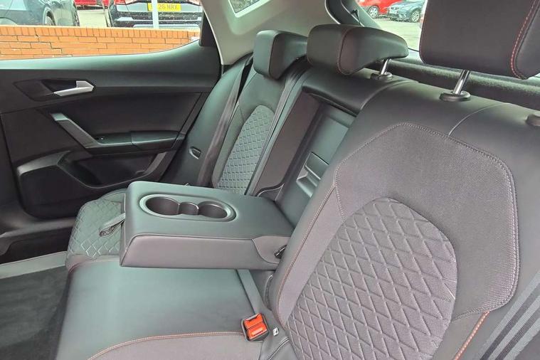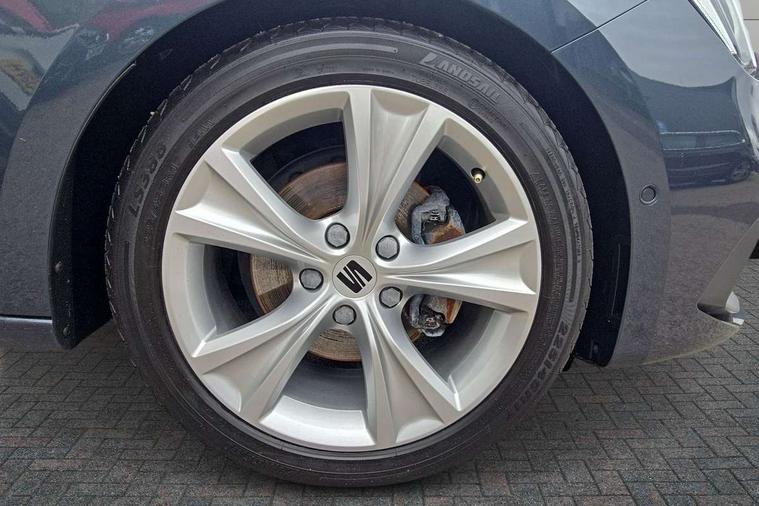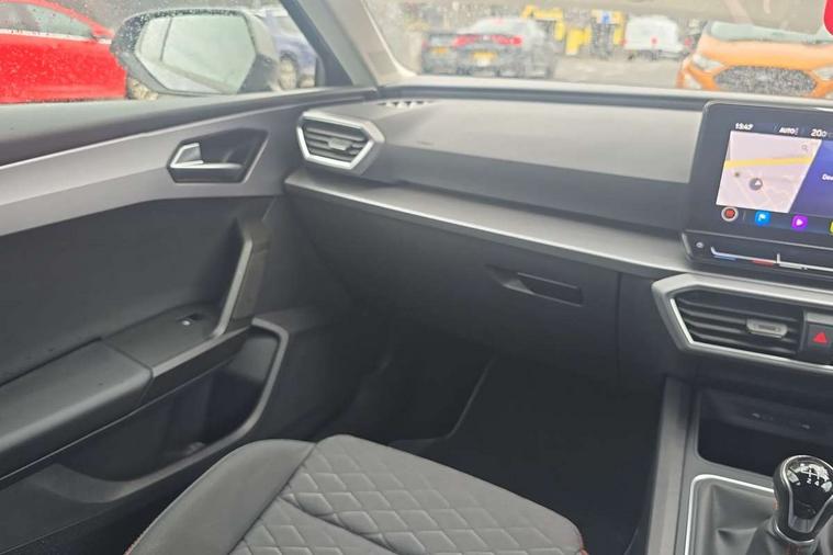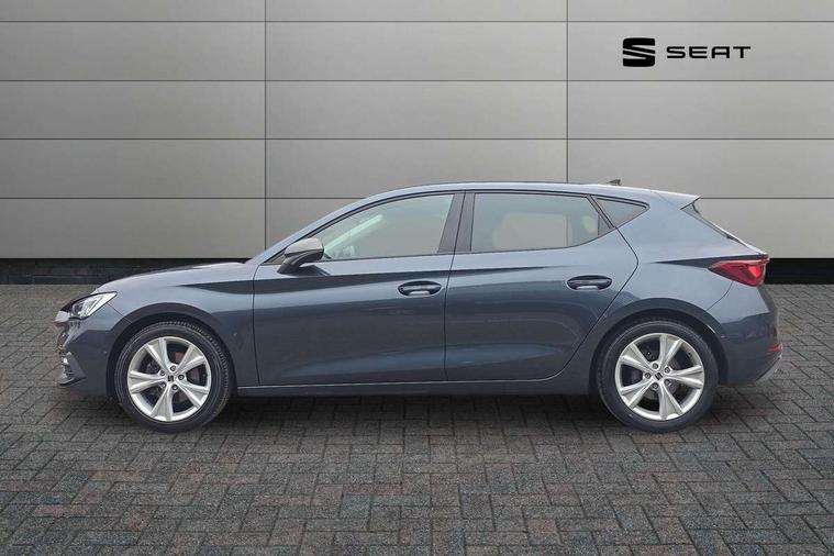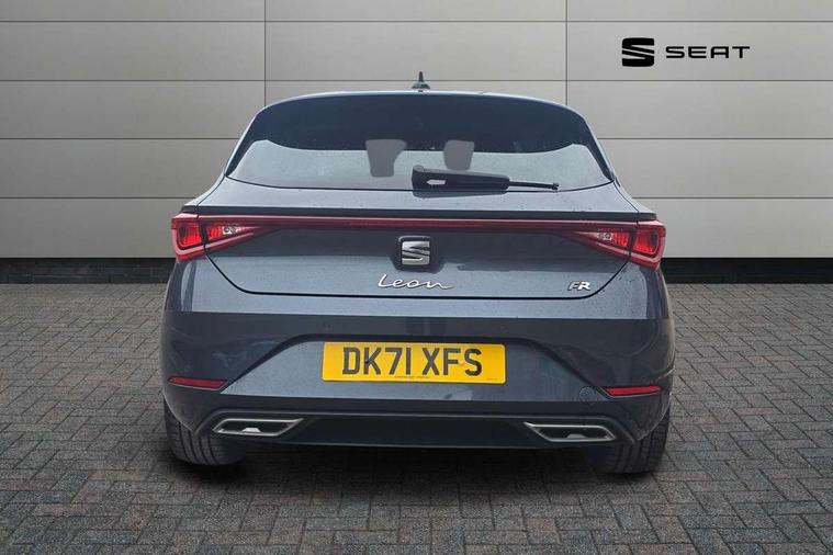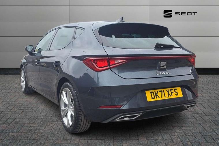 Chrome interior detailing, Media system plus with navigation - Leon, 17" Dynamic Bi-spoke alloy wheels with 91W tyres, Anti theft alarm system with interior monitoring in cab, backup horn and towing protection, KESSY Go (Keyless start), Lockable tailgate, Locking wheel bolts, Wireless phone charging, 7 speakers, Auxiliary input socket, 3 point seatbelts on all rear seats, ABS, Brake control system - ESC and brake booster, Child proof door locks, Driver and front passenger airbags with front passenger airbag de-activation, front side and curtain airbags, Electronic parking brake, Extended safety system - seat belt tensioner, window closure and hazard lights, Hill hold control, Rear disc brakes, Seat belt reminder for front and rear seats, Tiredness recognition system, driver alert system, Tyre pressure monitoring system, Auto dimming rear view mirror, Body colour door handles, Body coloured bumpers, Cosmo grey exterior mirrors with integrated LED indicators, Dark tinted rear windows, Electric front/rear windows, Electrically adjustable, heated and folding door mirrors, FR sports bumper, Illuminated front door sill, LED front fog lamps with cornering function, LED headlights and tail lights with dynamic turn signals, welcome light silhouette from exterior mirrors and dynamic headlight range control, LED rear fog lamp, Rain sensing wipers, Rear wash/wipe, Separate daytime running light with automatic headlight control and coming home feature, 12v power point in centre console, 60/40 split rear bench seat with armrest, Ambient lighting with glovebox, footwell and single monocolour, Cloth upholstery, Driver/passenger manual seat height adjustment, Dust/pollen filter, Flat bottomed perforated leather steering wheel with red stitching and FR logo and leather gear stick, Folding boot cover, Front and rear height adjustable headrests, Front and rear reading lights X 4, Front centre armrest, Front seatback storage pockets, Height/reach adjust steering wheel, ISOFIX points in outer rear seats with top tether anchorage points, Luggage tie-down hooks, Lumbar adjustment for front seats, Sunvisors with covered illuminated mirror, Three zone climate control, Tool kit, Digital cockpit, Four x USB Type C ports, Front assist with forward collision warning braking reaction to vehicles, pedestrians and cyclists, Full link smartphone integration with Mirror Link, wireless Apple CarPlay and wired Google Android Auto, Lane assist, Park assist (inc front/rear parking sensors), Power assisted speed sensitive electro-mechanical steering, RPM, trip computer, outside temp gauge, instrument light brightness, low fuel warning light, lights on reminder, gearshift indicator, SEAT drive profile with 4 modes (Eco/Normal/Sport/Individual), throttle response, Service interval indicator, Start/stop system with regenerative braking, Sports suspension, XDS electronic differential lock and dynamic traction support,