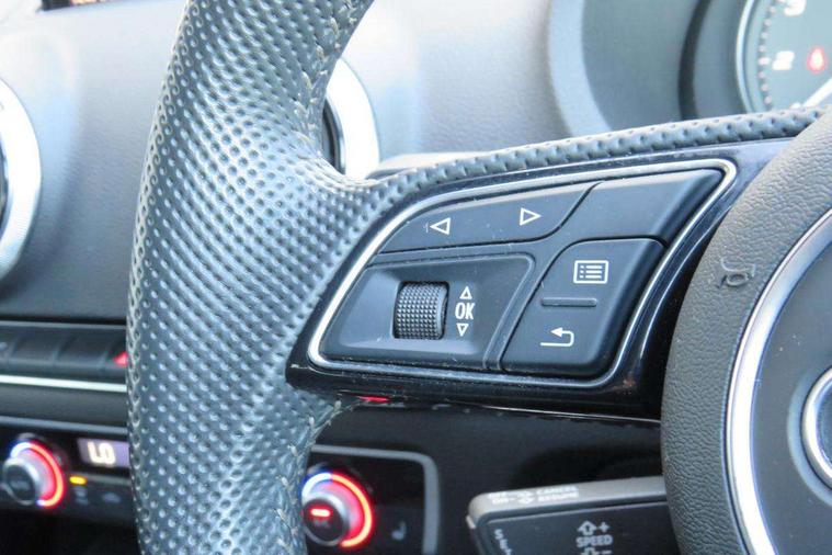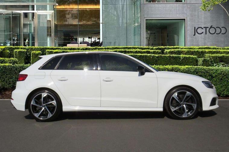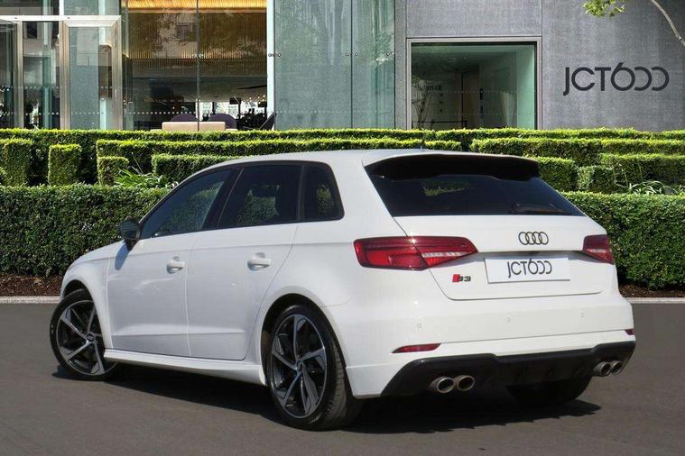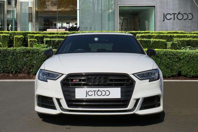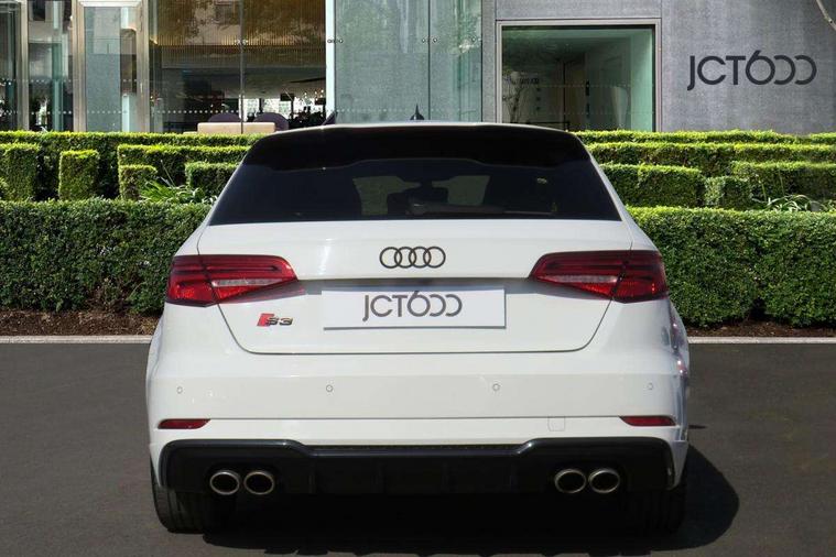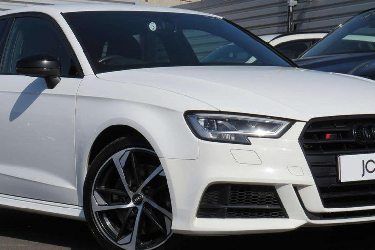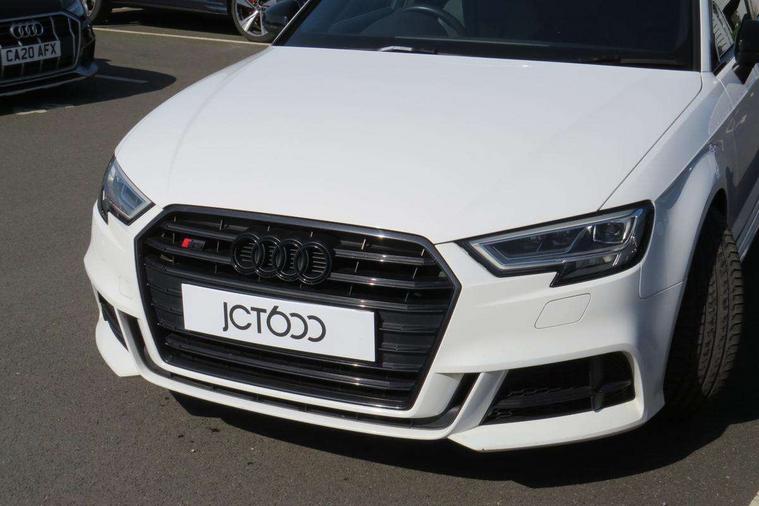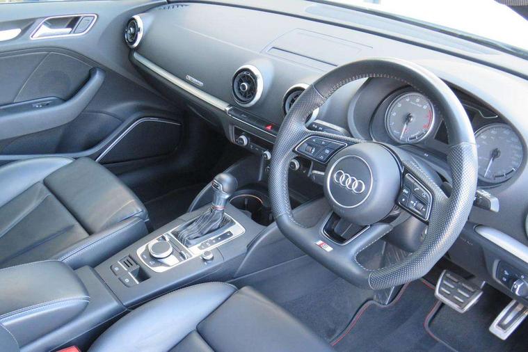 Audi drive select, Audi smartphone interface, Automatic start/stop system, Colour driver's information system display, Instrument dials with S3 logo, Mobile telephone preparation - bluetooth interface, Progressive power assisted steering, SD card based MMI navigation, Service interval indicator, Speed limit display, Voice control system, Voice recognition for navigation system, S sports suspension, 2 USB interfaces and Aux-In jack, Audi music interface, Bang and Olufsen sound system, CD player, DAB Digital radio, MMI radio plus with 7" colour MMI screen and MMI controller, Online entertainment, Audi Beam uses LEDs to project the Audi Sport logo, Auto dimming interior rear view mirror, Body colour roof spoiler with aerodynamic inserts in high gloss black, Electric front windows, Electric rear windows, Electrically adjustable and heated door mirrors with integrated LED side indicators, Headlight washers, Heated windscreen washer jets, LED daytime running lights, Light and rain sensors, Privacy glass - dark tinted rear and rear side windows from B-pillar backwards, Rear wiper, Sport specific side air inlet grille and diffuser insert, Twin oval chrome trimmed exhaust tailpipes, 3 adjustable rear headrests, 3 spoke leather multifunction sports steering wheel with paddle shift gear change controls, 60/40 split folding rear seat, Adjustable front centre armrest, Black cloth headlining, Dual zone electronic climate control, Front and rear interior lights with delay, Front/rear floor mats, Heated front seats, Height and reach adjustable steering wheel, Illuminated door sill trims with S logo, Isofix child seat preparation for front passenger/outer rear seats inc passenger airbag deactivation including top tether, Lashing point in luggage compartment, Manual height adjustable front seats, Stainless steel pedals, Storage compartments in doors side trims, centre console and under front drivers seat, Black styling pack - A3/S3, LED interior light pack - A3/RS3, Non smoking pack - A3, Storage and luggage pack - A3/RS3, 3 point seatbelts on all seats, ABS/EBD, Active bonnet, Active front headrests, Airbags - front driver/passenger, front & rear side, curtain, drivers knee, ASR, EDL, Electromechanical parking brake, ESC - Electronic Stability Control + traction control, Front passenger airbag deactivation, Hill hold assist, Manual rear child locks, Multi-Collision braking, Seatbelt warning, Tyre pressure warning, Warning triangle and first aid kit, Anti theft alarm, Anti-theft wheel bolts, Remote control central locking, Thatcham category 1 alarm + immobiliser, Aluminium air vent surrounds, Aluminium trim elements, Matt brushed aluminium inlays, Tool kit, Tyre repair kit,