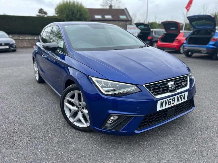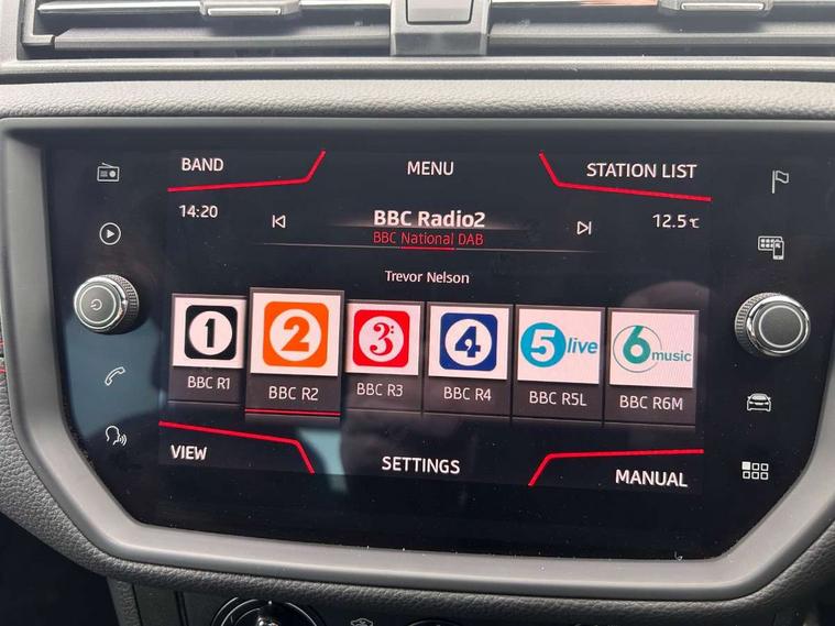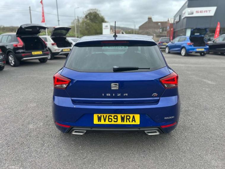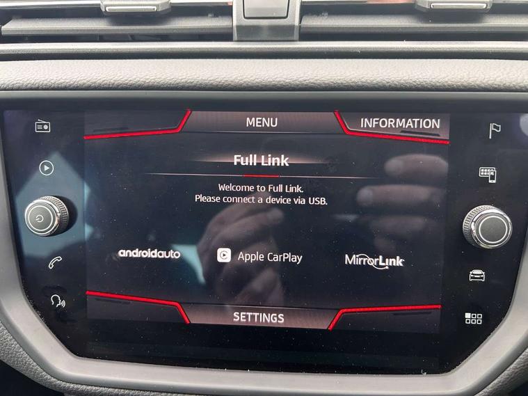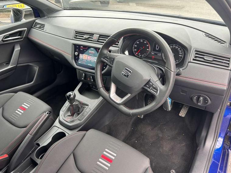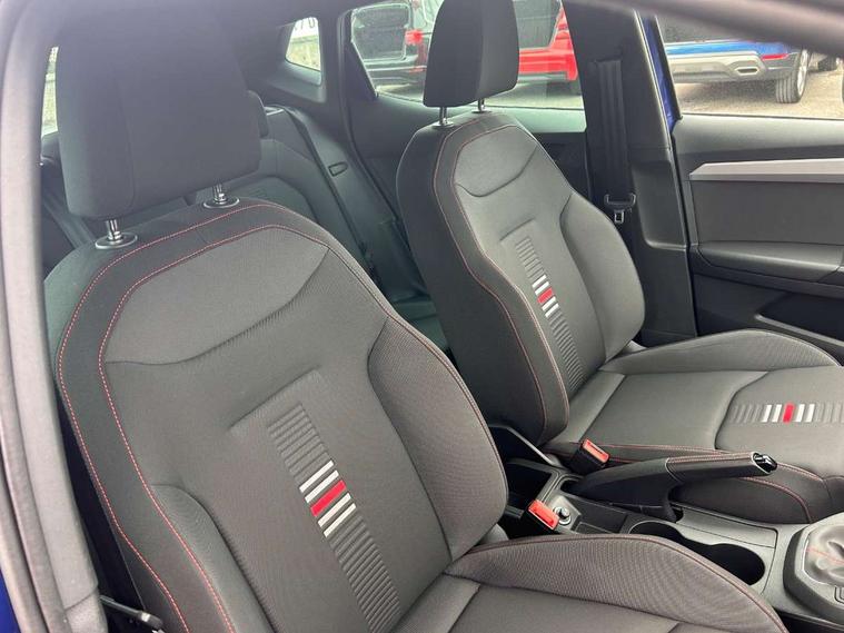 'Lights On' Reminder warning buzzer, Bluetooth Handsfree Phone Connection, Cruise control, Digital clock, Full Link Smartphone Integration with Mirror Link, Apple Car Play, Google Android Auto, Low fuel warning light, Outside temperature gauge, Power Steering, Satellite navigation system with 3D mapping, 8" touch screen, voice control and additional USB port, SEAT Drive profile, SEAT logo boot release, Trip computer, Sports suspension, 6 speakers, Auxiliary input socket, CD player, Digital Audio Broadcast (DAB) Tuner, Radio/MP3 player, SD card slot, SEAT USB media cable, Steering wheel mounted controls, USB port, Anti theft roof antenna, Auto dimming rear view mirror, Automatic headlights, Automatic rain sensing wipers, Body colour bumpers, Body colour door handles, Brilliant black door mirrors, Chrome front grille frame, Chrome grille, Coming/leaving home lighting function, Cornering front fog lights, Dark tinted rear windows, Electric folding door mirrors, Electric front windows, Electric headlight adjustment, Electrically adjustable and heated door mirrors, Exclusive FR rear bumper, Full LED headlights, LED daytime running lights, LED tail lights, Rear fog lights, Twin exhaust pipes, 3 rear headrests, 60/40 split folding rear seat, Air conditioning, Door and steering wheel ice metal decorative inserts, Driver's sunvisor with ticket holder/vanity mirror, Dust/pollen filter, Flat bottomed perforated leather steering wheel with red stitching and FR logo, Front courtesy lights, Front cupholders x 2, Front reading lights, Gear shift indicator, Glovebox, Height adjustable driver's seat, Height adjustable front/rear head restraints, Height adjustable passenger seat, Height/reach adjust steering wheel, Illuminated boot, Instrument lighting with brightness control, Leather handbrake, Multi-colour ambient interior lighting, Nora cloth upholstery, Passenger sunvisor, Rear top tether child seat ISOFIX attachment, Sports seats, Full LED headlight pack - Ibiza, 3 point seatbelts on all 3 rear seats, ABS, Active front headrests, Child locks on rear doors, Curtain airbags, Driver/Front Passenger airbags, ESP+EBA, Front assist (AEB), Front passenger airbag deactivation, Front side airbags, Hill hold control, Multi-Collision braking, Seatbelt warning, Tiredness recognition system, Tyre pressure monitoring system, Electronic engine immobiliser, Locking wheel bolts, Remote central locking + deadlocks, Volumetric alarm with back up horn, Leather dashboard, 17" Dynamic alloy wheels,