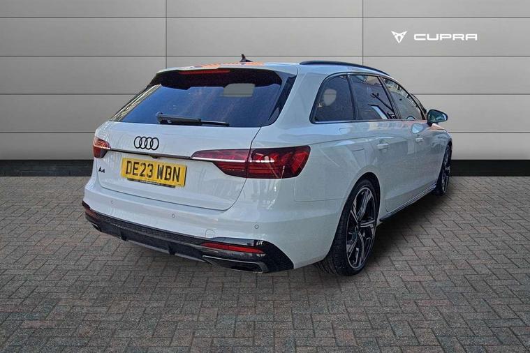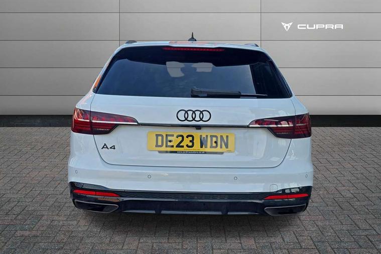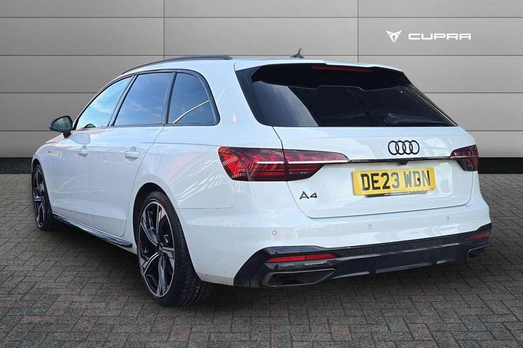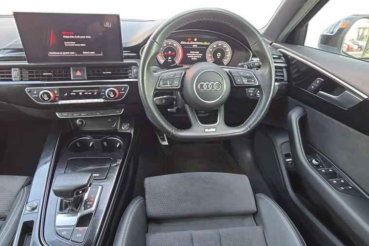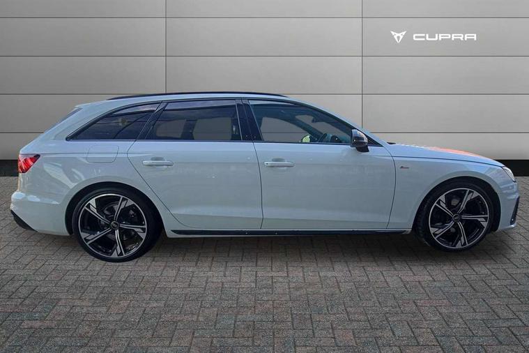 Audi connect safety and service (e-call), Audi connect with Amazon Alexa Integration, Audi drive select, Audi smartphone interface, Audi virtual cockpit, Automatic start-stop system with coasting functionality and efficiency programme, Bluetooth interface, Electromechanical power steering, Email, calendar and text messages displayed via MMI, MMI Navigation plus with MMI touch includes 10.1" high resolution colour MMI display, 3D map, Power operated tailgate, Voice control system, 54 litre fuel tank, Sports suspension lowered by 23mm, 2 USB charging ports, 8 passive loudspeakers, DAB digital radio reception, Audi beam uses LEDs to project the audi logo onto the ground as you exit your A4, Auto dimming rear view mirror, Black Audi rings and black badging (model name in black badging, no engine badging), Body colour door handles, Body colour front spoiler lip, Body colour side sill trim, Electrically folding auto dimming/adjustable/heated door mirrors with LED side indicators and kerb view function for passenger side, Exhaust tailpipes in high dark chrome, Front and rear bumpers with side skirts, Grained matt black side air inlets with matt aluminium silver inlay, High beam assistant, High gloss black B pillar trims and triangular rear door trim, LED headlights with LED rear lights + dynamic rear indicators + headlight adjustment and high beam, turning light + LED daytime running lights, LED third brake light, Privacy glass, Rain and light sensors, Rear diffuser in matt black with trim strip in matt aluminium silver, Rear side wing doors, Rear wiper, RS4 rear spoiler in body colour, S Line badges on the front wings, S Line roof edge spoiler, Variable intermittent front wash/wipe, Windscreen with acoustic glazing, 4 way electric lumbar support for driver and front passenger, 40/20/40 split folding 3 rear seat bench in 3 parts with rear centre armrest, Black cloth headlining, Black perforated leather gearknob, Contrast stitching on seats, steering wheel and gear lever gaiter, Deluxe 3 zone electronic climate control, Door sill trims with aluminium inlay, Electric load area cover, Front and rear head restraints, Front centre armrest, Heated front seats, Illuminated door sill trims with S logo, ISOFIX child seat mounting and top tether, Manual seat adjustment, Single front passenger seat, Stainless steel pedals and foot rest, Black styling pack - A4 Avant, LED Interior light pack - A4/S4, 3 rear seatbelts, 6 airbags - Driver, front passenger, curtain and side windows, Electronic Stabilisation Control (ESC) including ABS, ASR and EDL, Hill hold assist, Multi collision brake assist, Pop-up bonnet for pedestrian protection, Pre sense city, Rear door child safety locks, Seatbelt monitoring, Warning triangle and first aid kit, Anti theft alarm, Anti theft wheel bolts, Central locking, Keyless Go, Piano black finish inlay, 19" 5 arm flag design Audi sport diamond cut alloy wheels in gloss anthracite black, Tool kit, Tyre repair kit,