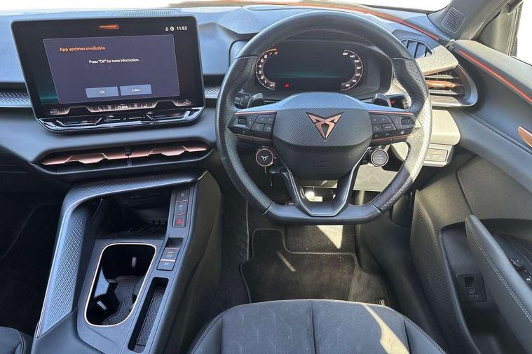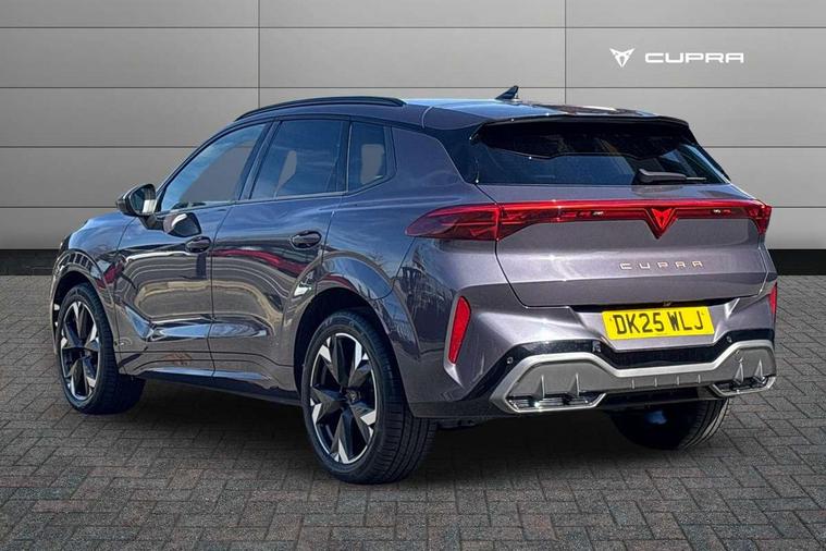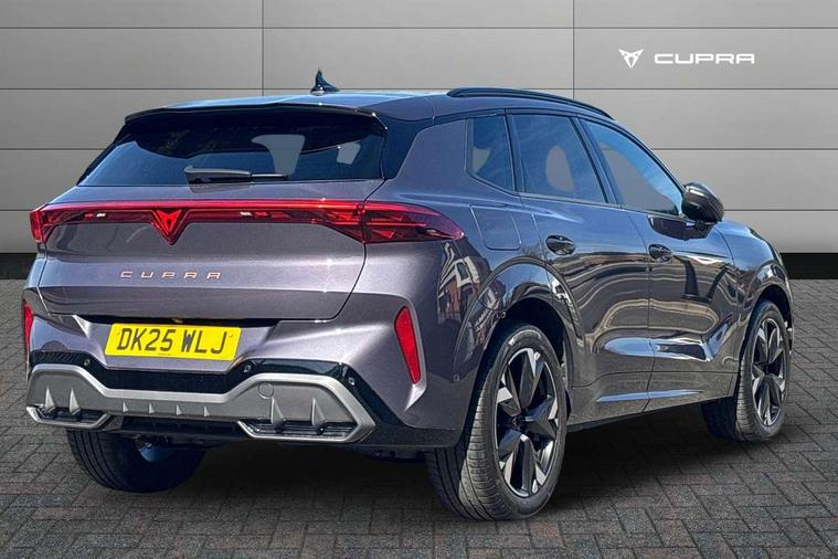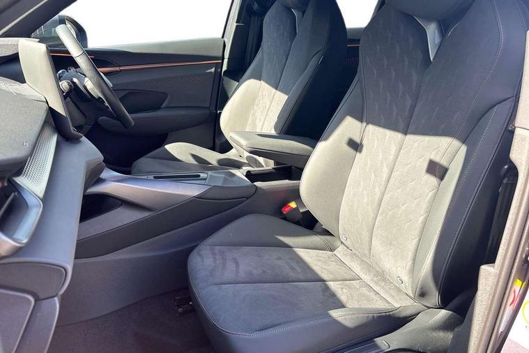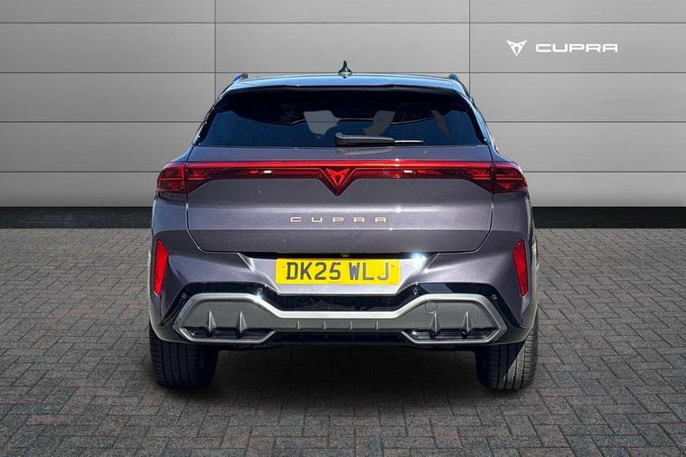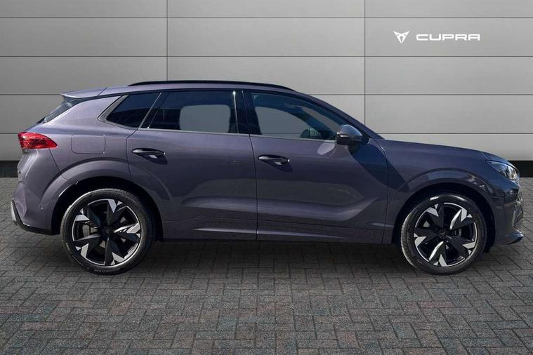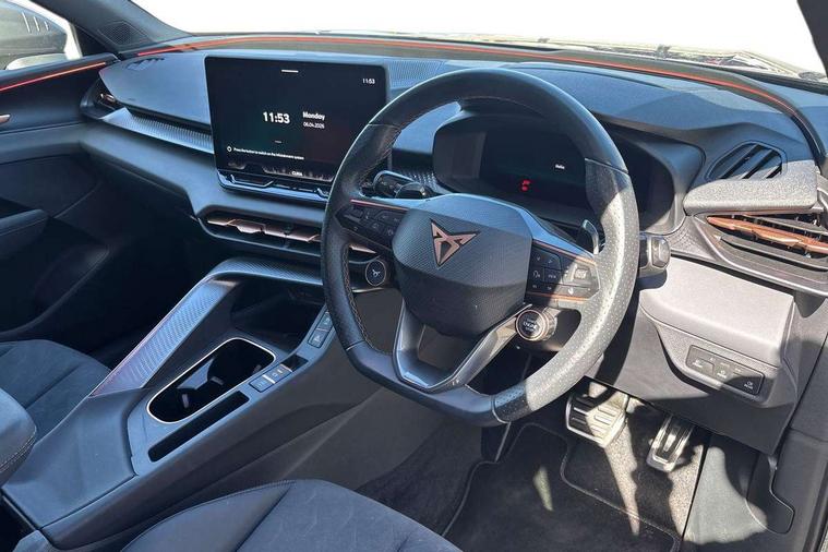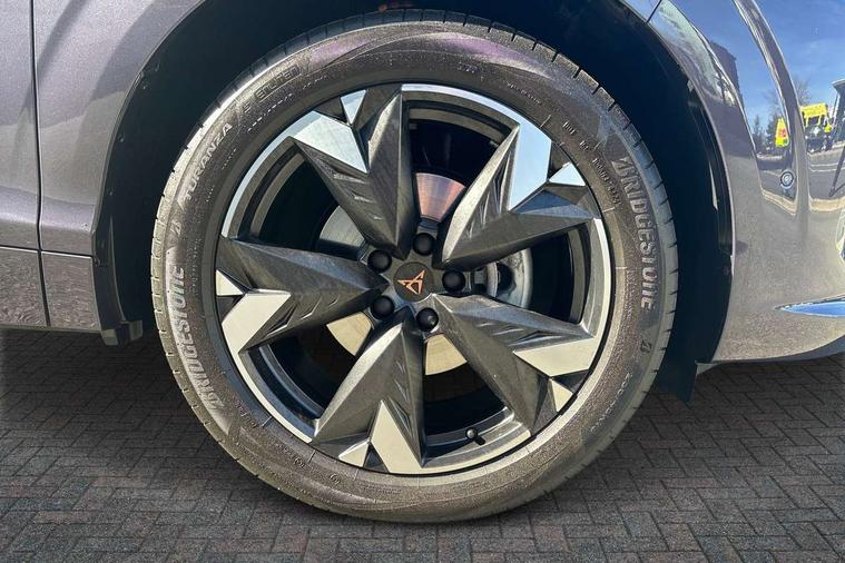 10.25" digital cockpit and configurable dashboard, Adaptive cruise control with follow-to-stop and speed limiter, Advanced driver alert system, Advanced lane assist with semi-automatic vehicle control in a medical emergency and traffic jam assist, Driving profile selection and conventional shock absorber, Dynamic road sign display, E-call, Electric tailgate with virtual pedal, Emergency steering support with turn assist, Front and rear parking sensors, Front assist (Forward collision warning with automatic braking) with multifunction camera and front cross traffic assist, Head up Display, Intelligent park assist, Media system with Nav - 12.9" touch display, voice control, full link phone (wired/wireless), DAB and Steering wheel mounted controls, Rear traffic assist, Side and exit assist, Speed sensitive power steering, Start/stop system with regenerative braking, Top view camera (front camera, rear camera, 2 side cameras), Wireless phone charger, Auto dimming rear view mirror, Black roof rails, CUPRA 3D rear lights with ceremony & swiping indicator and illuminated logo, Dark tinted rear windows, Daytime running lights with automatic headlight control and Coming and Leaving home function, Door mirrors with memory function and lowing function on passenger mirror, Dynamic headlight range control, Electric front/rear windows, Electrically adjustable, heated and folding door mirrors, Front fog lamps with cornering function, Heat reflecting windscreen, High beam assist, LED headlamps with signature "CUPRA LED", Rain sensing wipers, Rear fog light on one side, back up light on both sides, Rear side wing doors, Rear wash/wipe, Third brake light, Welcome lights (within exterior mirror housing), 3 seat bench in 2nd row, Black roof lining, Cupra sports pedals, Dinamica cloth upholstery, Driver seat memory function, Electrically adjustable front seats including lumbar support, Four x USB Type C ports (2 in front and 2 in rear), Front and rear head restraints, Front and rear reading lights X 4, Front centre armrest, Heated front seats, Heated leather wrapped multi function sports steering wheel with tiptronic, Illuminated interior front door sills, Isofix, Operating voltage 12V, Single front passenger seat, Smart wraparound interior lighting, Sunvisors with illuminated mirror, Three zone climate control with control panel in rear, Unsplit rear seat bench, split folding backrest, with centre armrest, Variable luggage/load compartment floor, 3 point seatbelts in front with pretensioner and electric height adjustment, 3 point seatbelts on all rear seats, Brake control system - ESC and brake booster, Child proof door locks, Driver and front passenger airbags, Electronic parking brake, Front and rear disc brakes, Front interaction airbag, Front passenger airbag deactivation switch, Front side airbags with curtain airbags, Pre-crash front and rear seat belt tensioner, window closure and hazard lights, Tyre pressure monitoring system, Visual and acoustic seat belt reminder, electric contact in front and rear, Anti theft alarm, Keyless locking and starting system with keyless access, Locking wheel bolts, Black decorative trims, Chrome interior detailing, 19" Spectrum exclusive machine alloy wheels, Tool kit,
