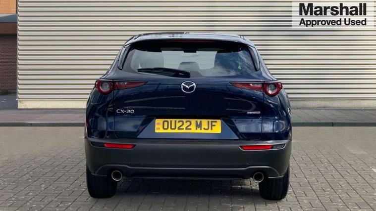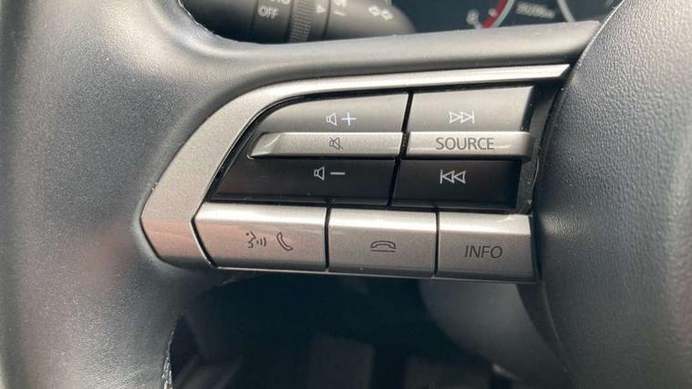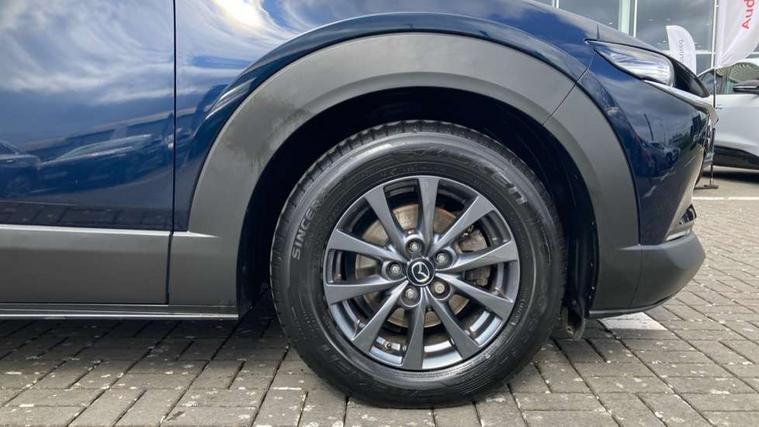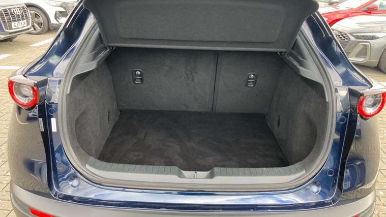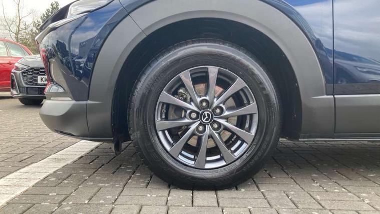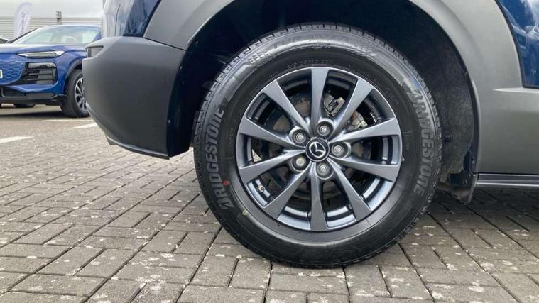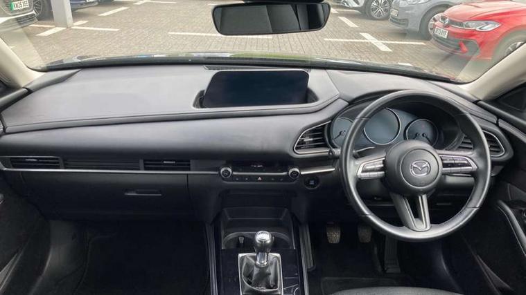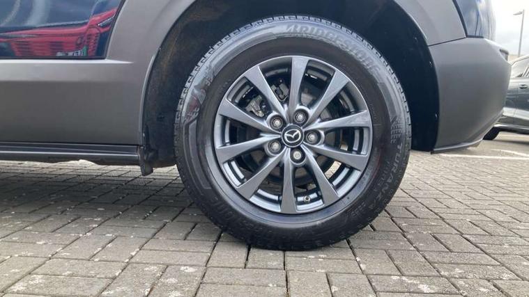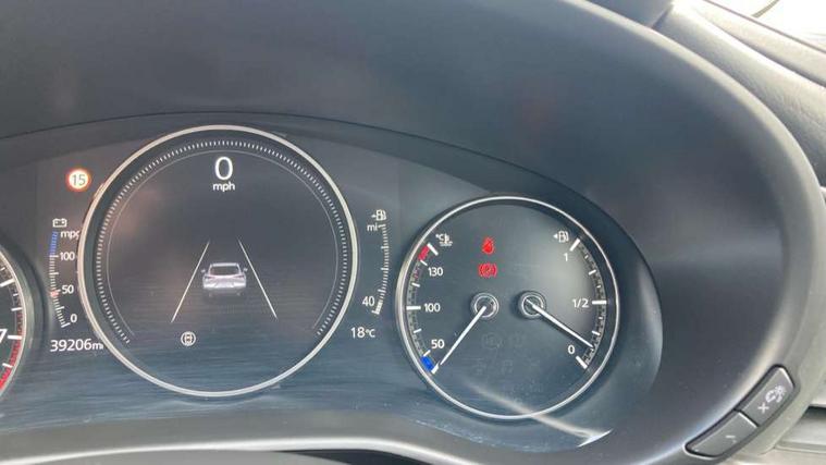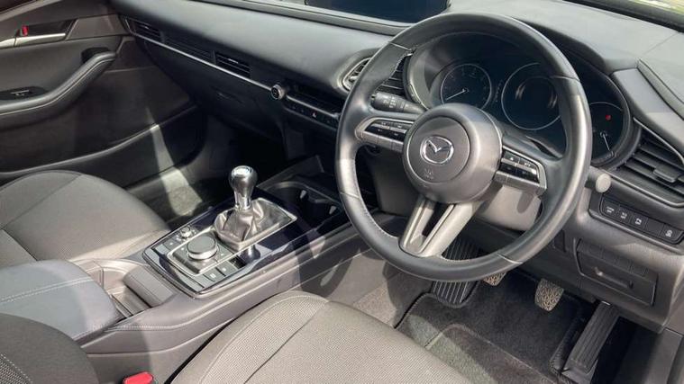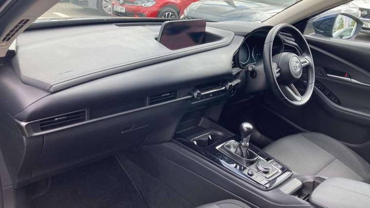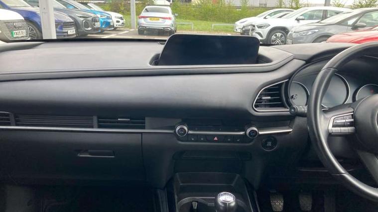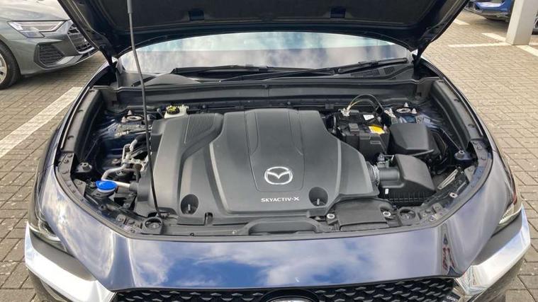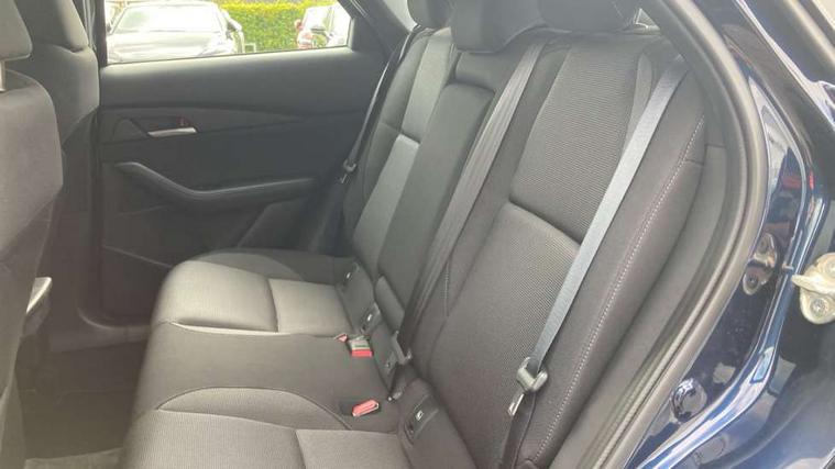 7" TFT Colour driver instrument panel display, 8.8" Colour centre touch screen display with Mazda Connect infotainment, Adaptive cruise control (Mazda radar cruise control), Apple car play/Android Auto, Blind spot monitoring with rear cross traffic alert, Driver attention alert system, E-call with GPS, Emergency stop signalling system, Engine start/stop button, Front and rear parking sensors, Integrated bluetooth, Integrated Mazda navigation system, Intelligent speed assist, Lane keep assist system (LAS) with Lane departure warning system (LDWS), Mazda connected services, PAS, Reversing camera, Service indicator, Traffic sign recognition, Trip computer, i-stop, 2 USB charging ports in front inner central armrest, AM / FM / DAB radio with 8 speakers, Multimedia Commander including separate volume dial, Steering wheel mounted audio/bluetooth controls, B-pillar and C-pillar garnishes in satin black finish, Auto dimming driver's door mirror, Auto dimming rear view mirror, Auto headlight levelling, Body coloured, electrically adjustable, heated auto power folding door mirrors with integrated indicators, Chrome finish signature wing in front grille, Coming/leaving home lighting function, Dual chrome exhaust, Dusk sensing headlights, Electric front/rear windows with one touch auto up/down, Front kodo turn signal, Gloss black rear roof spoiler, LED headlights with halogen daytime running lights and high beam control, LED rear combination lights, Rain sensing front wipers with adjustable speed and intermittent wipe, Rear fog lights, Rear side wing doors, Rear wiper, Satin black front grille, Third brake light, 12V power outlet in centre console, 3 seat bench in 2nd row, 60/40 split fold down rear seats, Cloth upholstery with interior accents, Dark cloth door panel inserts, Dashboard, door cards and front centre armrest in black cloth, Driver and front passenger visors with covered vanity mirror and driver ticket holder, Driver seat manual slide, recline, height and seat tilt adjust, Driver, front passenger and two rear door storage, Driver, Front passenger and two rear grab handles with coathooks, Dual zone climate control air conditioning with rear air vents, Folding rear centre armrest with two cup holders, Front and rear (x3) head restraints, Front and rear LED lighting, Front armrest, Front centre storage with two cupholders, Front passenger seatback pockets, Front passengers seat manual slide, recline and height adjustment, Gear shift indicator, Glovebox illumination, Heated front seats with 3 stage setting, ISOFIX child seat anchorage points attached on outer rear seats, Leather wrapped gear shift knob, Leather wrapped steering wheel with telescopic and tilt adjustment, LED luggage compartment lighting, Light roof headlining and pillars, Roof mounted sunglasses holder, Single front passenger seat, 3 point ELR front seat belts x2 with pretensioners, 3 point ELR rear seat belts, Anti-lock braking system (ABS), Drivers knee airbag, DSC - Dynamic Stability Control, Electronic parking brake with auto disengage function and auto hold function, Front and rear curtain airbags, Front dual stage driver and single stage front passenger airbags, Front passenger airbag cut-off switch, Front side airbags, Front smart city brake support, G-Vectoring control plus, Hill launch assist, Manual child lock in rear doors, Mild Hybrid system with regenerative braking, Seatbelt reminder for driver/front passenger and rear seats, Traction control system (TCS), Tyre pressure monitoring system (TPMS), Remote central locking with deadlocking and automatic door lock when driving, Smart keyless entry, Thatcham accredited alarm and immobiliser, 16" Grey alloy wheels, Emergency tyre repair kit,