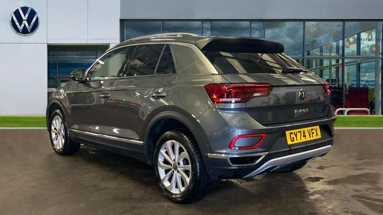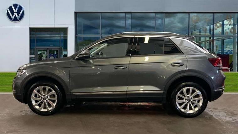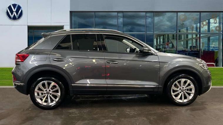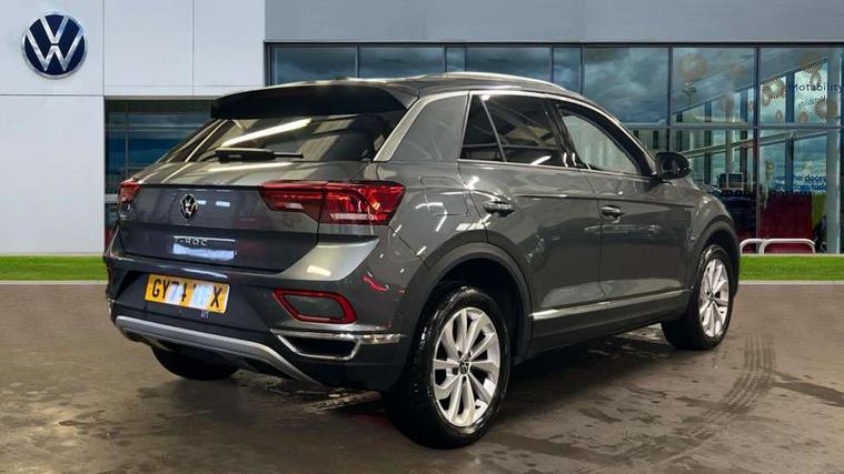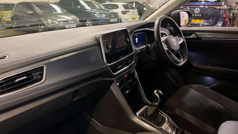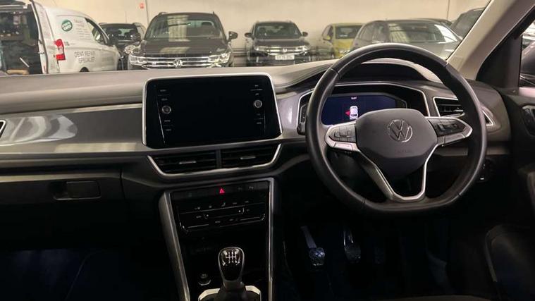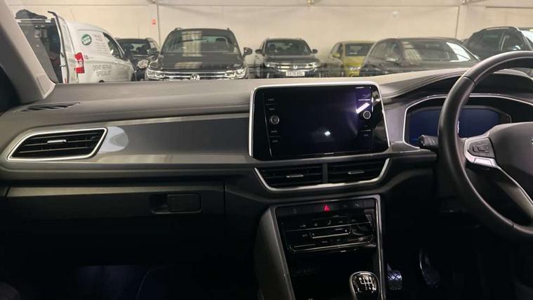 10.25" Digital cockpit pro, Bluetooth mobile phone interface, Driver alert system with fatigue detection, Driver tips and journey analysis, Dynamic road sign display, Emergency call service, Lane keeping system Lane Assist, Modified key software - reduce switch off time for key status change to Long no motion, Online services, Park assist including front and rear parking sensors, Power assisted speed sensitive steering, Service interval indicator, Tailgate/trunk lid release from outside, Think blue trainer driver tips and journey analysis, Warning sound and light for front seatbelts unfastened, Wireless app connect, Battery regeneration during braking, Front shock absorption, Rear shock absorption chassis with increased ride height, Start/stop function with battery regeneration, Diversity antenna for FM reception, Music playback - MP3, WMA and AAC files, Premium USB cable in choice of either Apple or Android smartphone compatibility, SD card slot, Simultaneous pairing of 2 compatible mobile devices, Title and cover art display, We Connect and We Connect Plus functionality, 3rd brake light, Auto dimming interior rear view mirror, Automatic hazard lights activation under emergency braking, Automatic headlight control with LED separate daytime running lights with coming/leaving home function, Body colour sports bumpers with silver metallic underbody fascia, Dynamic headlight range control with self adjusting whilst driving, Extended roof spoiler, Exterior mirrors aspherical on driver side, convex on front passenger side, External USB type C socket and charging sockets, Front windscreen wiper with intermittent wipe and 4 position delay, Heated rear window, LED rear combination lamps, LED rear number plate lights, LED tail lamp rear comination lamps, Light mode for poor weather, rain, fog or snow, Power windows with comfort operation and circuit breaker, Rain sensor, Rear exhaust tailpipe, Rear fog light on one side and reversing lights on both sides, Rear side wing doors, Rear wash/wipe with intermittent wipe setting, Remote electrically foldable door mirrors, puddle lights and reverse activated passenger's door mirror, 12V power socket in centre console, 3 rear head restraints, 3 seat bench in 2nd row, 4 load lashing points in luggage compartment, Air care climatronic air conditoning system with active combination filter and 2-zone temperature control, Chrome plated radiator grille inserts, air vent surrounds and light switch surrounds, Door and side trim panel with leatherette insert, Drawer under drivers seat, Front + rear carpet mats, Front centre armrest, Front comfort sports seats, Front cupholders x 2, Front footwell illumination, Instrument lighting, white adjustable panel illumination, Interior ambient lighting and surround lighting, Interior light delay, Isofix child seat preparation, Leather gearshift handle, LED interior light with switch off delay/dimmer and 2 front/rear LED reading lights, Load-through provision with cup holder when folded down ('Unsplit rear seat bench, split folding backrest, with centre armrest), Luggage compartment lighting, Non-folding front passenger seat backrest, Single front passenger seat, Storage compartment in left and right luggage area, Storage compartment in rear doors, Storage compartments in driver and front passenger doors, Sunvisors with illuminated vanity mirrors, Variable boot floor, height adjustable and removable, Driver assistance pack without proactive passenger protection - T-Roc, 3 point height adj front seatbelts + pretensioners, 3 point seatbelts in outer rear with ECE label, ABS, Child locks on rear doors, Driver and front passenger airbag with front passenger airbag deactivation, Driver and front passenger safety-optimised head restraints, Drivers seatbelt reminder, Electronic parking brake, Electronic Stability Control (ESC) inc EDL (Electronic Differential Lock) and ASR (Traction Control), Front and rear passengers curtain airbag system including front side airbags, Front assist with city emergency braking and pedestrian monitoring, Front disc brakes, Front seat side impact airbags, Predictive pedestrian protection, Rear disc brakes, Single tone horn, Tyre pressure loss indicator, Volkswagen roadside assistance, Anti-theft alarm system with interior monitoring, backup horn, and towing protection, Remote central locking with SAFELOCK, radio remote control with 2 remote control folding keys, Trims for alloy wheels,
